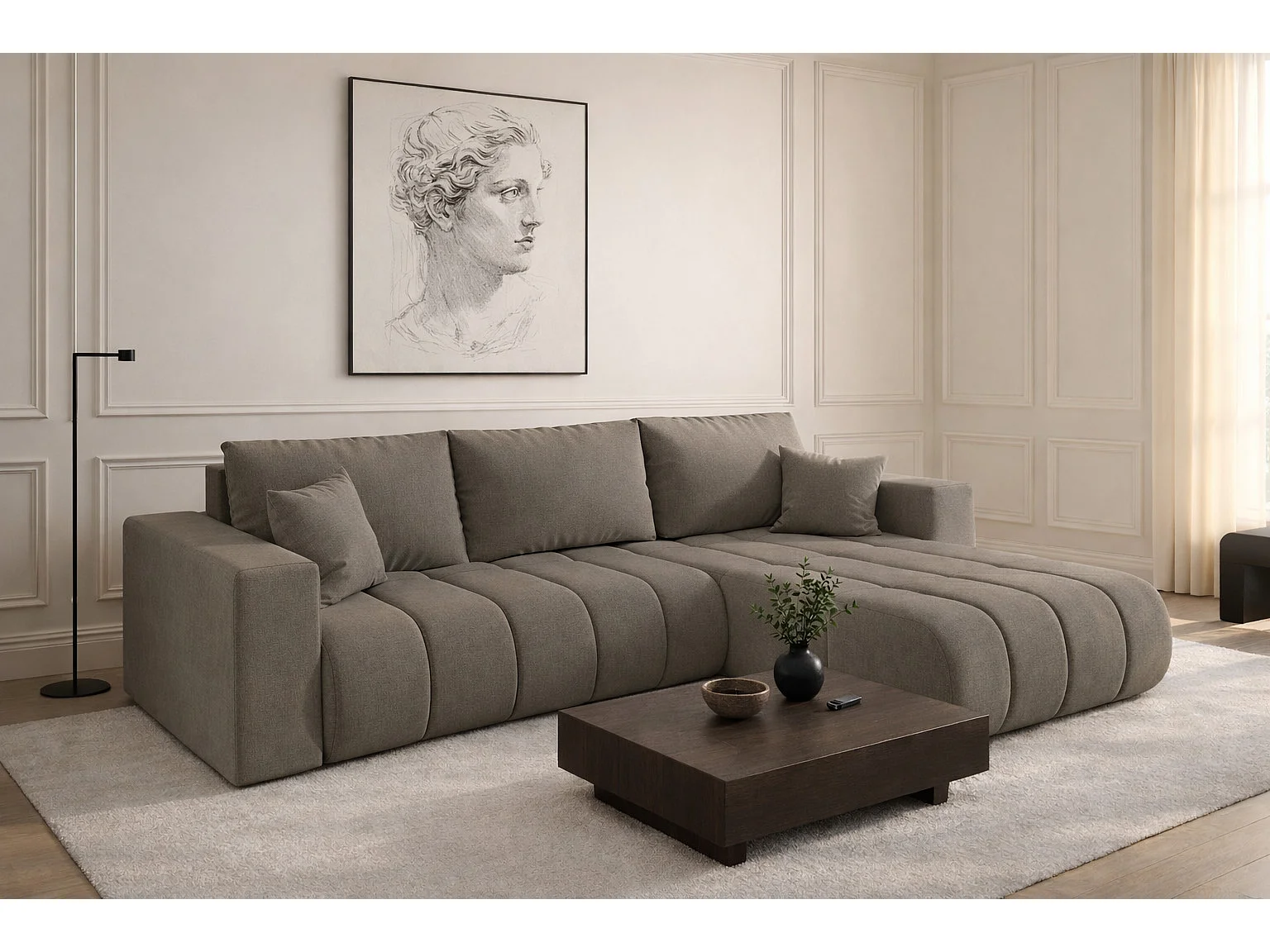 Narożnik z funkcją spania i pojemnikiem MILO PREMIUM, tkanina Wind, Brązowoszary, Prawy