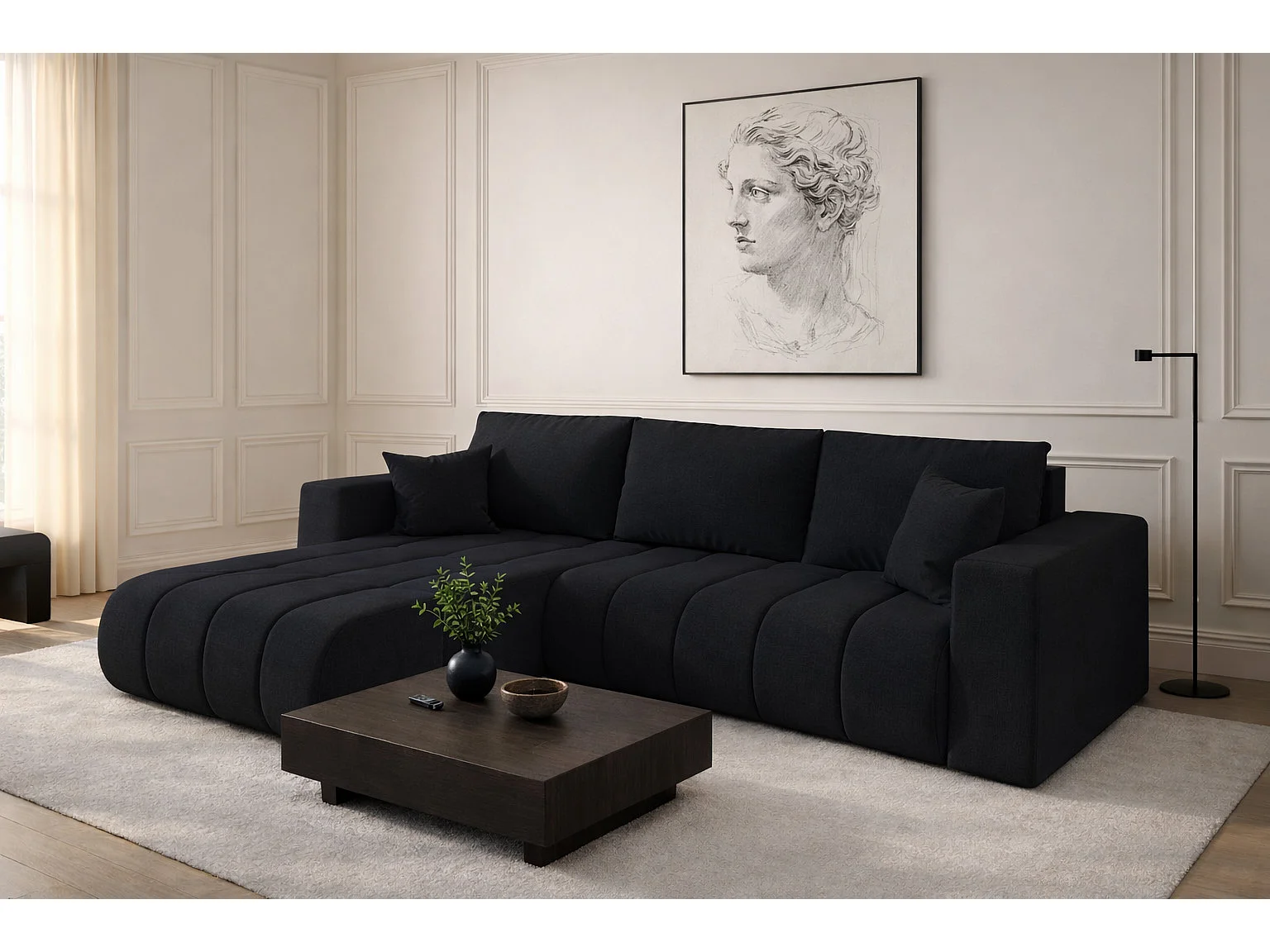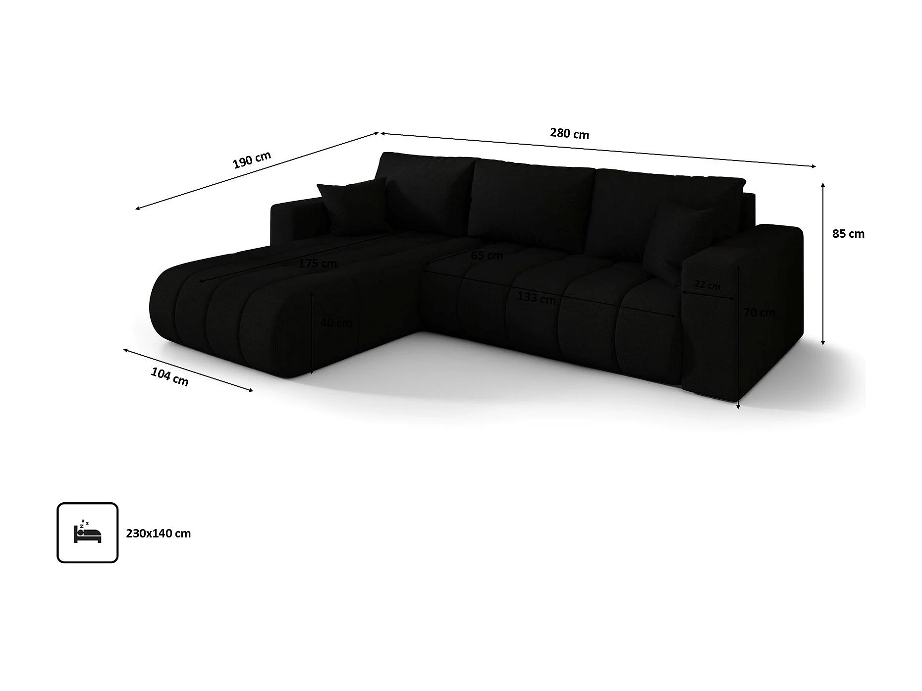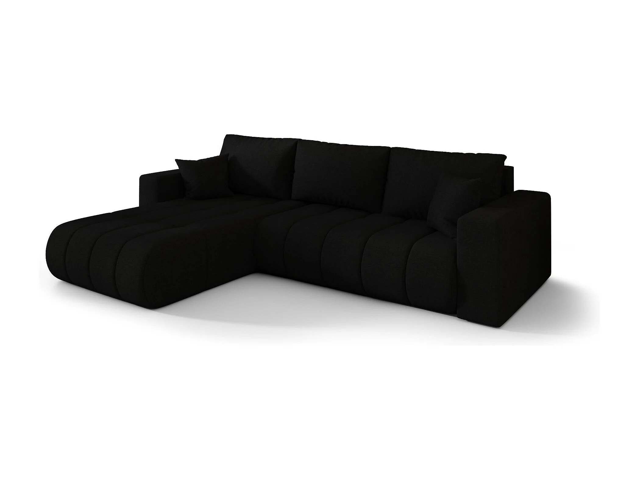 Narożnik z funkcją spania i pojemnikiem MILO PREMIUM, tkanina Wind, Czarny, Lewy