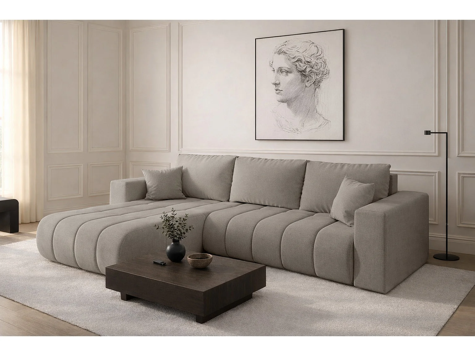 Narożnik z funkcją spania i pojemnikiem MILO PREMIUM, tkanina Wind, Piaskowy, Lewy
