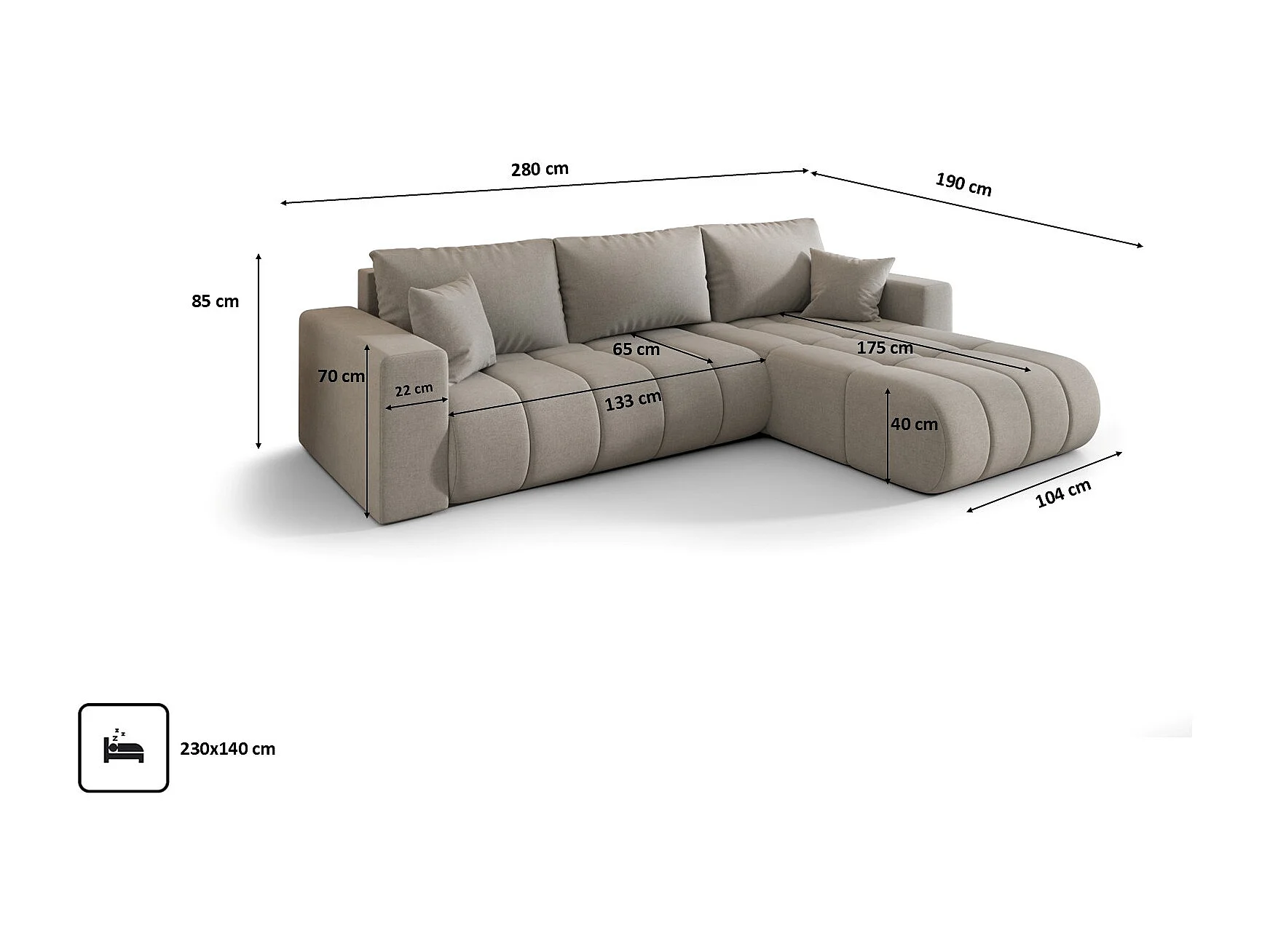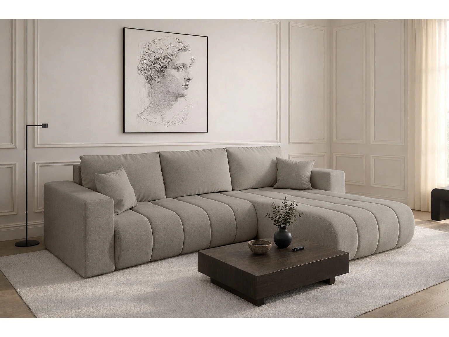 Narożnik z funkcją spania i pojemnikiem MILO PREMIUM, tkanina Wind, Piaskowy, Prawy
