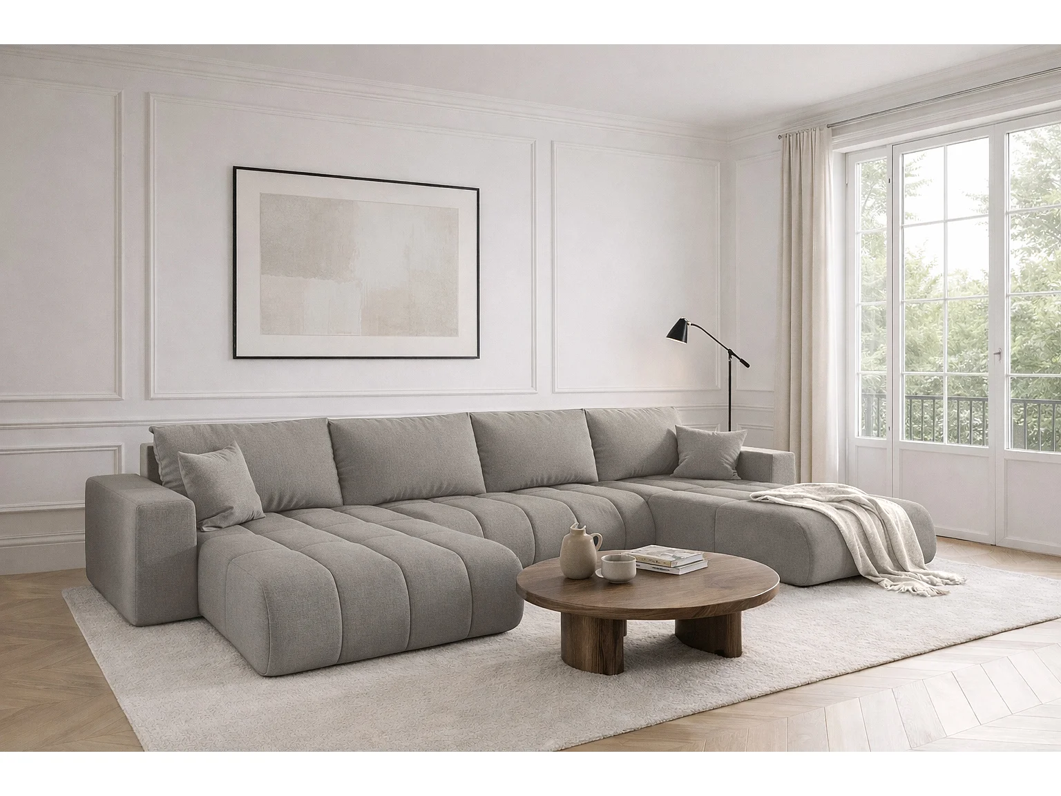 Narożnik z funkcją spania i pojemnikiem MILO U PREMIUM, tkanina Wind, Piaskowy