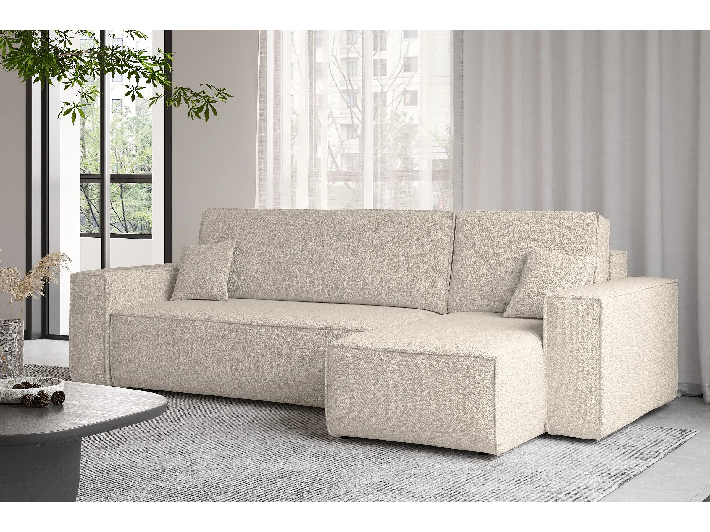 Narożnik z funkcją spania i pojemnikiem, Sofa w kształcie L, BEST L, tkanina Abriamo, Beżowy, Prawy