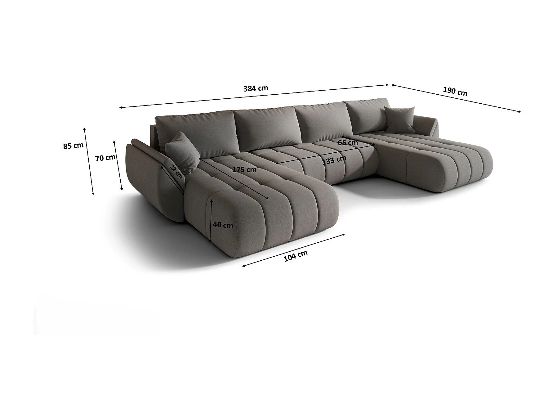 Narożnik z funkcją spania i pojemnikiem TOKYO U PREMIUM, tkanina Wind, Stalowy