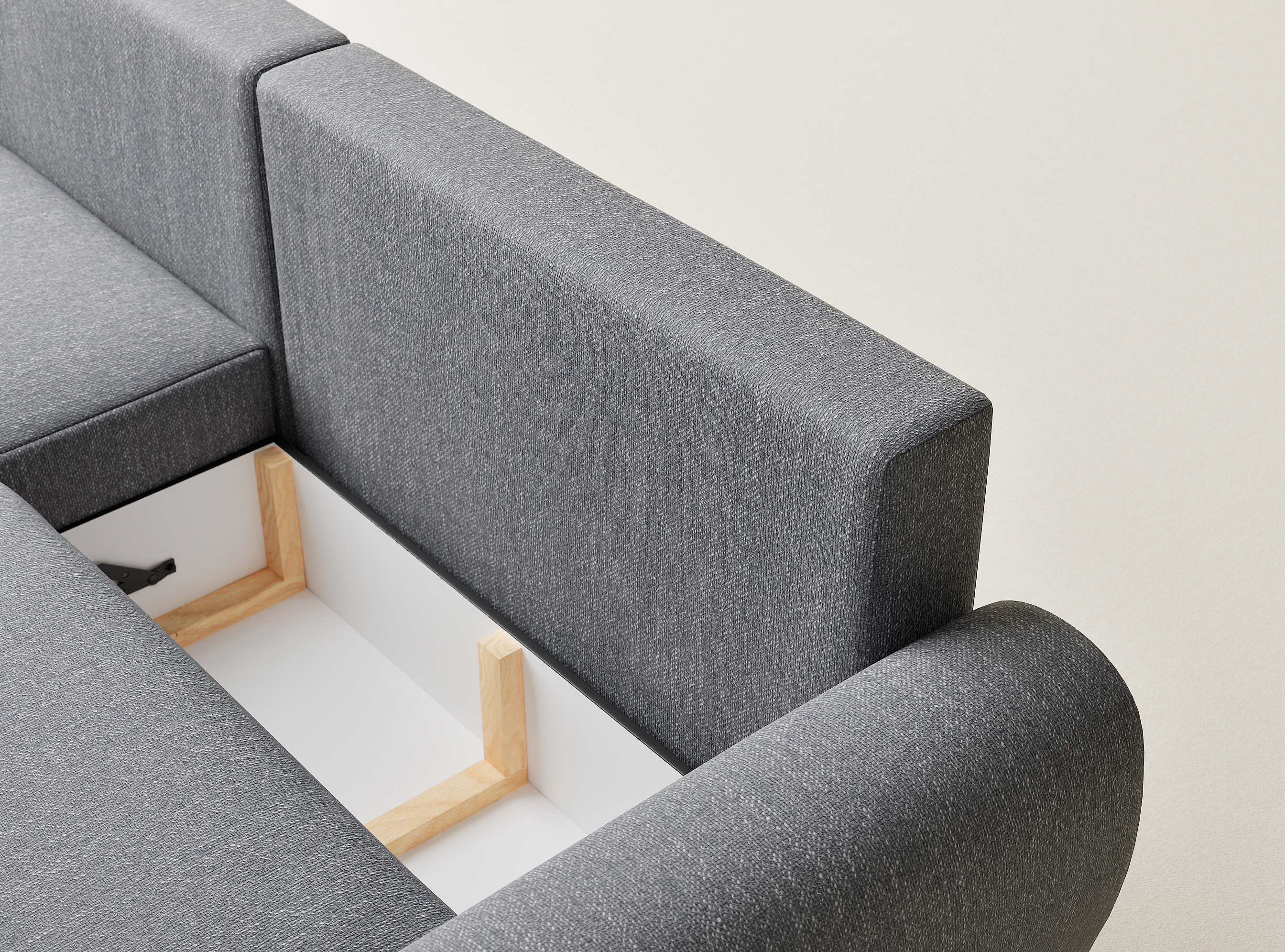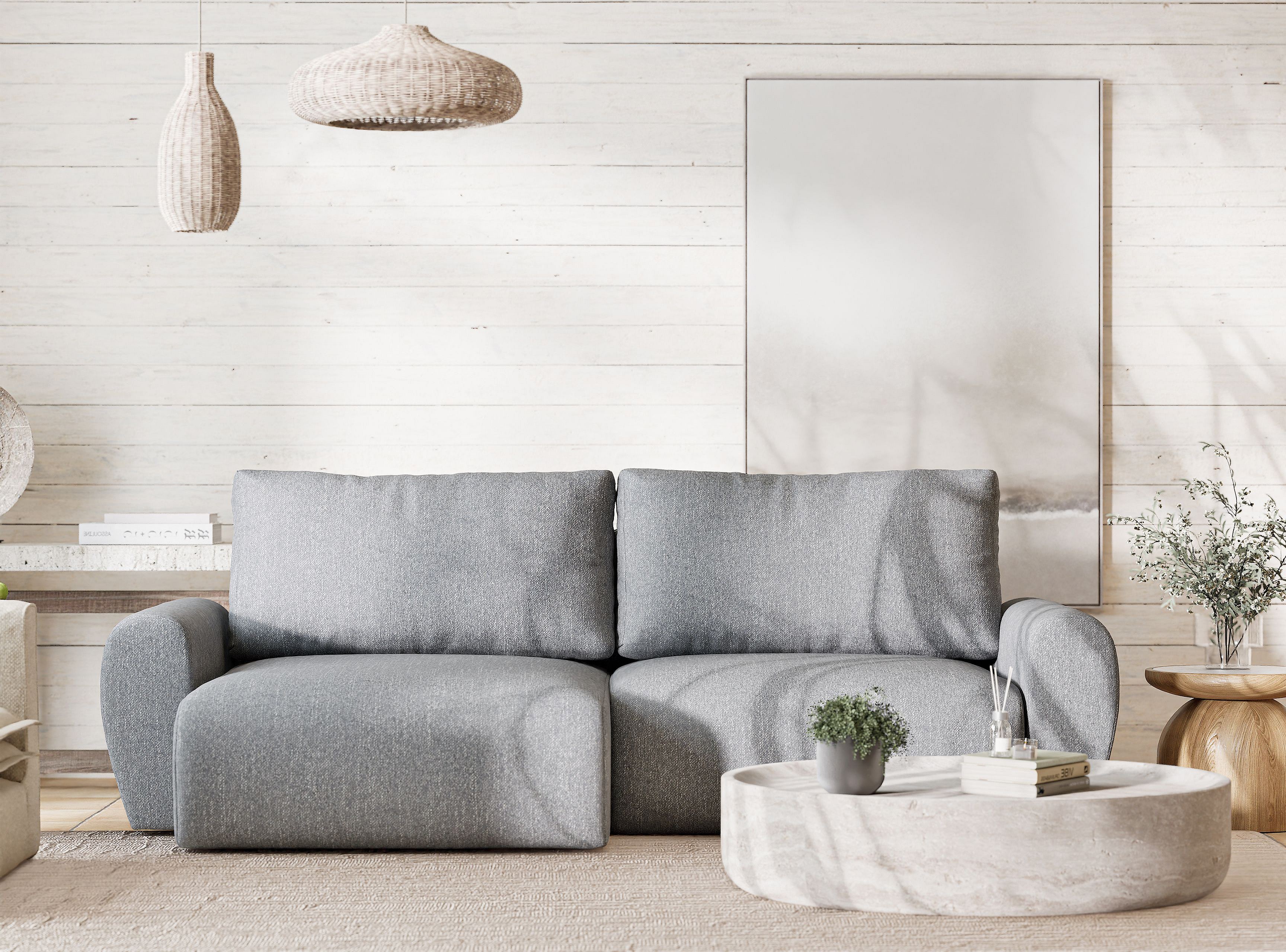 Narożnik z funkcją spania Numba w tkaninie plecionej - trzyosobowy - szary