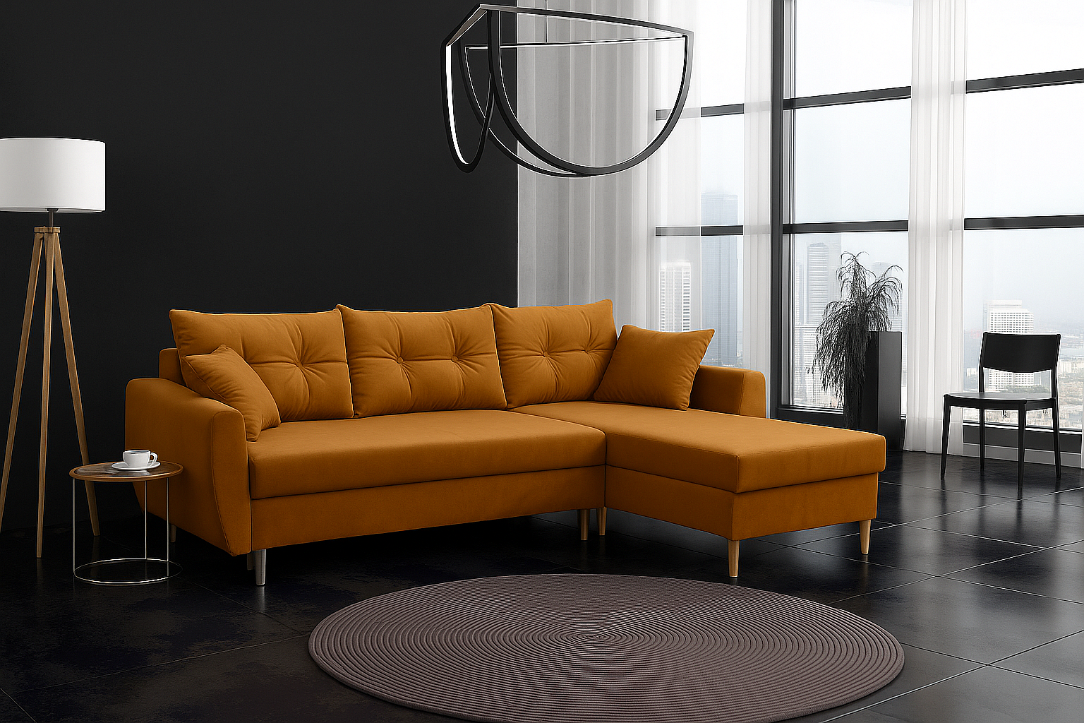 Narożnik z funkcją spania prawostronny ROMEO L, tkanina Riviera 41 musztardowy, 234x156x74 cm