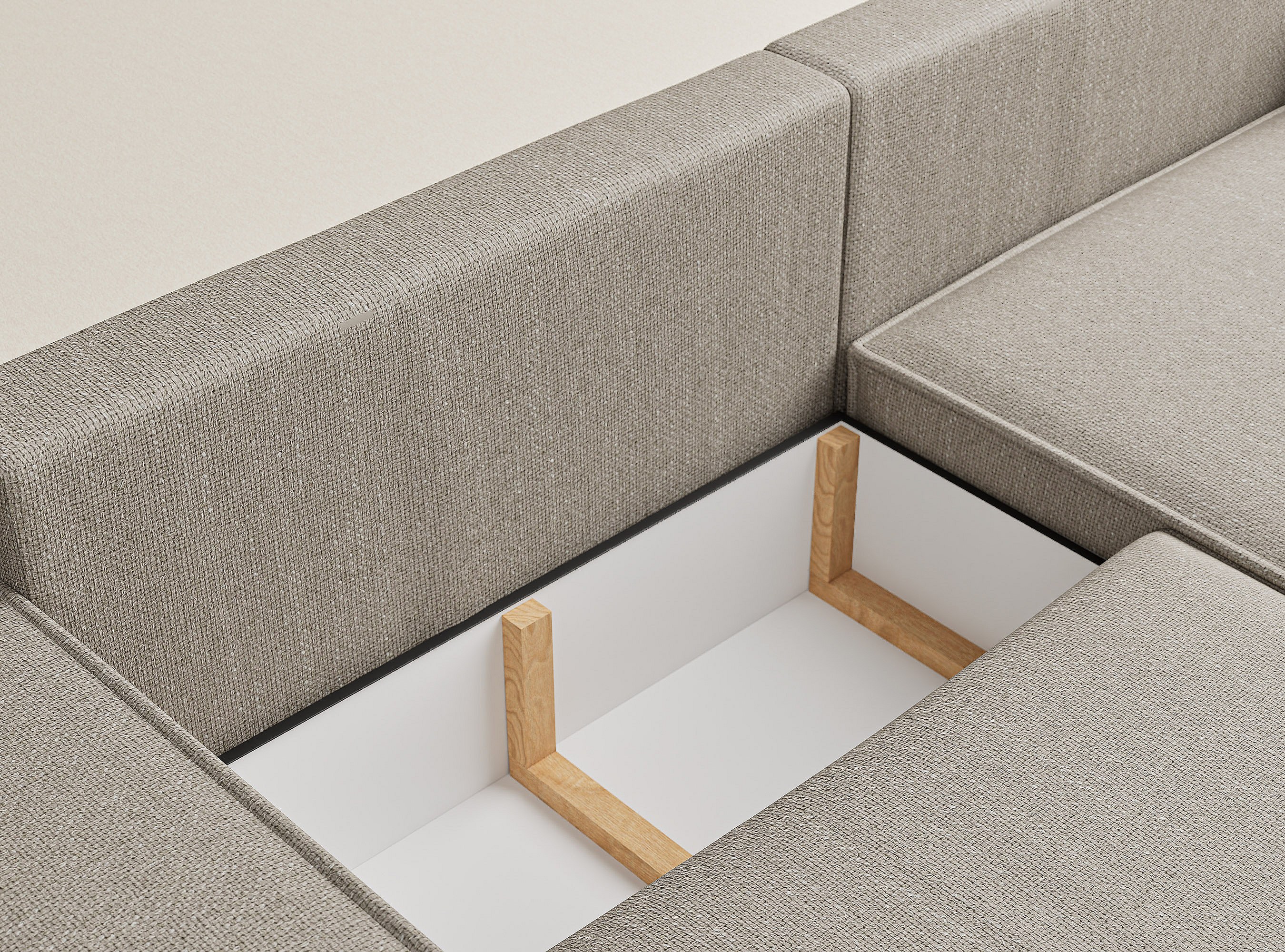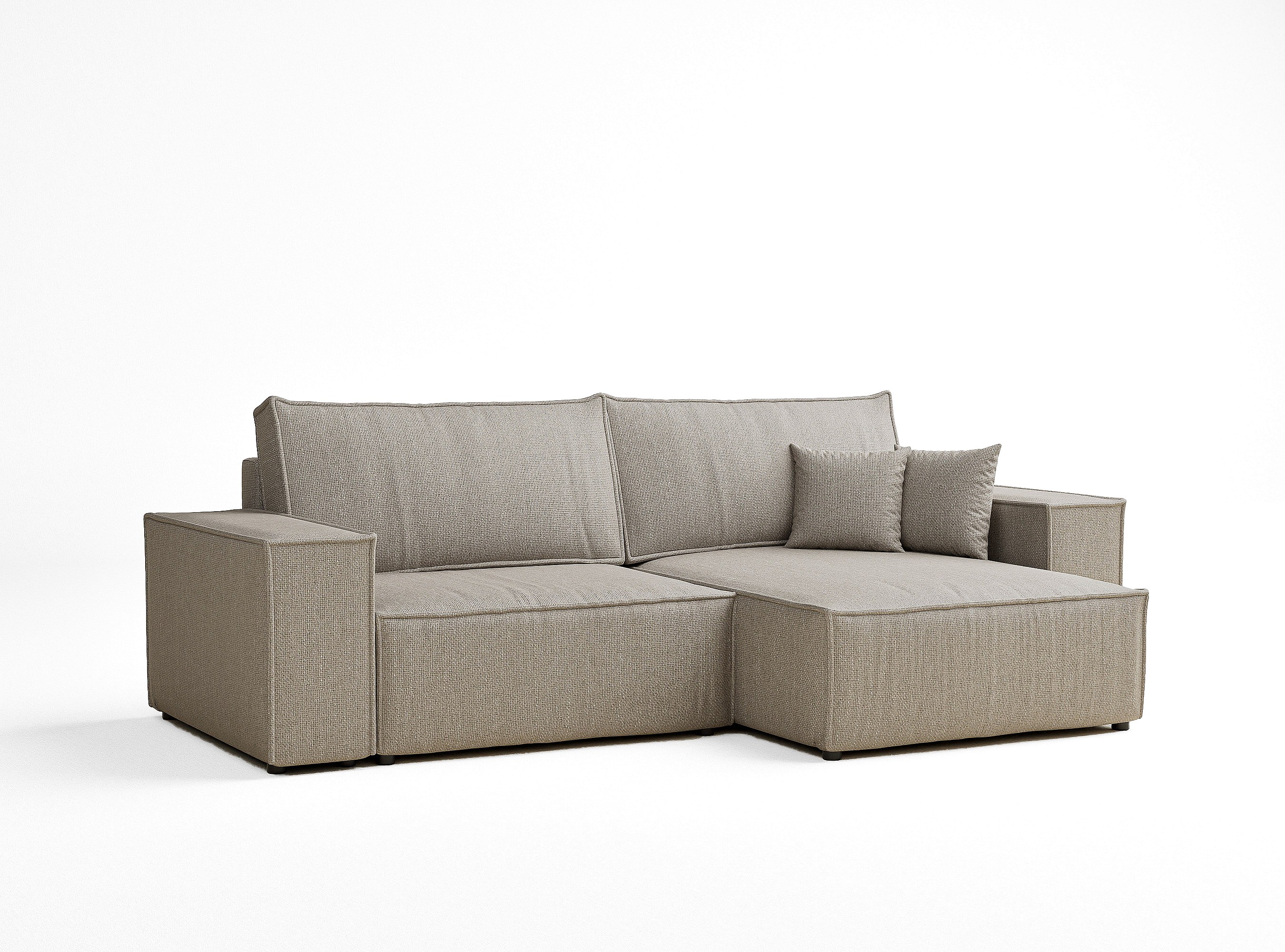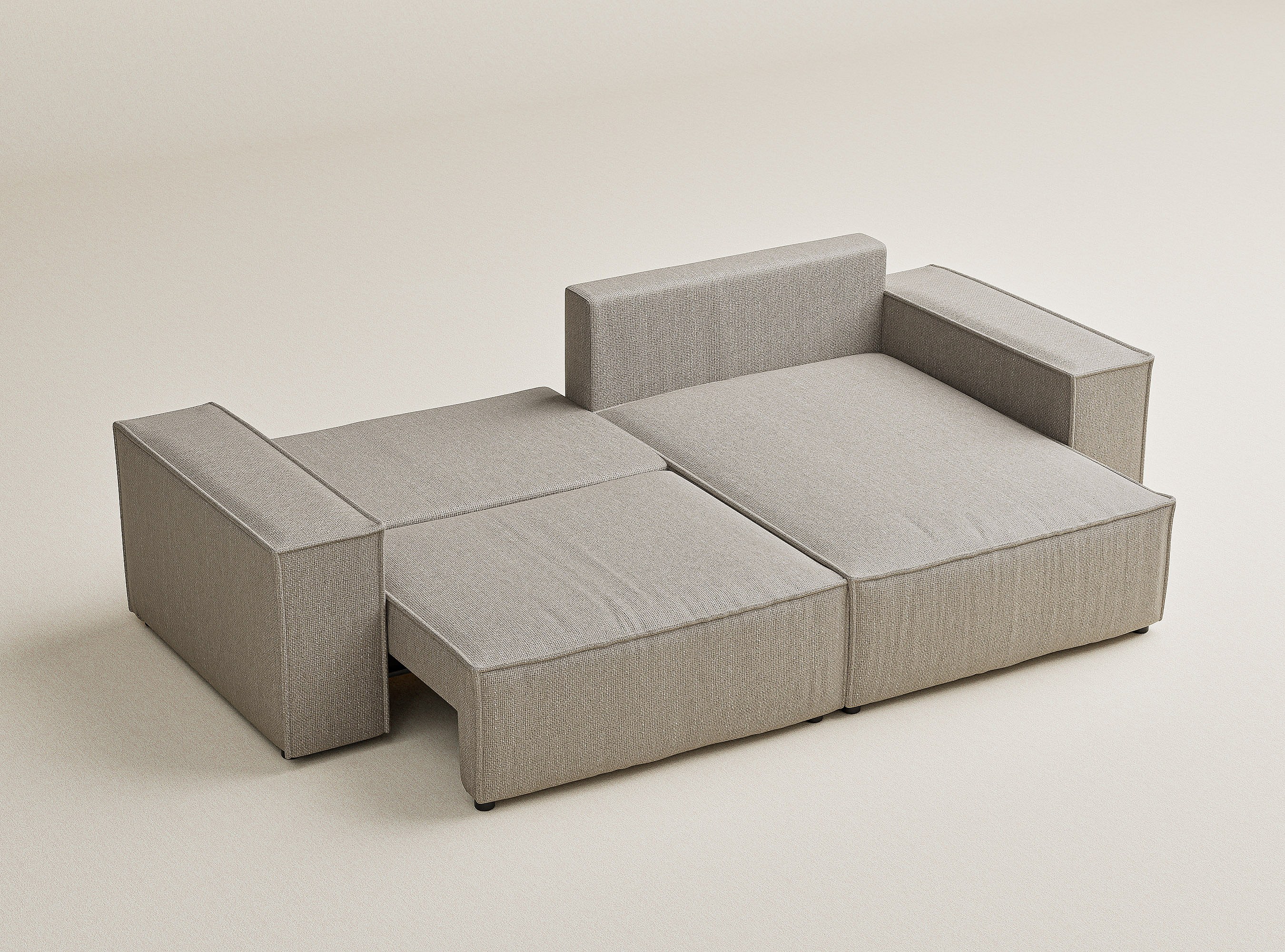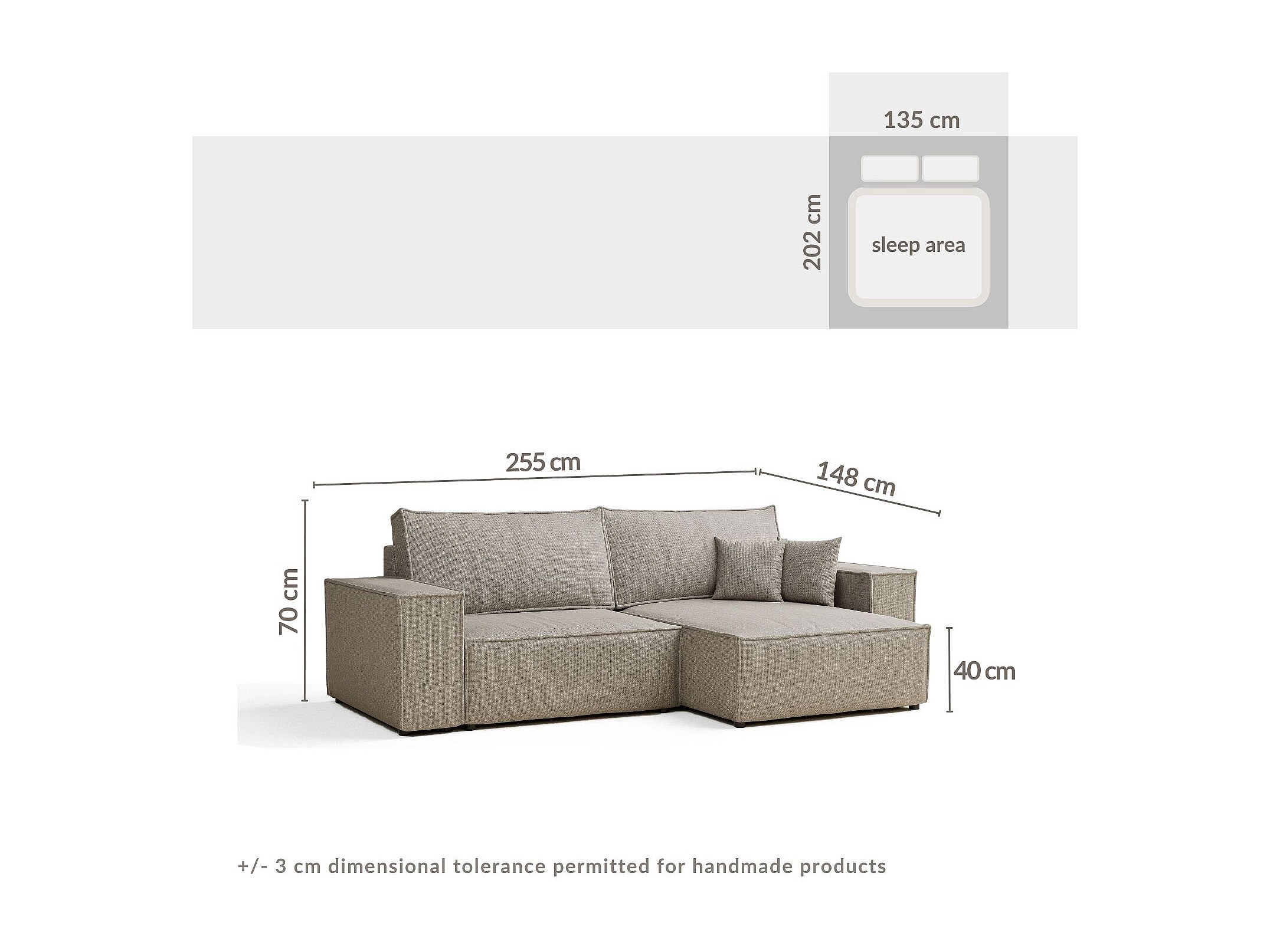 Narożnik z funkcją spania Zaya w tkaninie plecionej - trzyosobowy - beżowy
