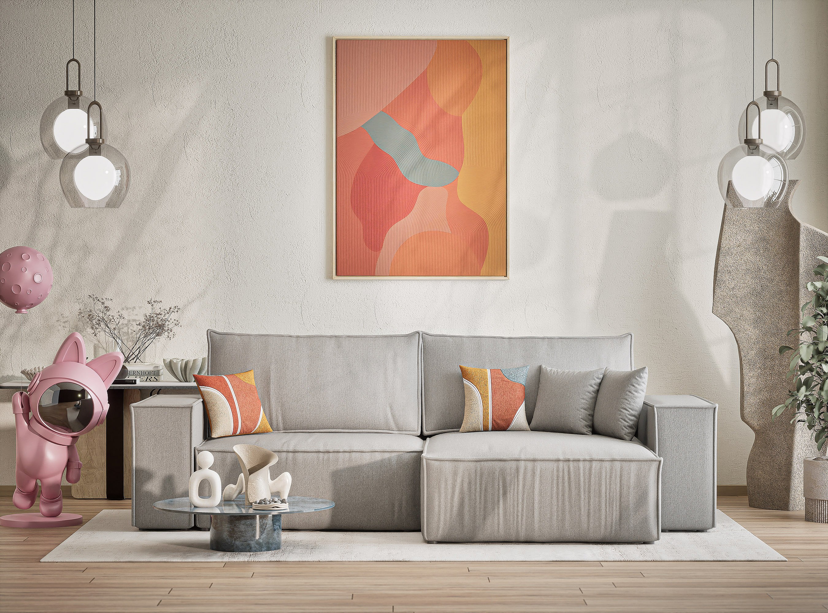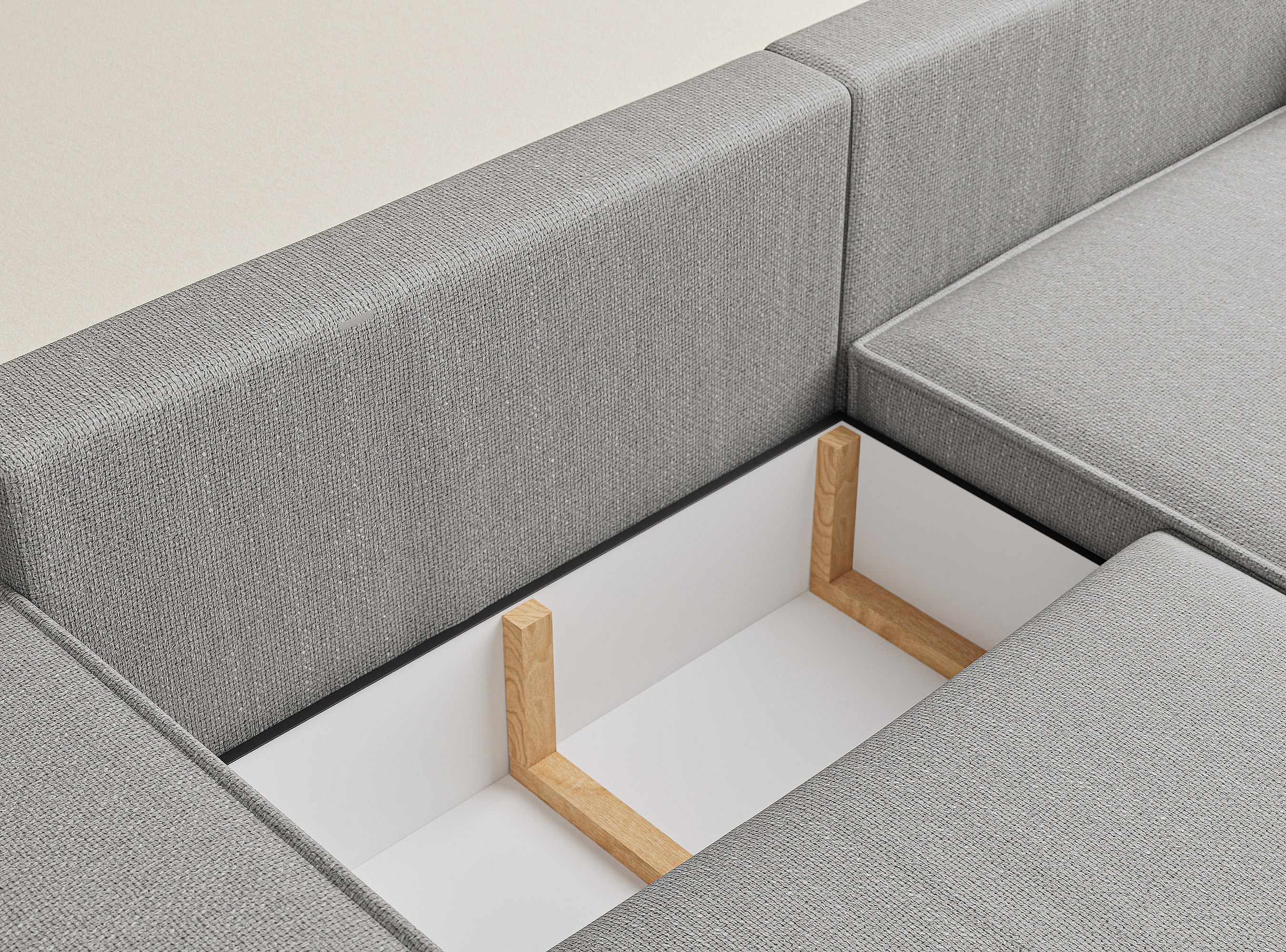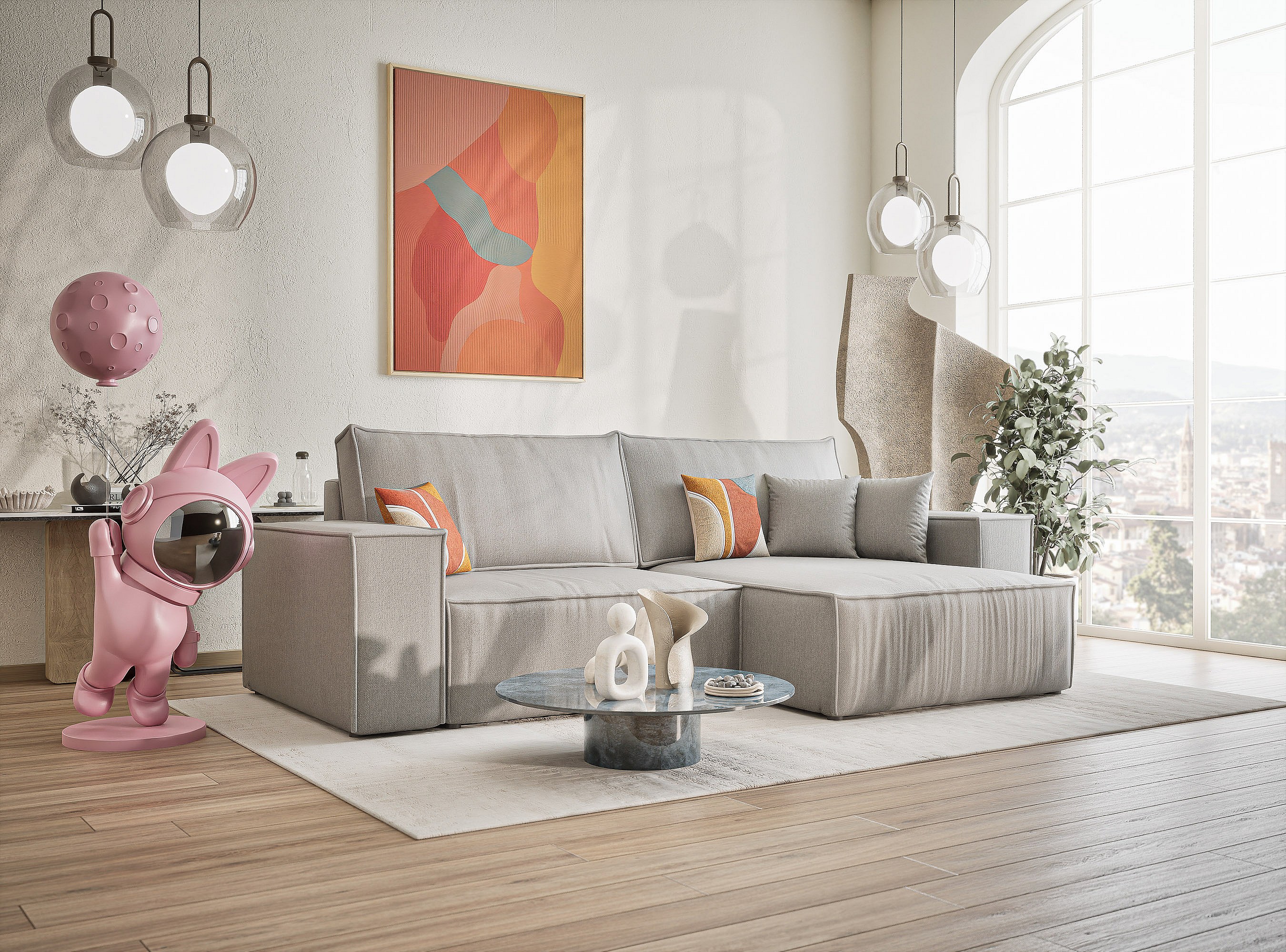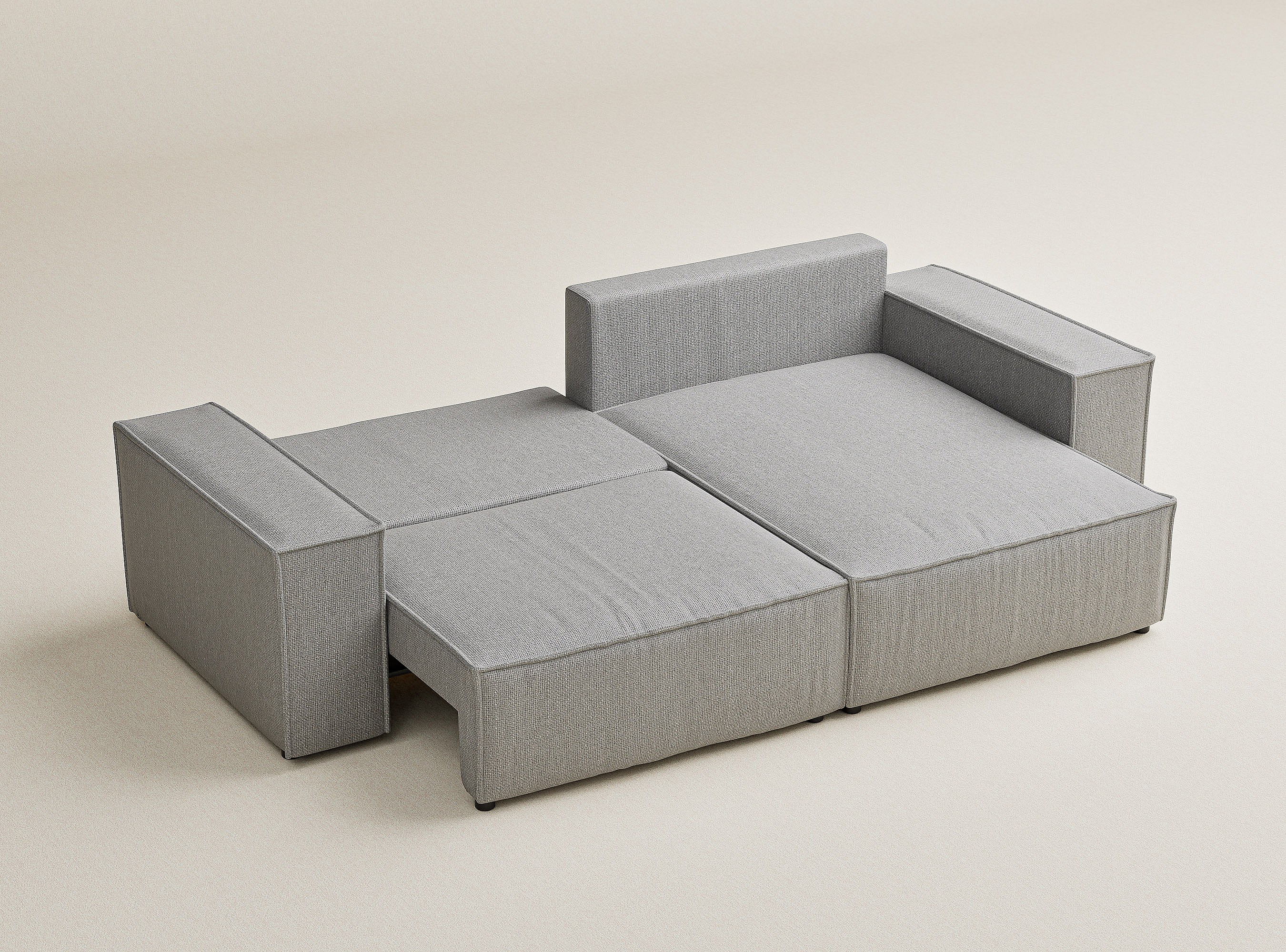 Narożnik z funkcją spania Zaya w tkaninie plecionej - trzyosobowy - jasnoszary