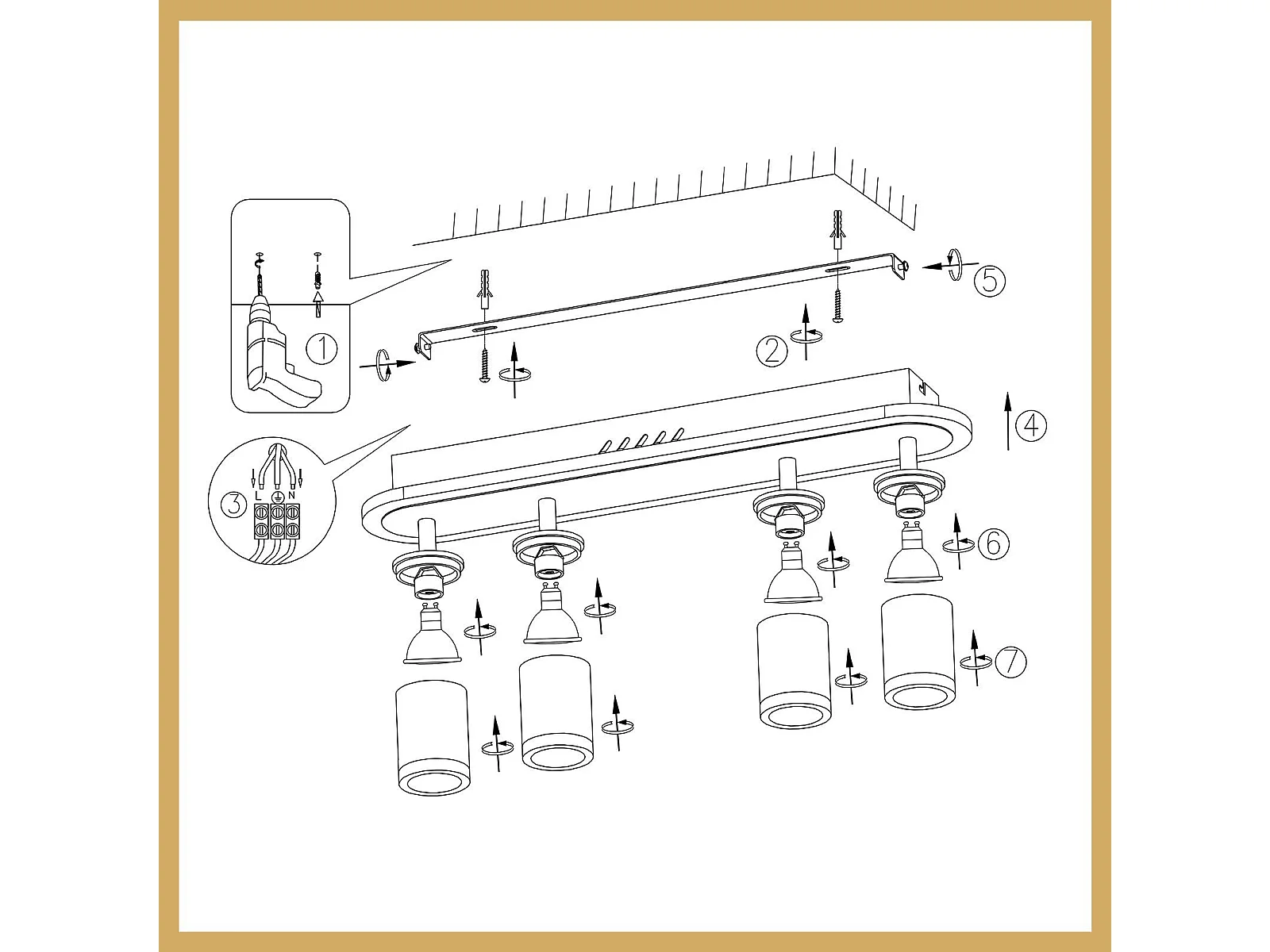 NETTLIFE 4 ciepłe białe GU10 metalowe reflektory sufitowe LED, regulowane 330° do sypialni, przedpokoju, jadalni, kuchni, salonu