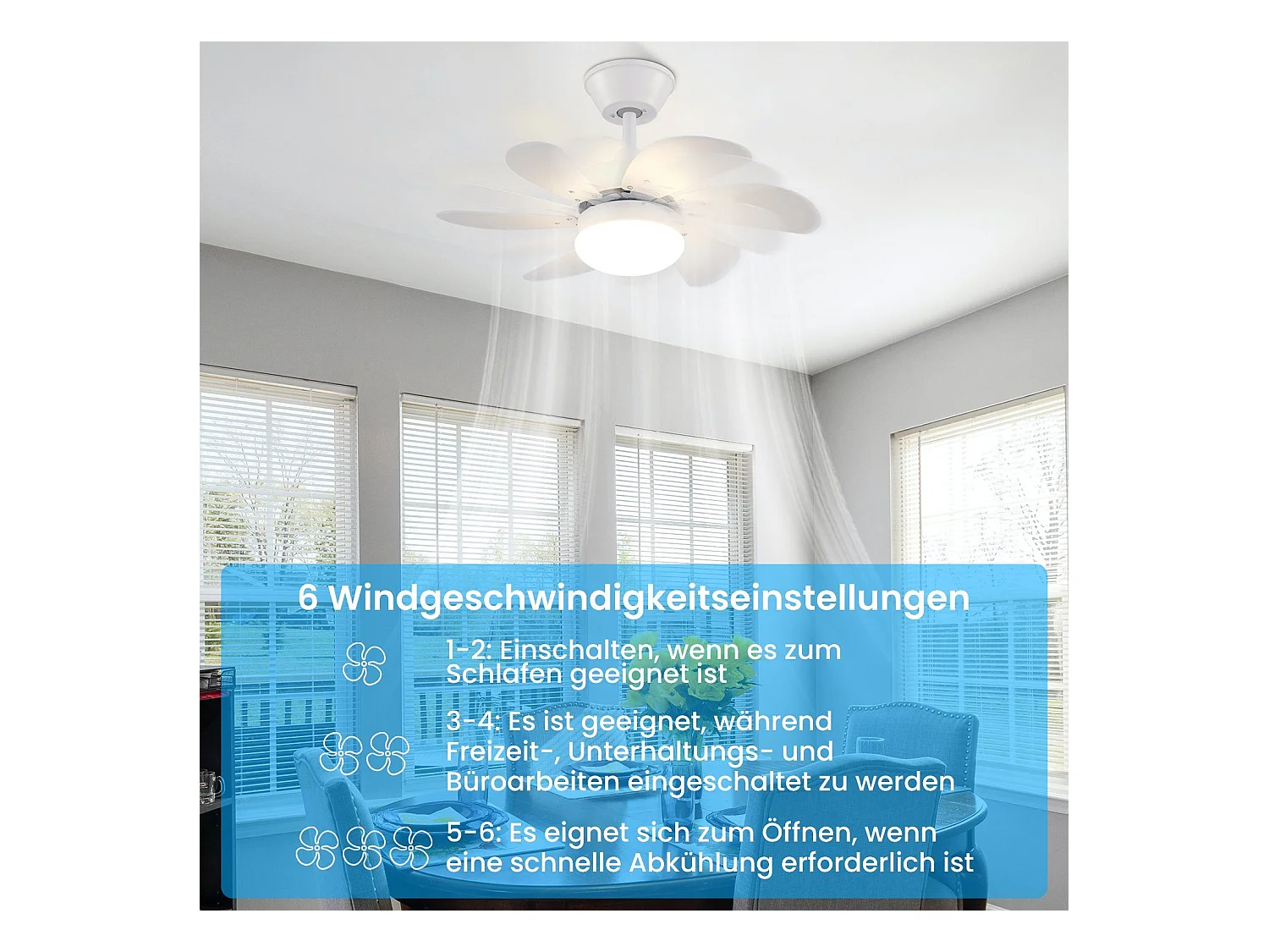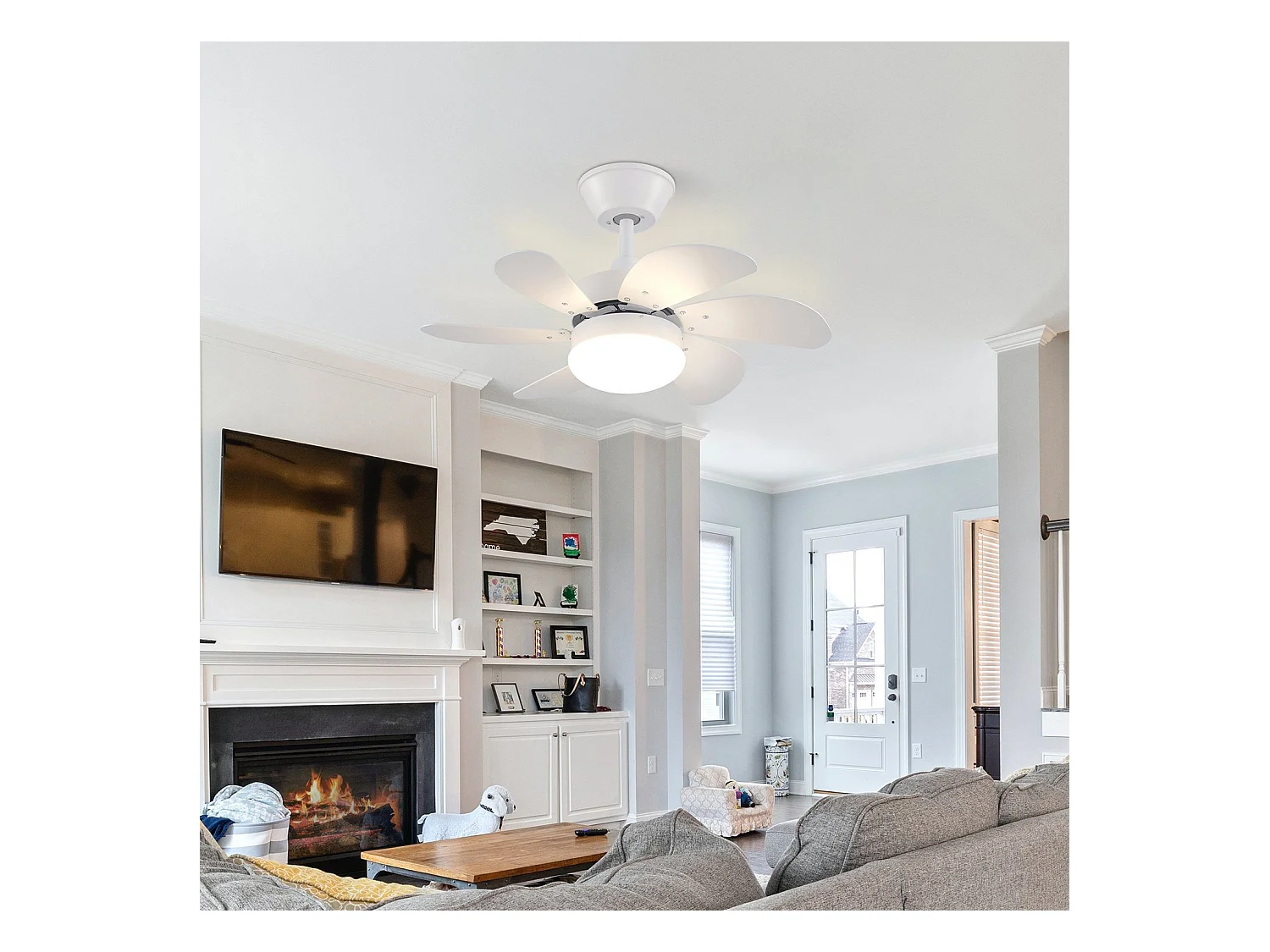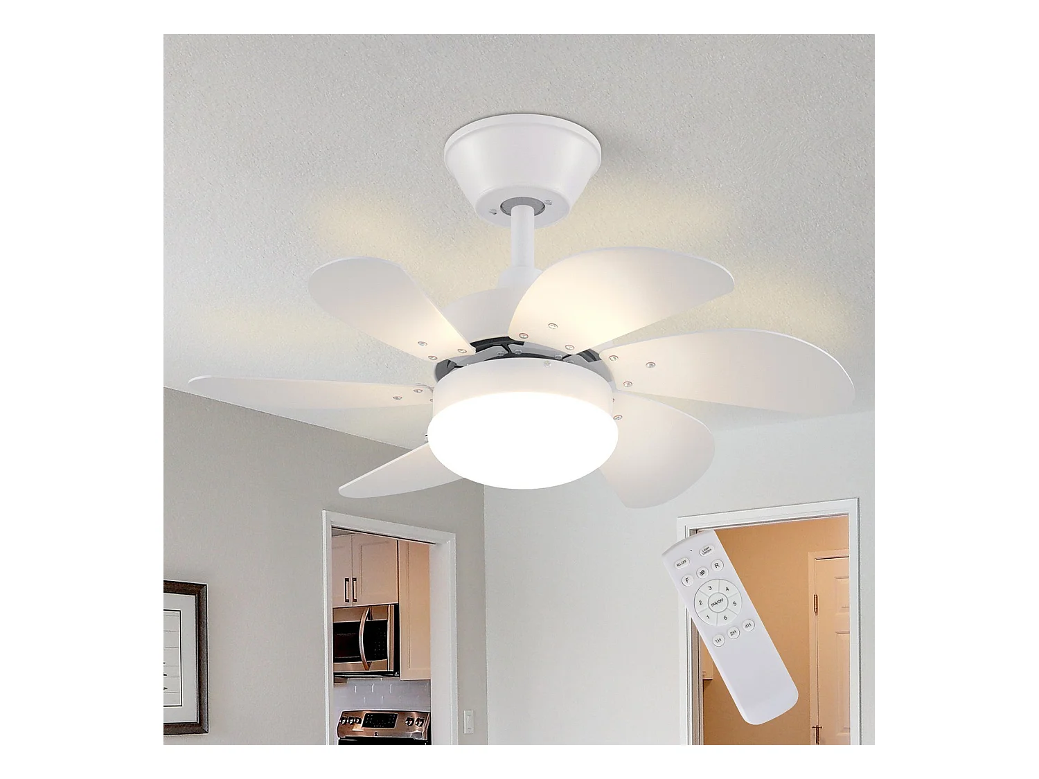 NETTLIFE Biały wentylator sufitowy ze światłami, pilotem, cichy, z timerem, 6 łopatkami, do sypialni