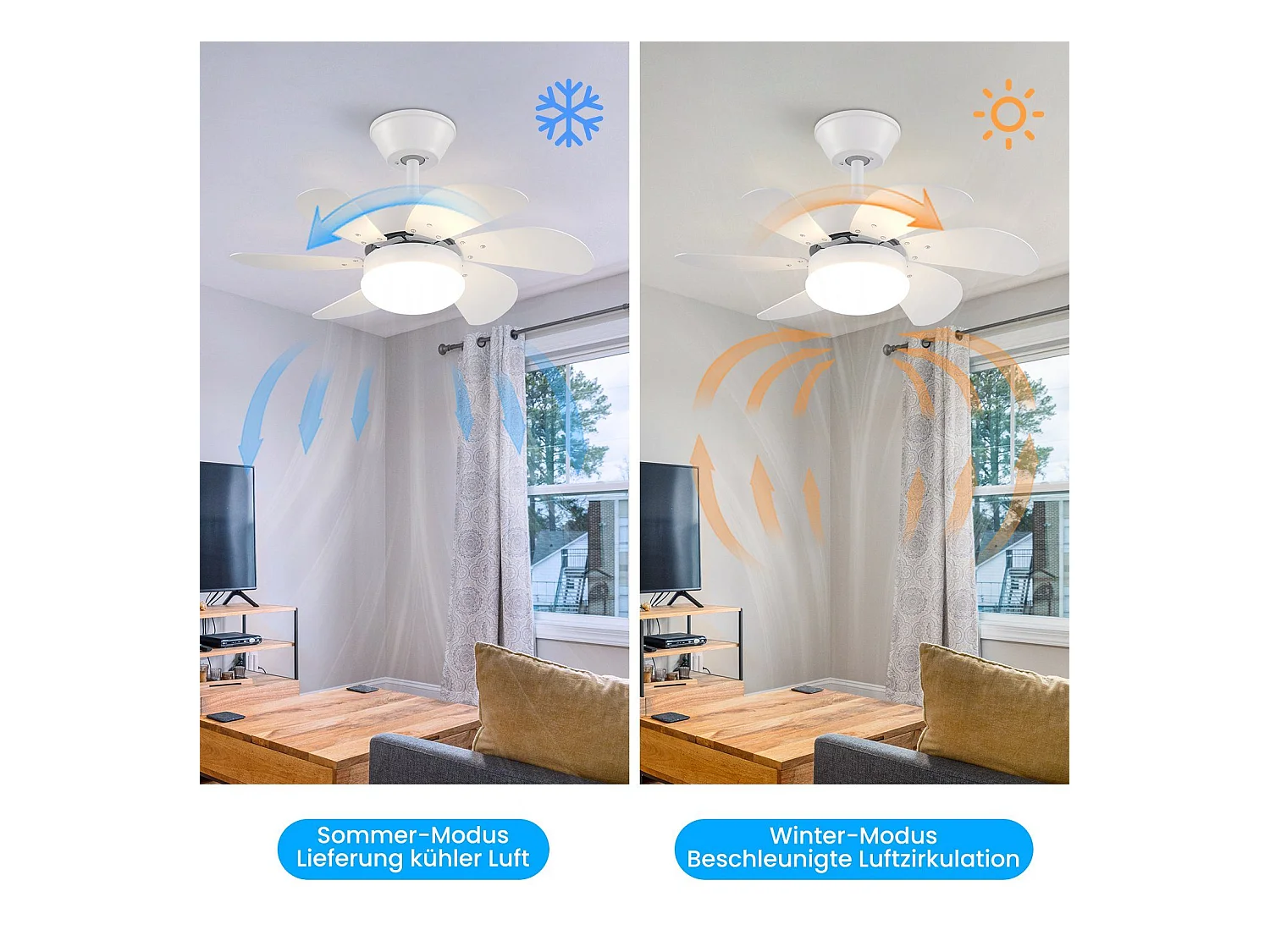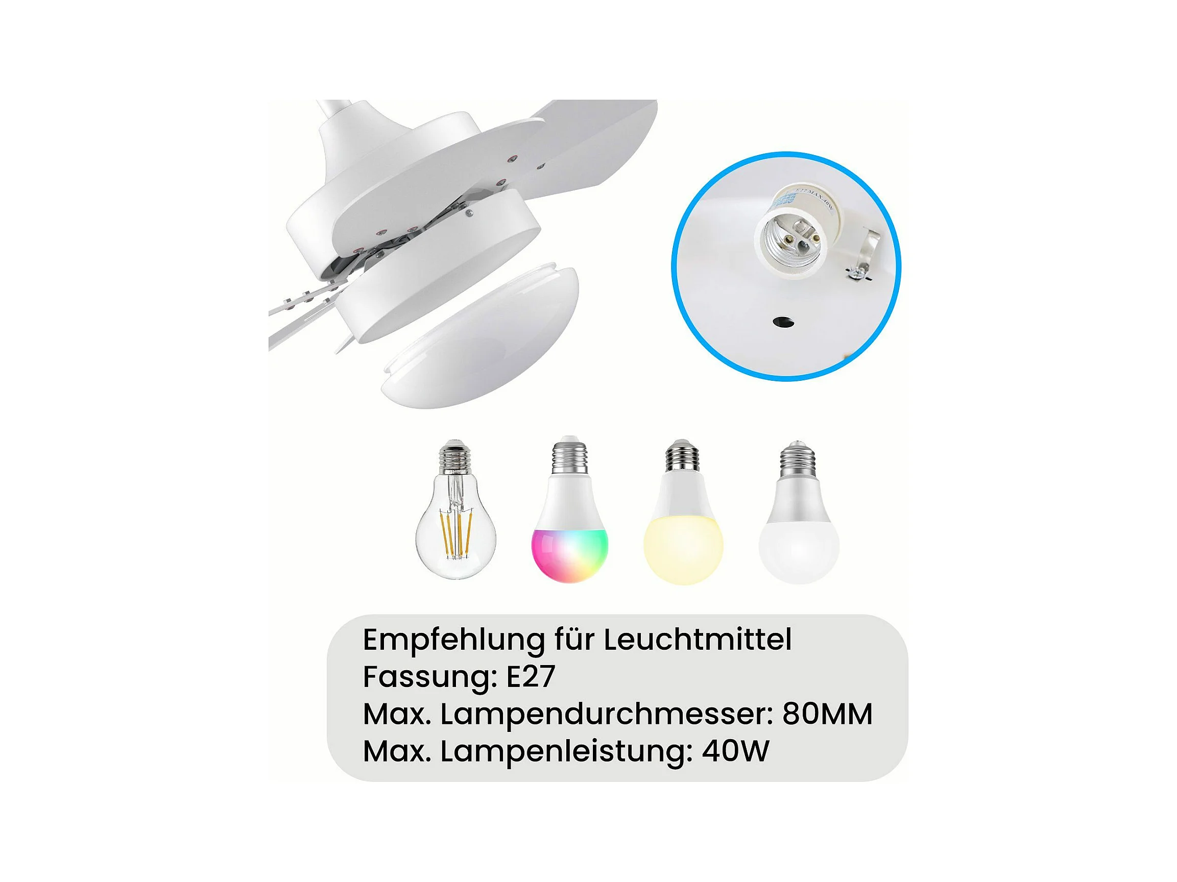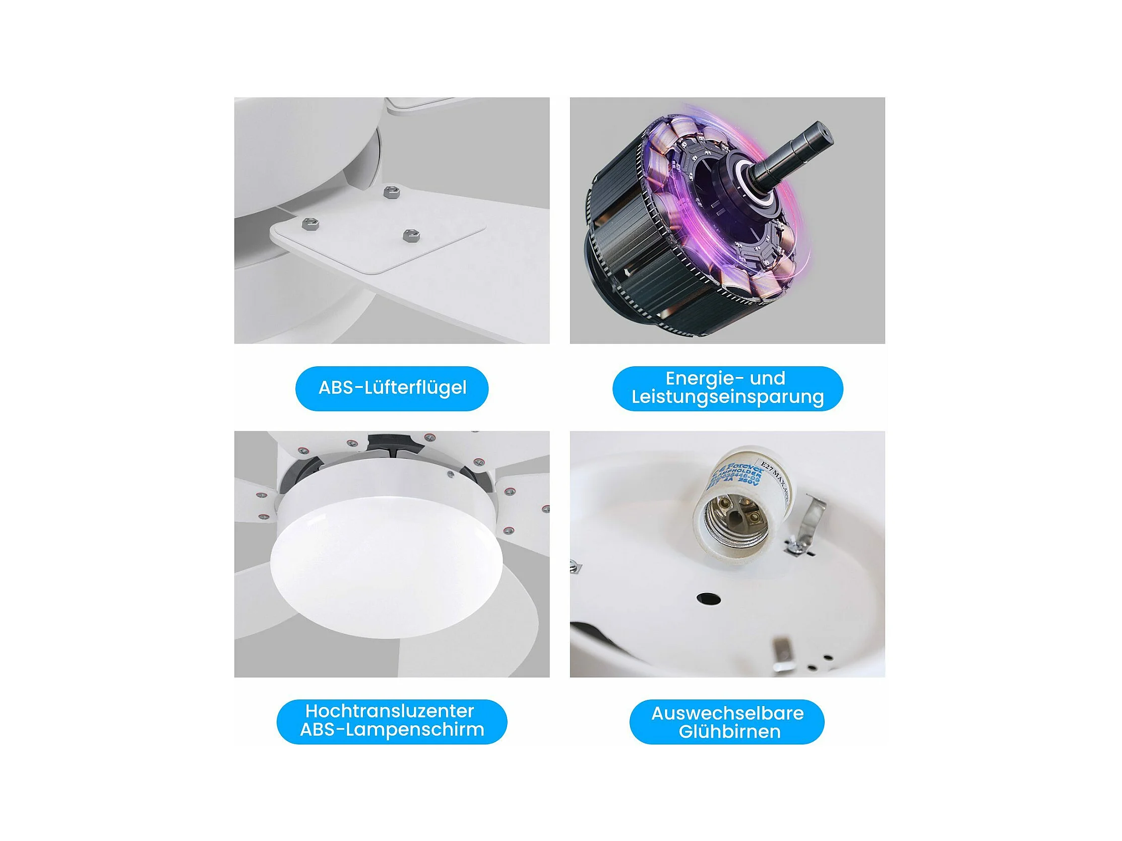 NETTLIFE Biały wentylator sufitowy ze światłami, pilotem, cichy, z timerem, 6 łopatkami, do sypialni