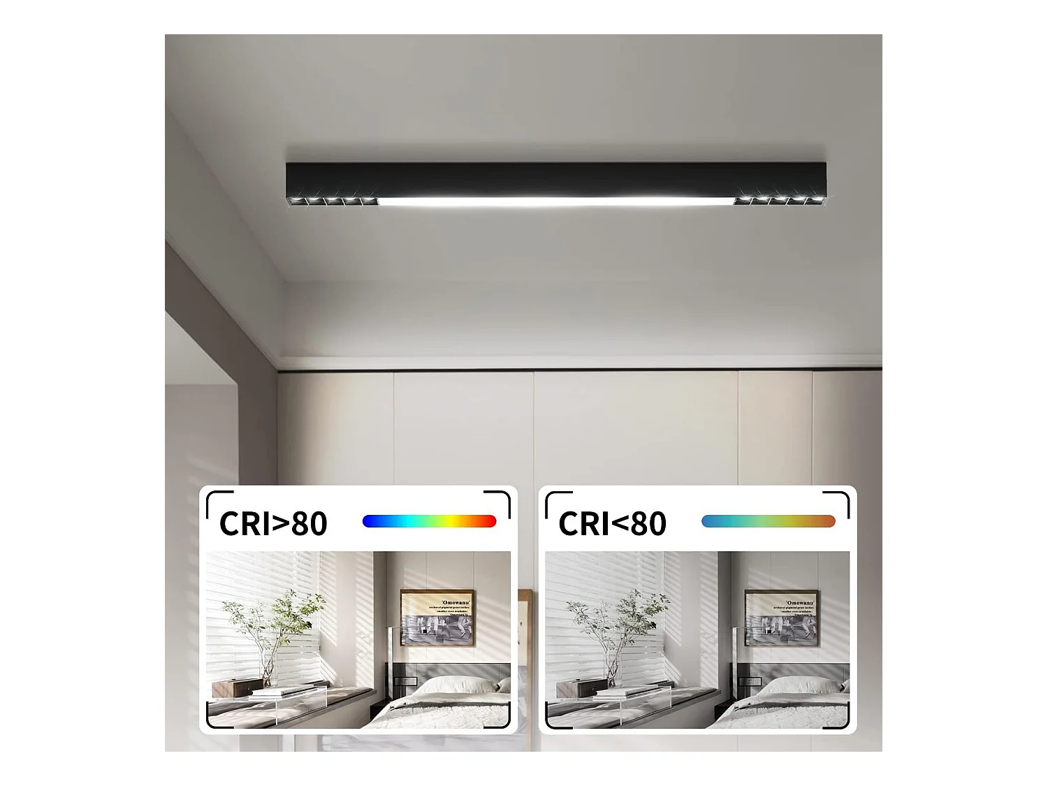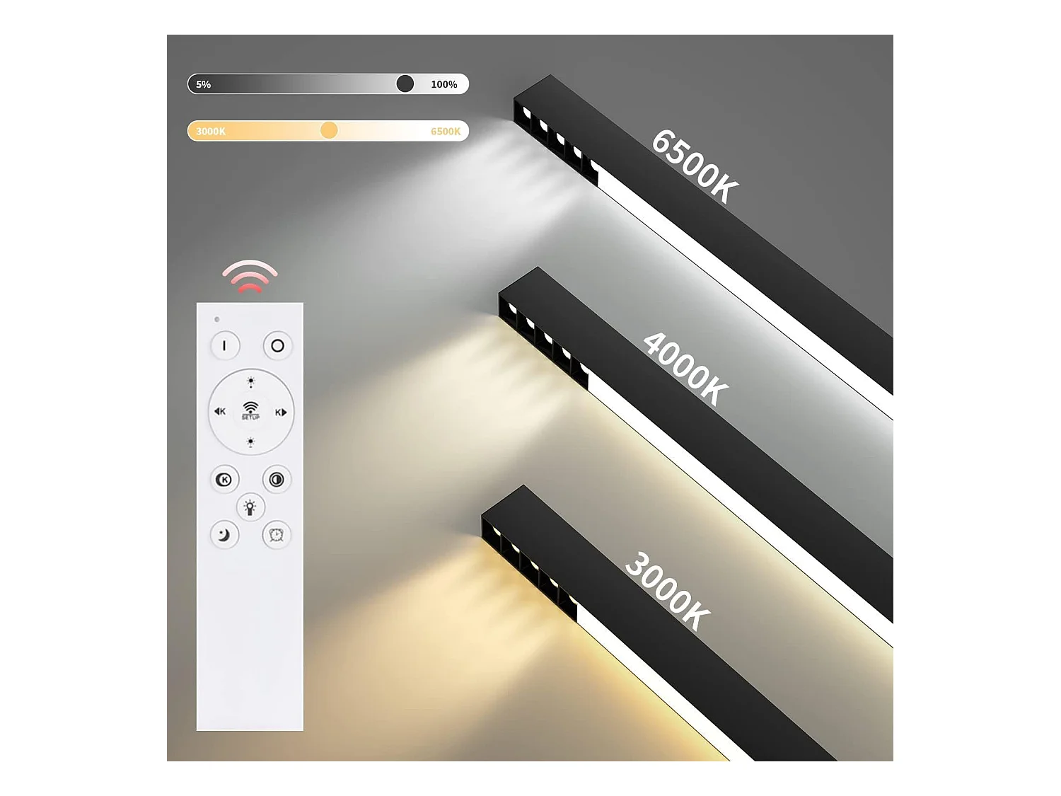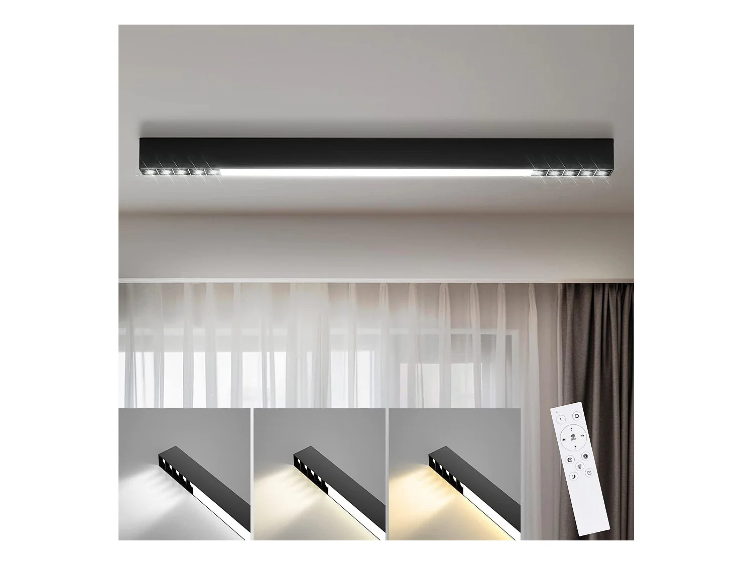 NETTLIFE czarna lampa sufitowa LED 32W długa nowoczesna z możliwością przyciemniania za pomocą pilota 107CM lampa kuchenna do salonu sypialnia biuro