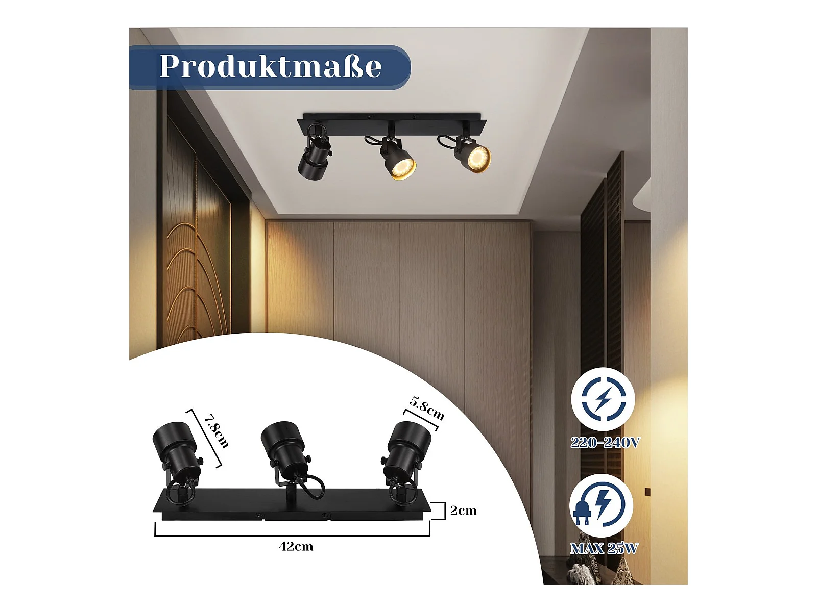 NETTLIFE Czarny sufitowy punktowy vintage lampa sufitowa GU10 lampa kuchenna do regulacji 3 płomienie vintage 350°