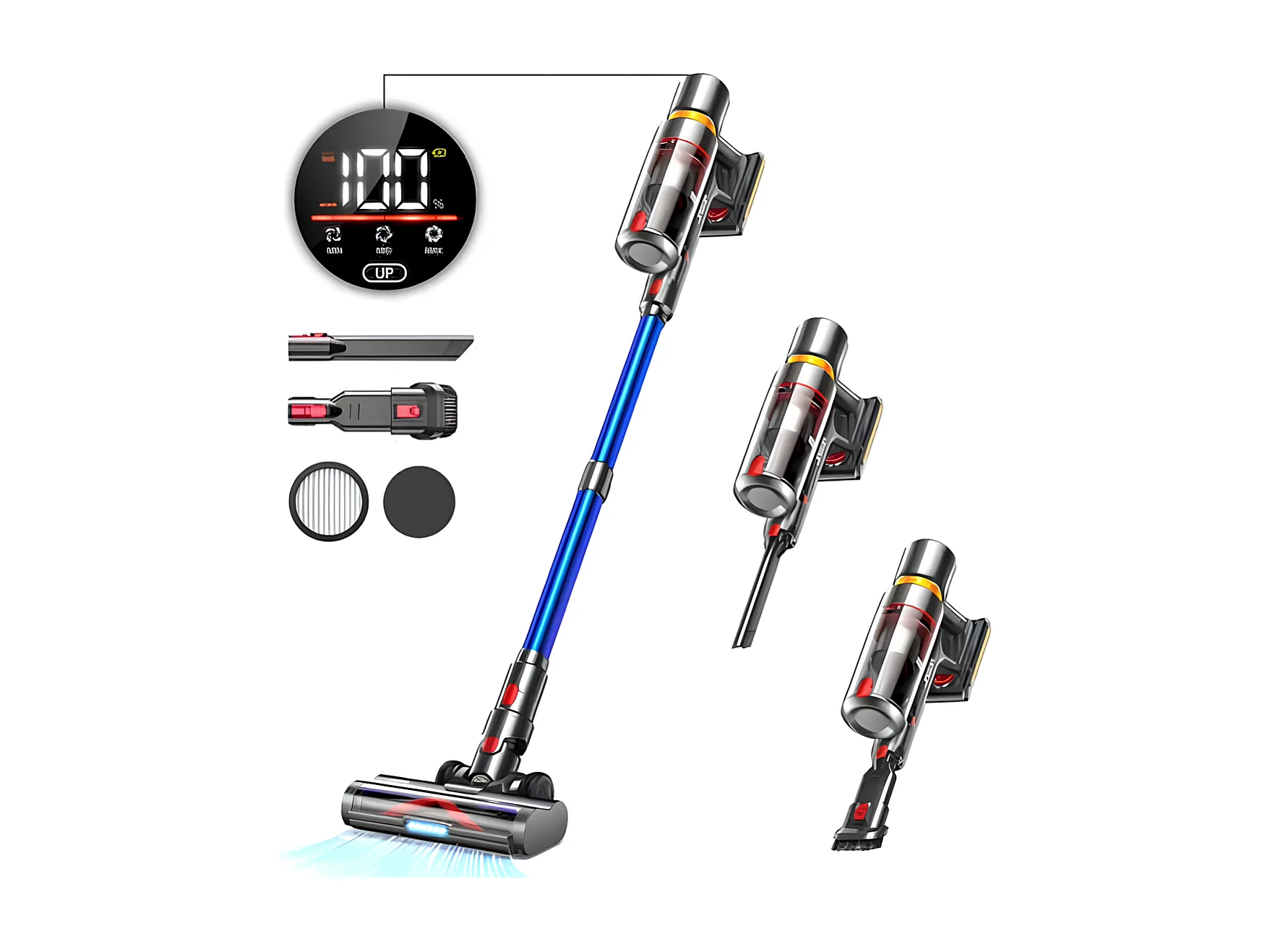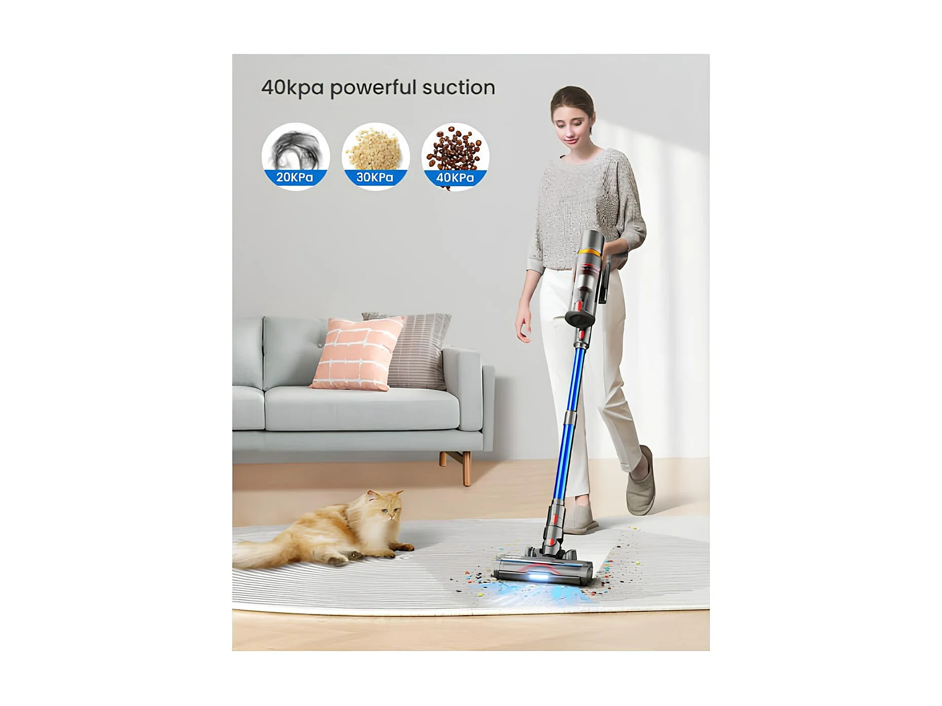 Nettlife JAS-V15 bezprzewodowy odkurzacz ręczny i pionowy, duża siła ssania 40 kPa, czas pracy na baterii 60 minut, regulowana prędkość za pomocą ekranu dotykowego.