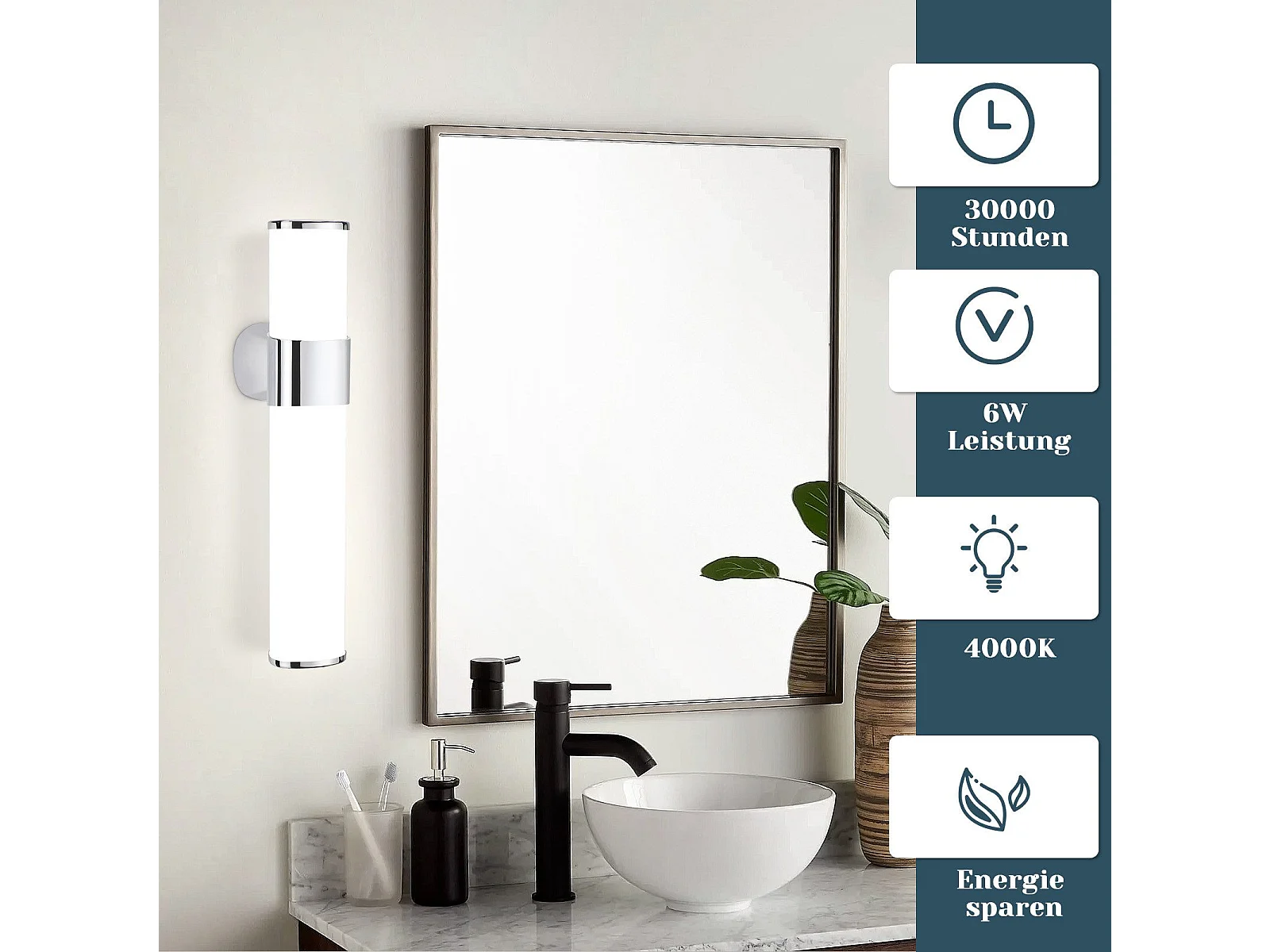 NETTLIFE Lampa ścienna LED do łazienki Nowoczesna chromowana 6W 30CM Wodoodporna IP44 Neutralna biel 4000K