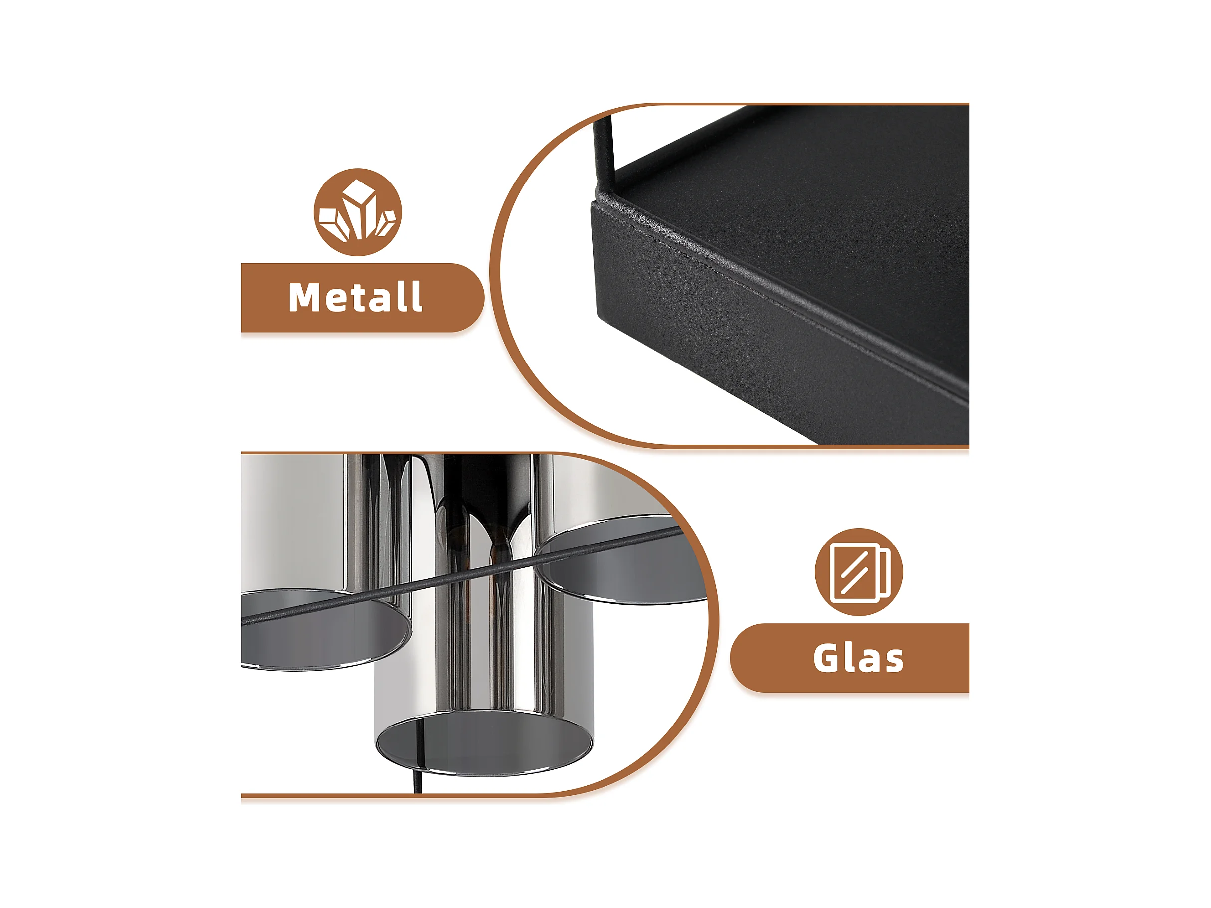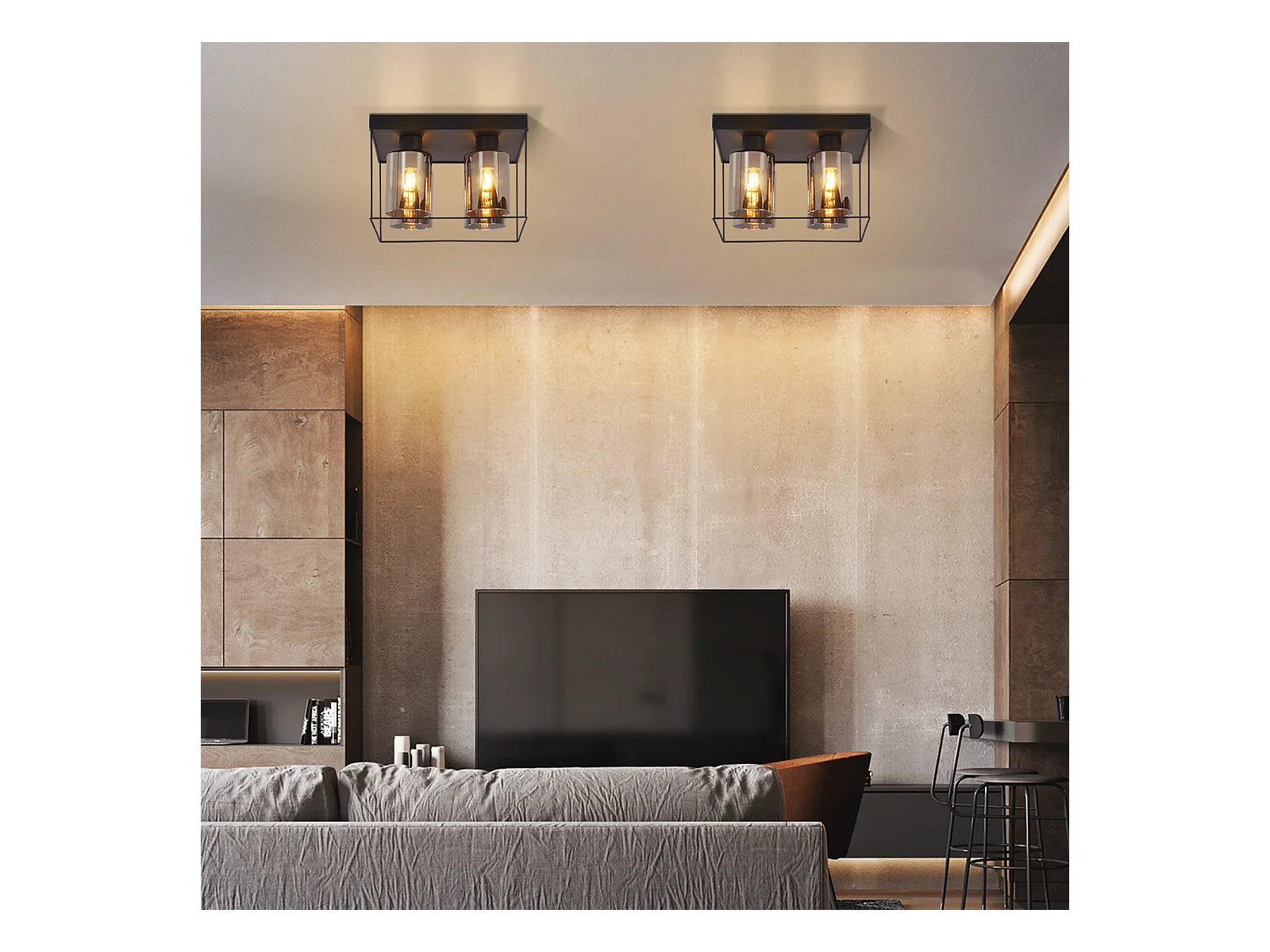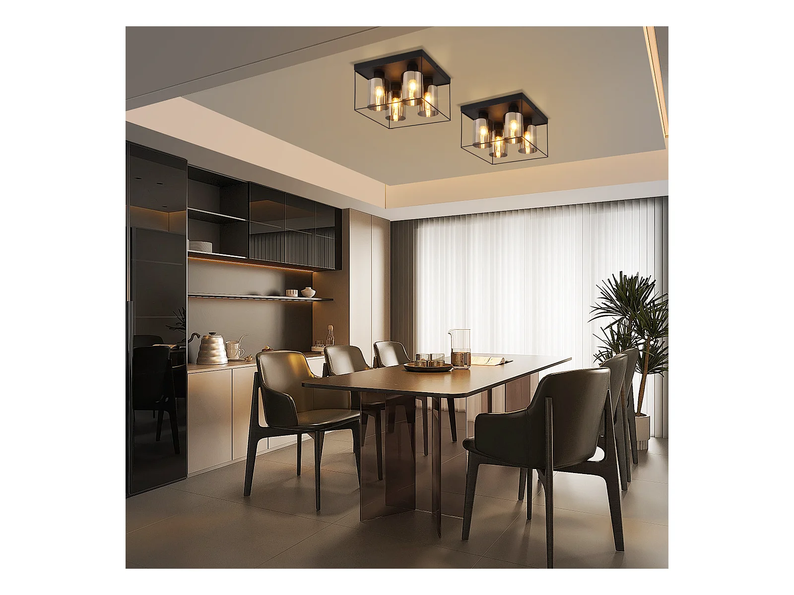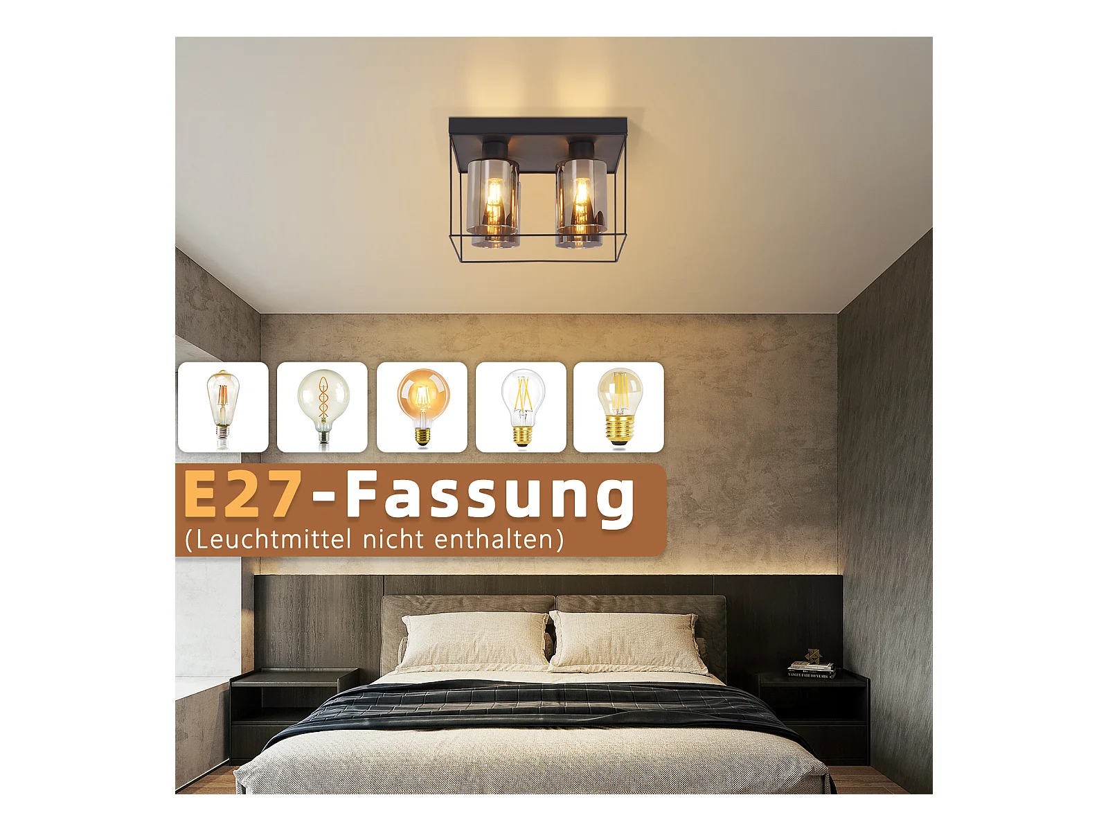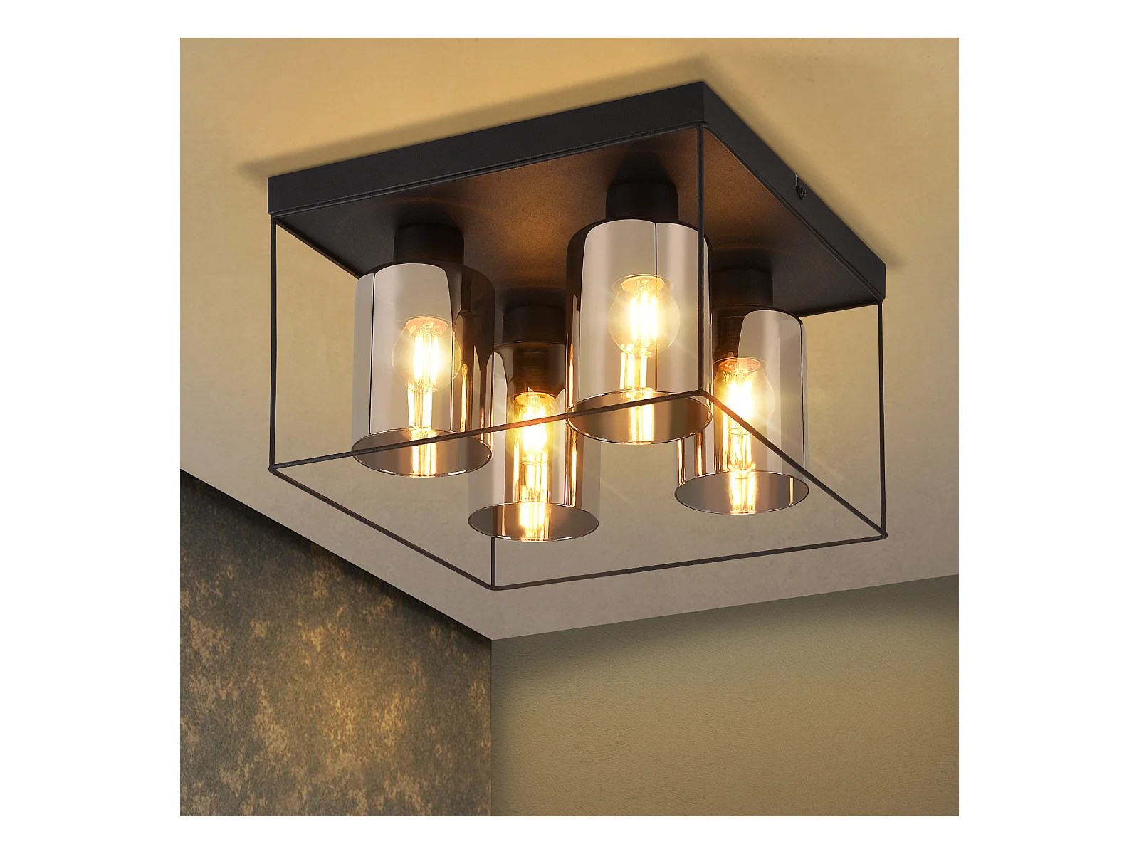 NETTLIFE Lampa sufitowa do salonu, lampa sufitowa, szkło, 4 żarówki, E27, vintage, czarny, styl industrialny, metal, retro