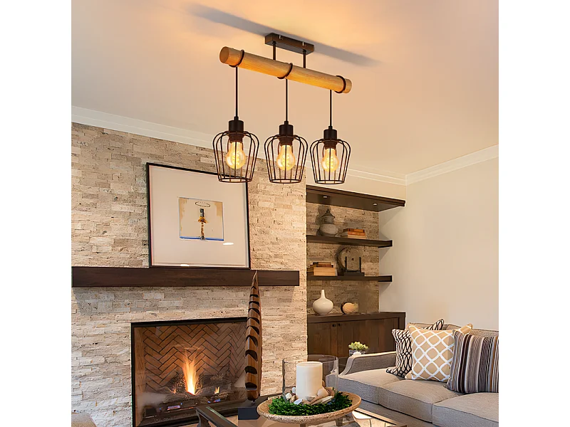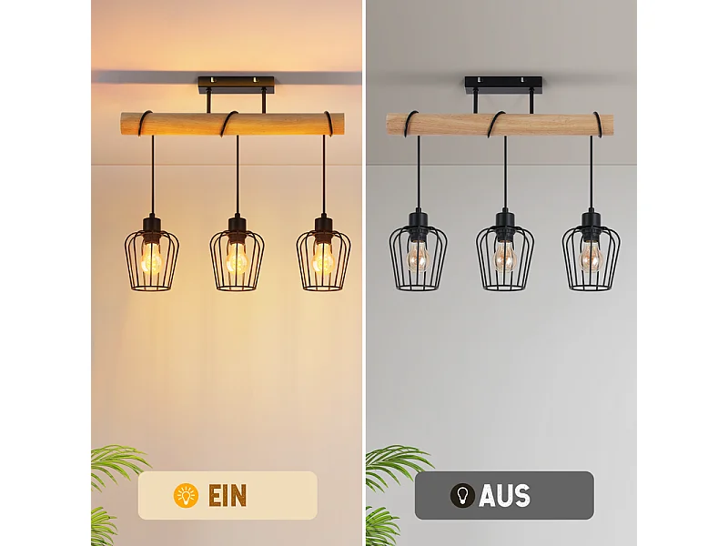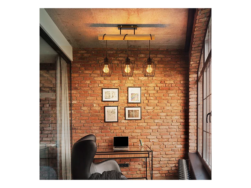 NETTLIFE Lampa sufitowa do salonu w stylu vintage, drewniana, czarna, metalowa, industrialna, do salonu. Żarówka E27 nie jest dołączona.