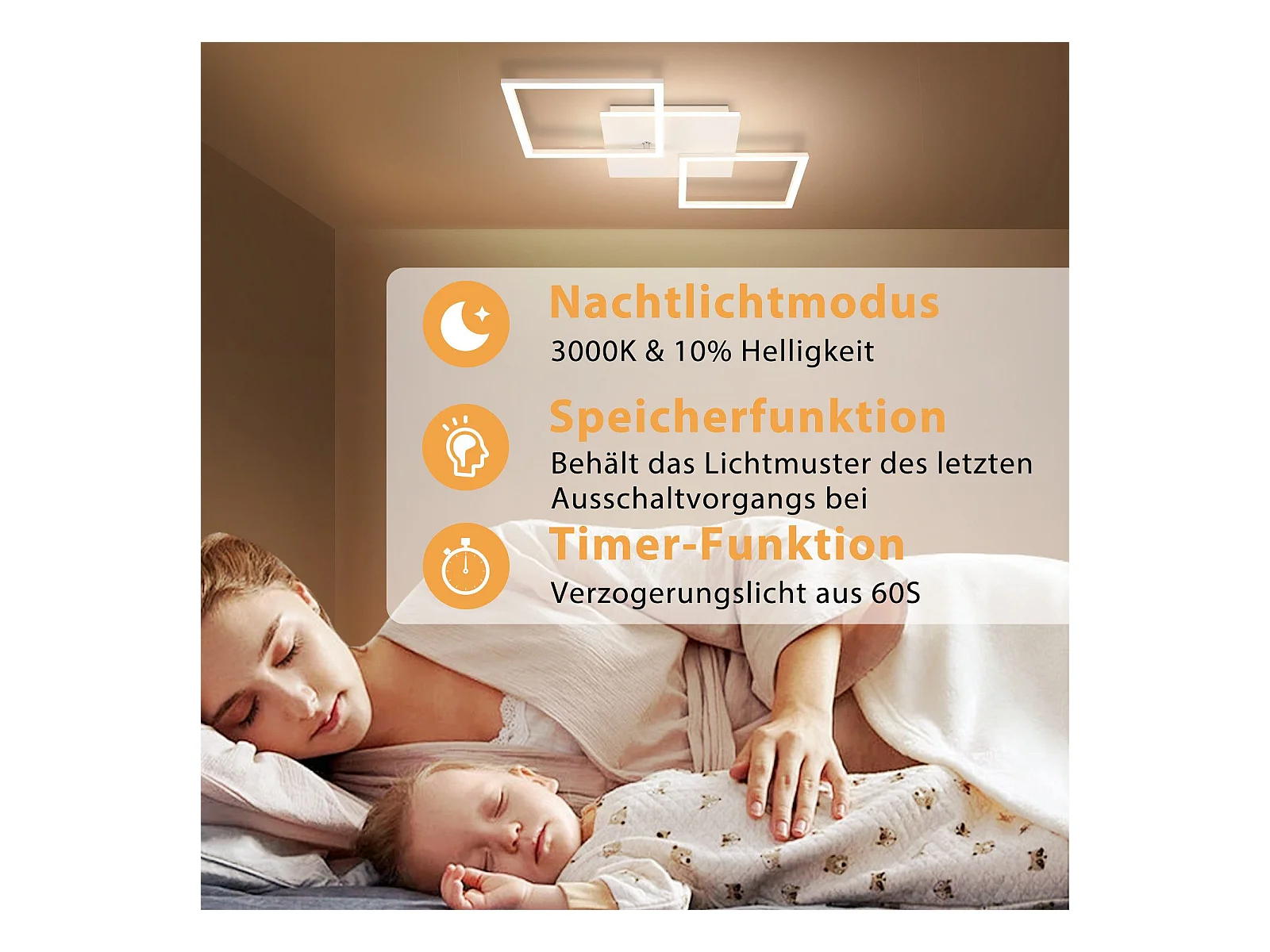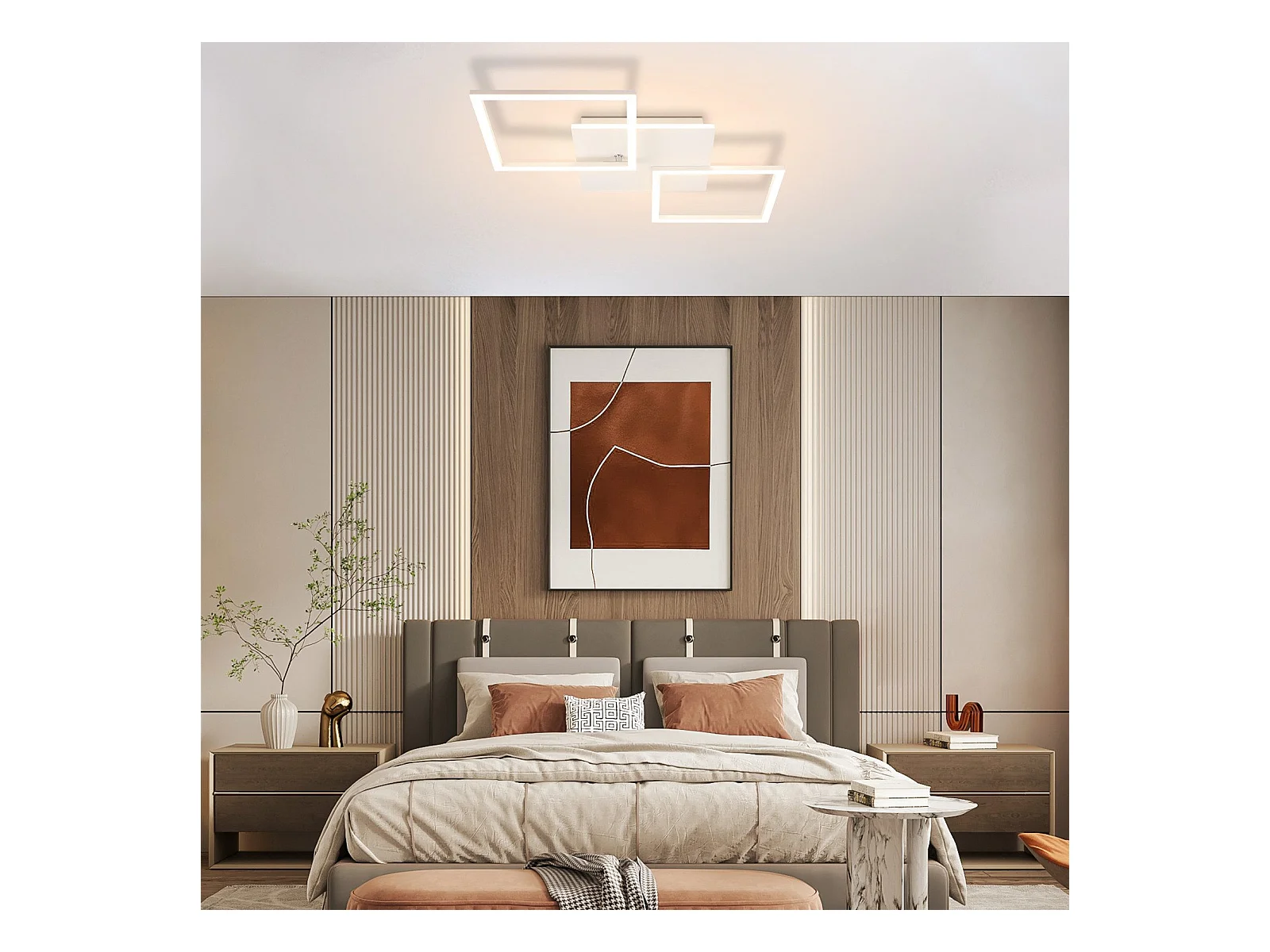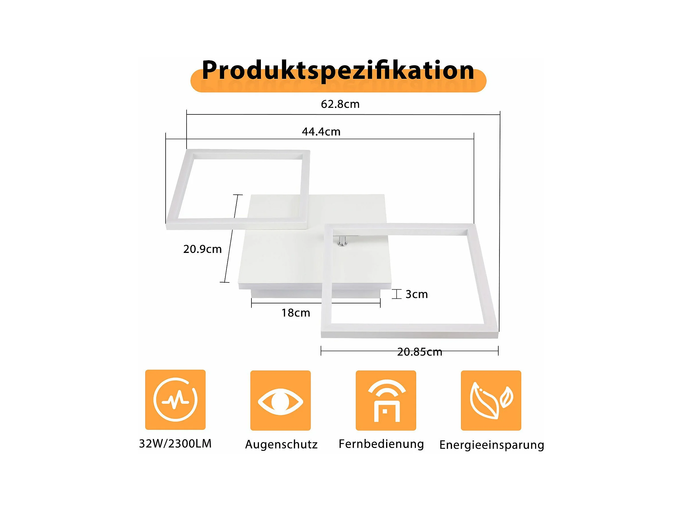 NETTLIFE Lampa sufitowa LED do salonu, biała, ściemnialna, kwadratowa, nowoczesna, 32 W, z pilotem