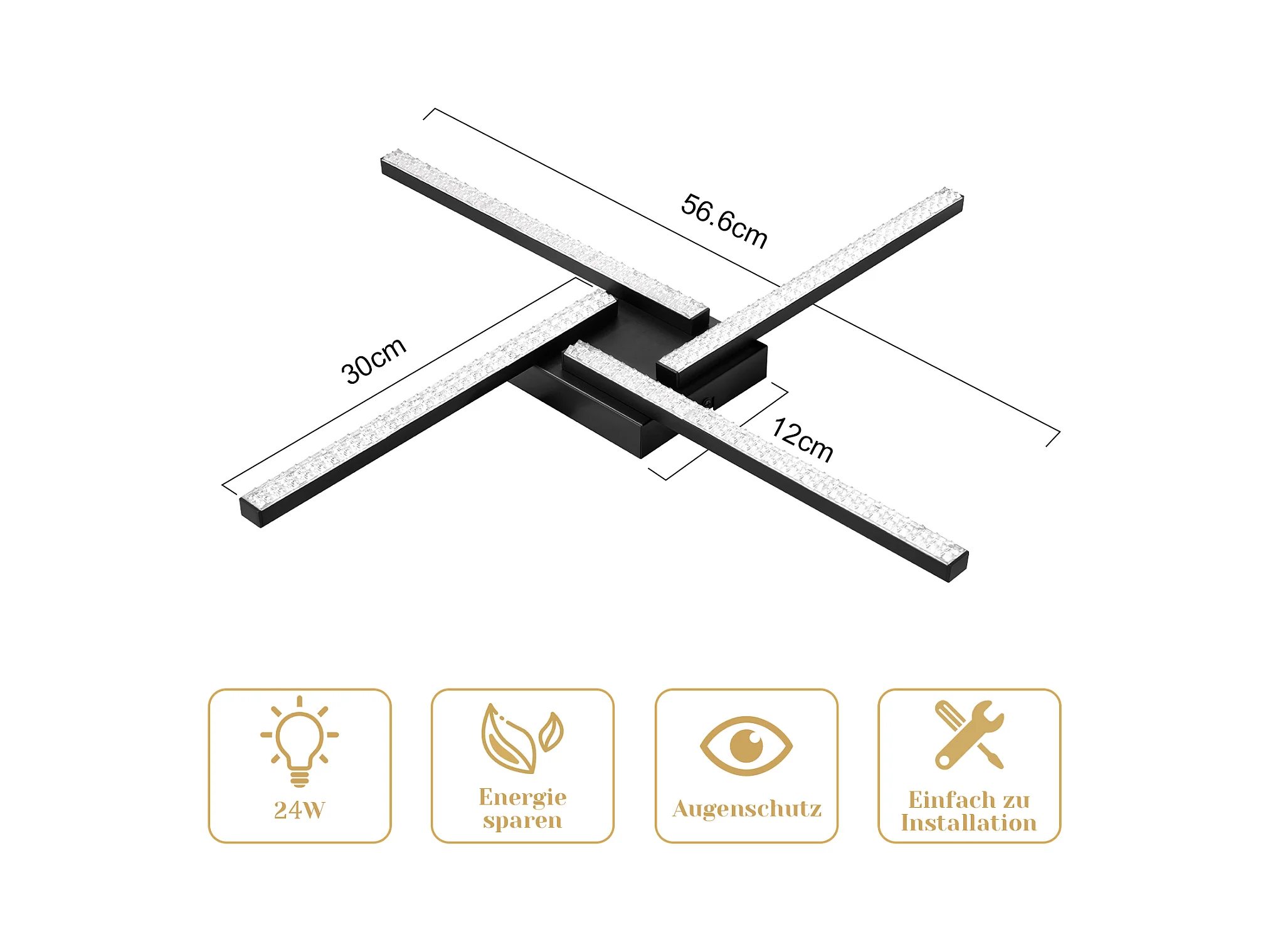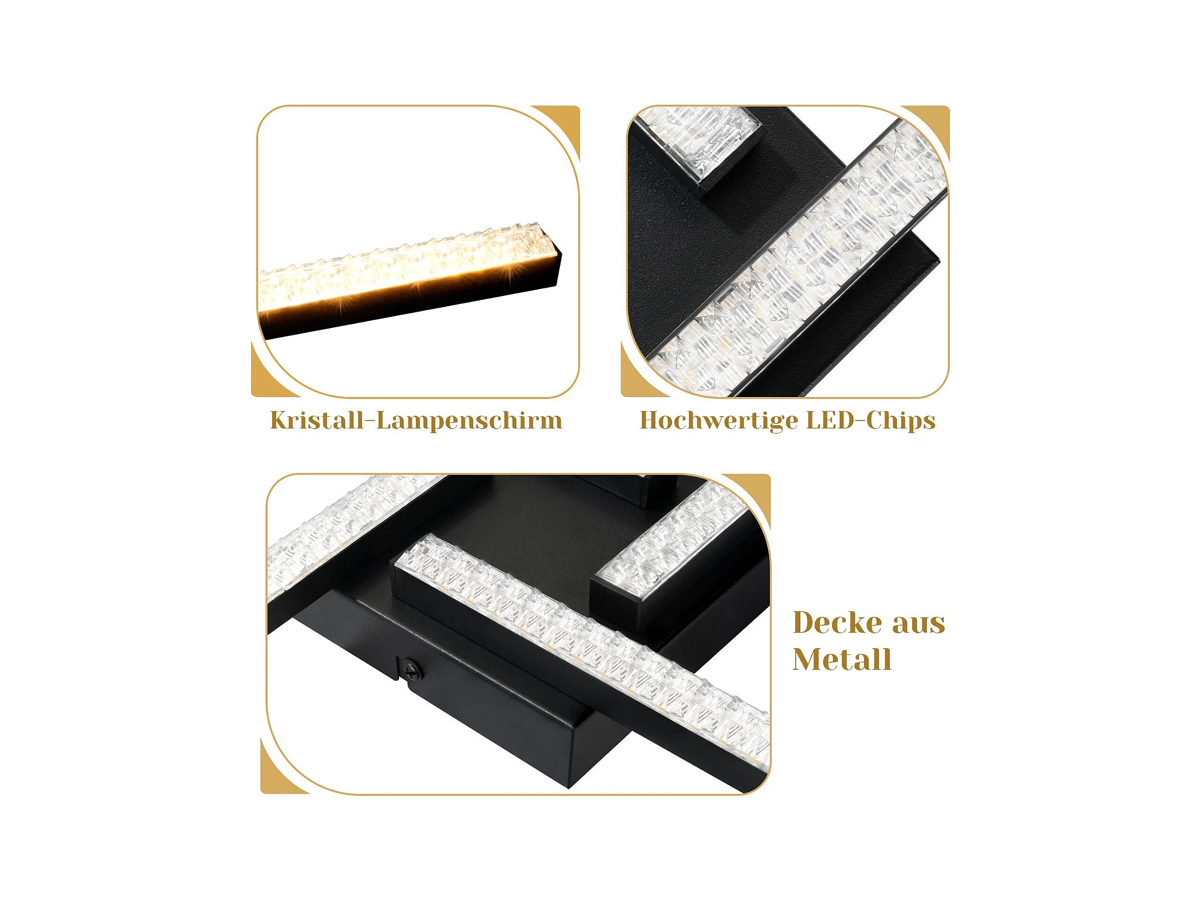 NETTLIFE Lampa sufitowa LED do salonu Czarna lampa sufitowa 20W Nowoczesny kryształowy metal 3000K