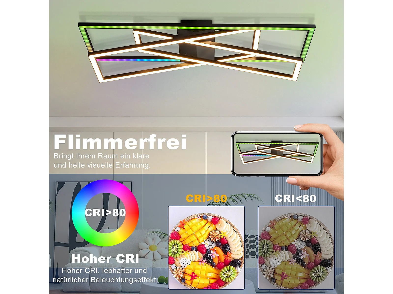 NETTLIFE Lampa sufitowa LED do salonu, czarna, prostokątna, ściemnialna, nowoczesny design