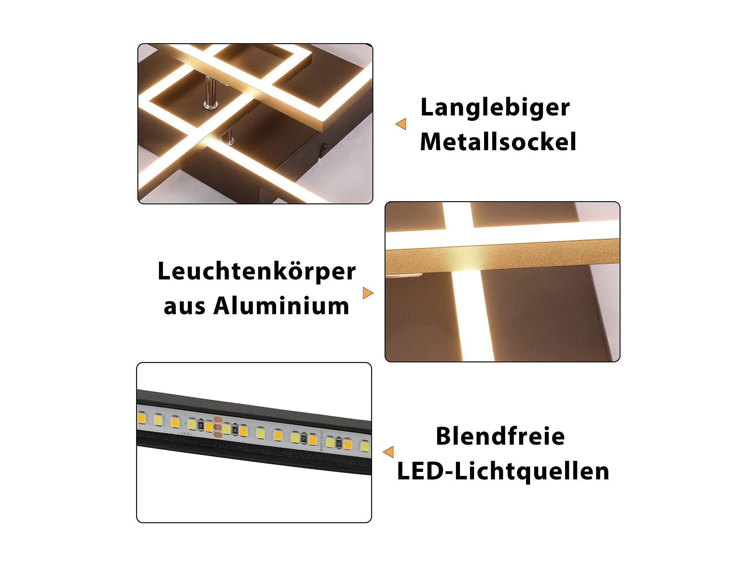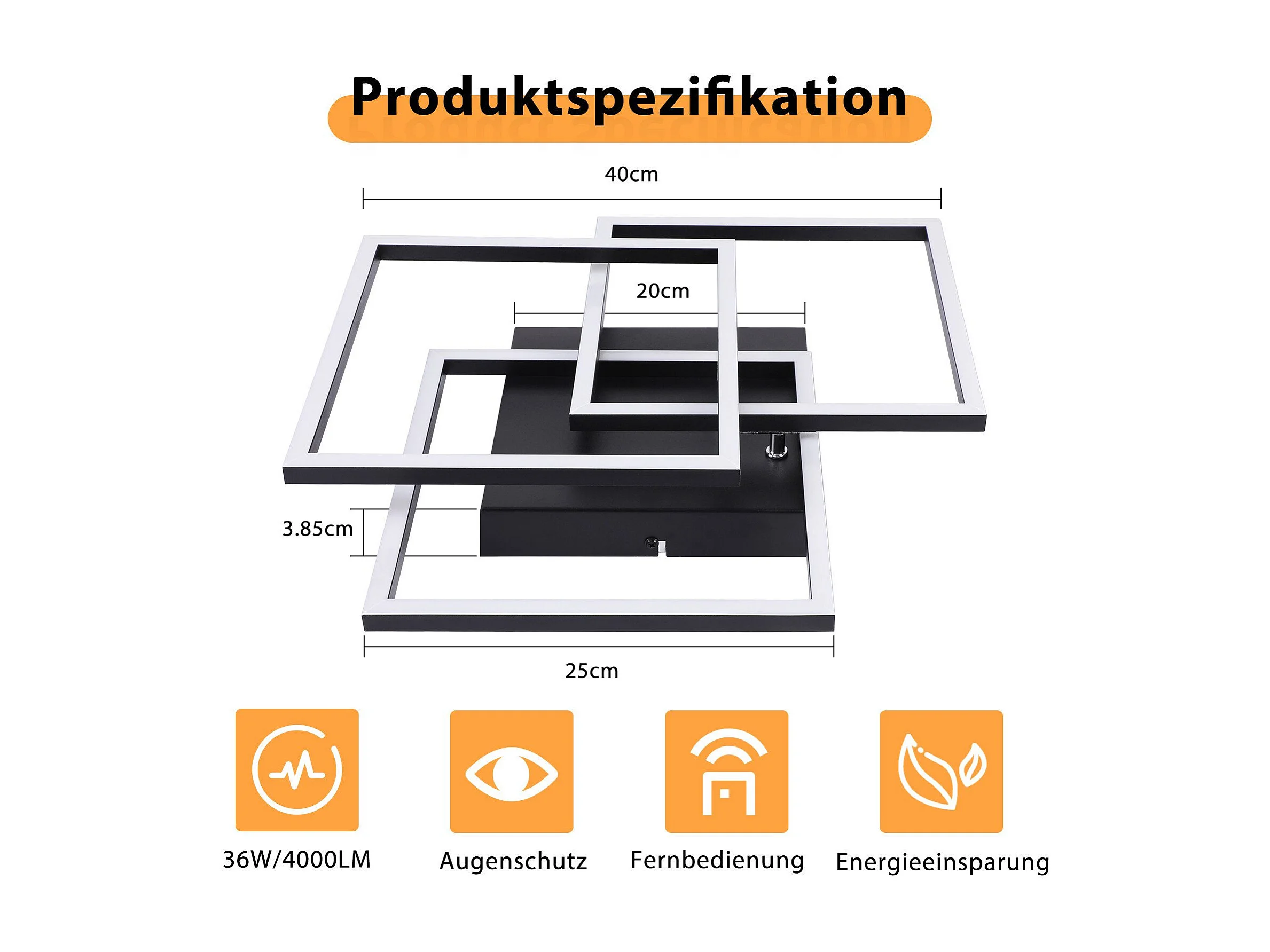 NETTLIFE Lampa sufitowa LED do salonu, czarna, ściemnialna, kwadratowa, nowoczesna, 36 W, z pilotem