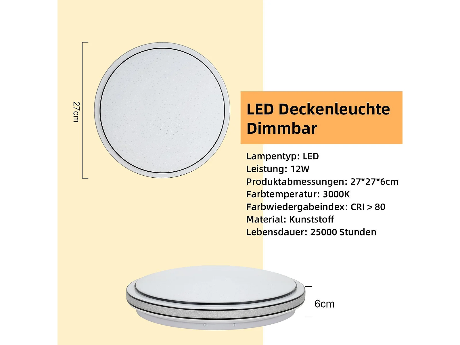 NETTLIFE Lampa sufitowa LED Sypialnia - średnica 27 cm Lampa Starry Sky 12W Ciepła biała lampa Nowoczesna okrągła lampa do salonu do przedpokoju w kuchni