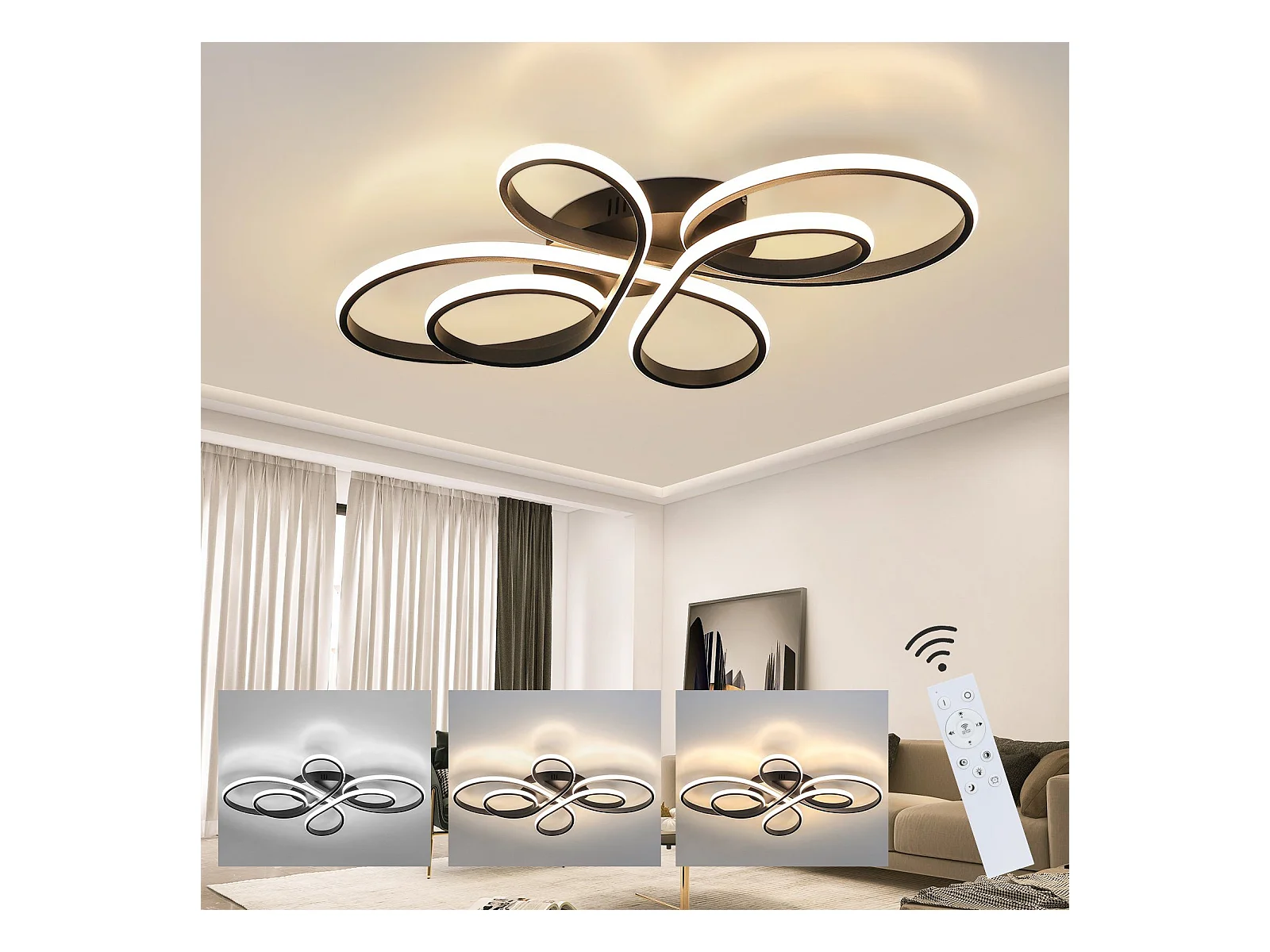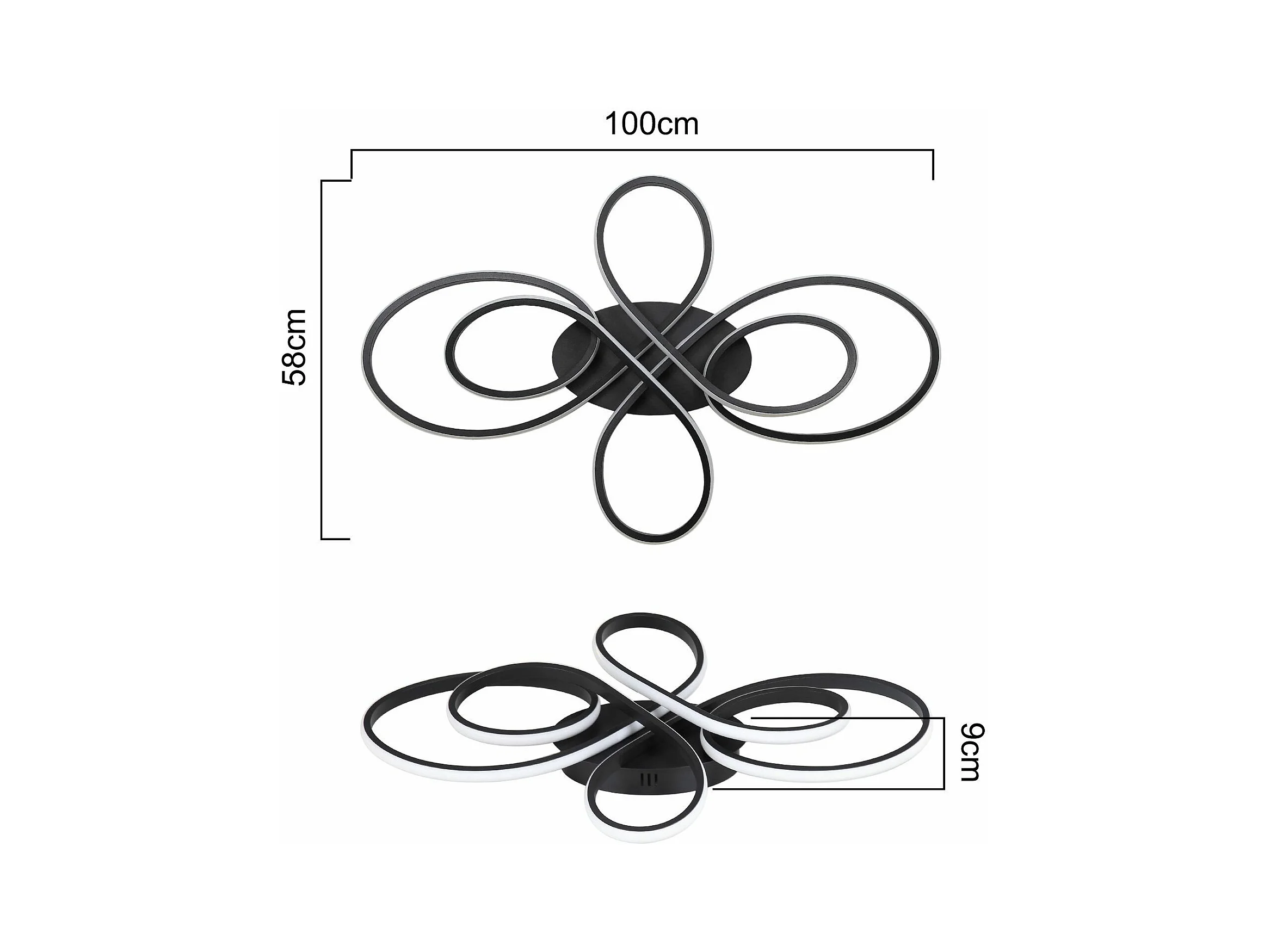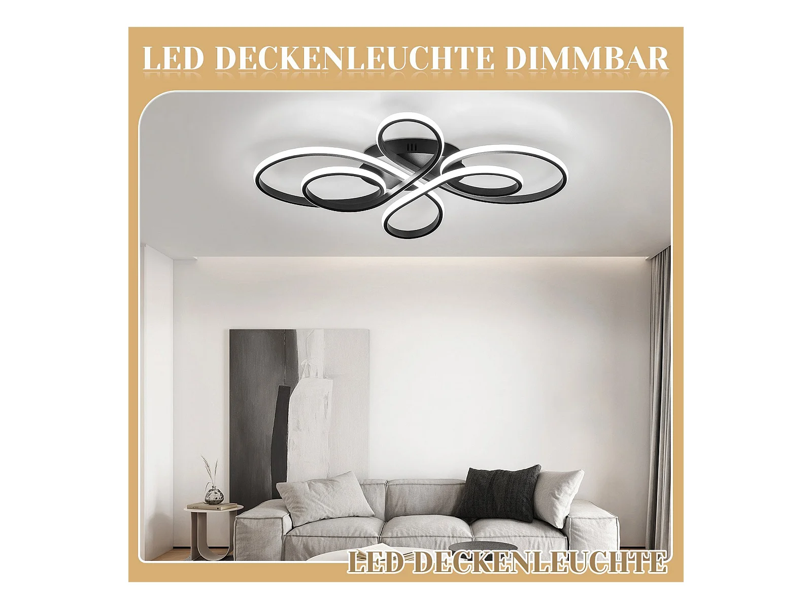 NETTLIFE Lampa sufitowa LED z możliwością przyciemniania, duża, 100 cm, salon, 90 W, nowoczesna, czarna, z pilotem