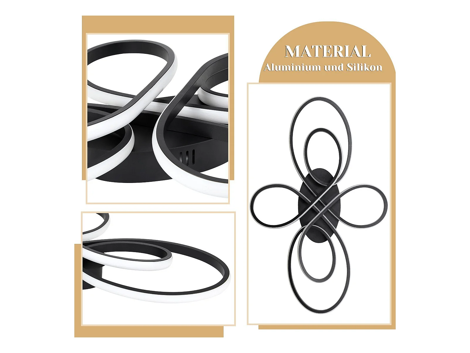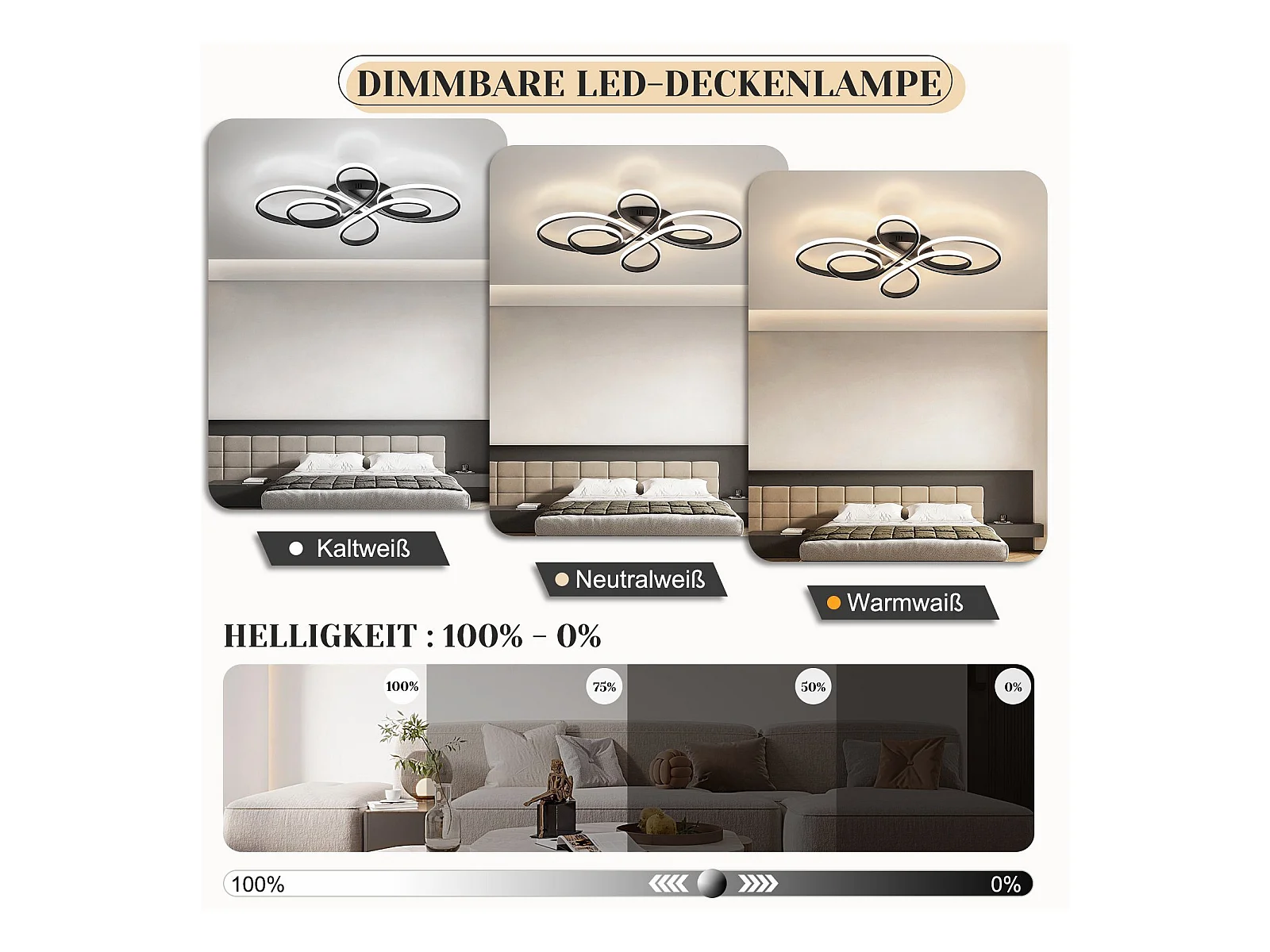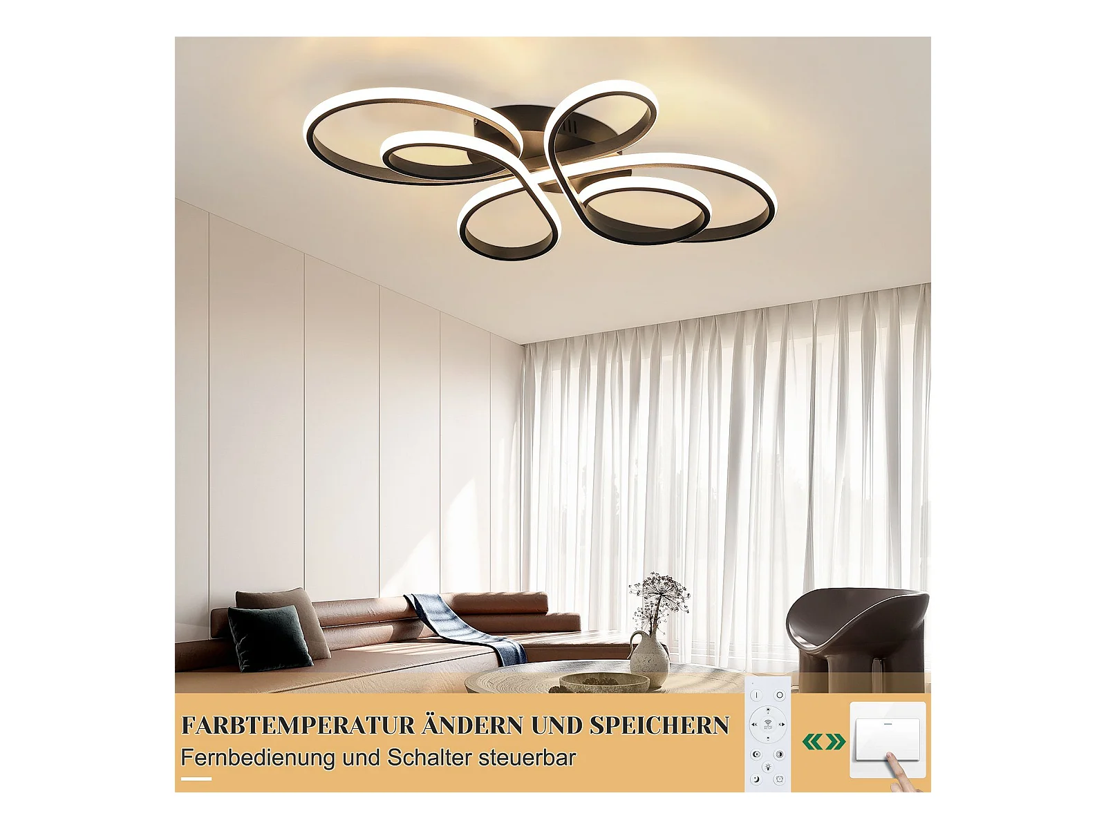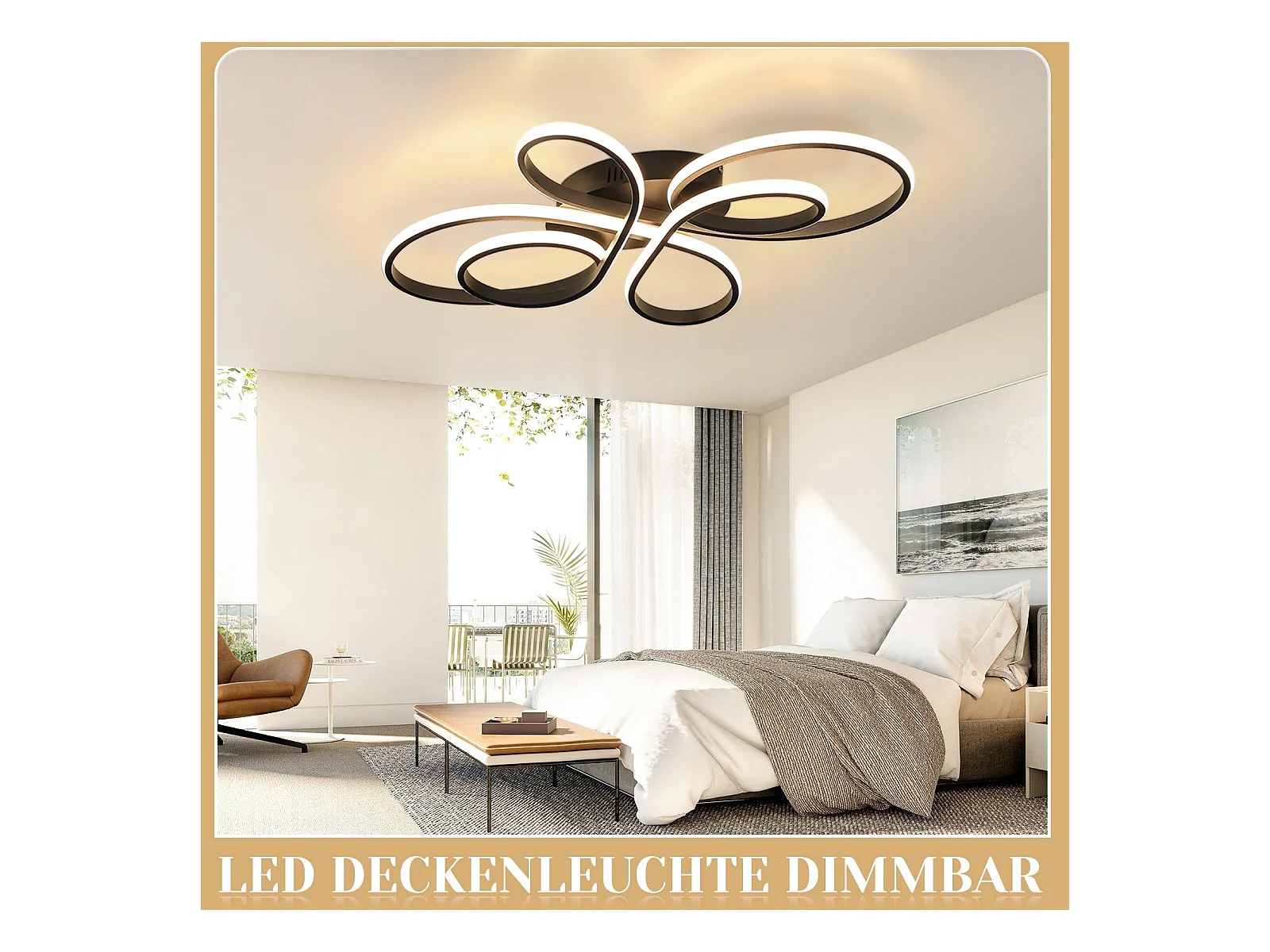 NETTLIFE Lampa sufitowa LED z możliwością przyciemniania, duża, 100 cm, salon, 90 W, nowoczesna, czarna, z pilotem