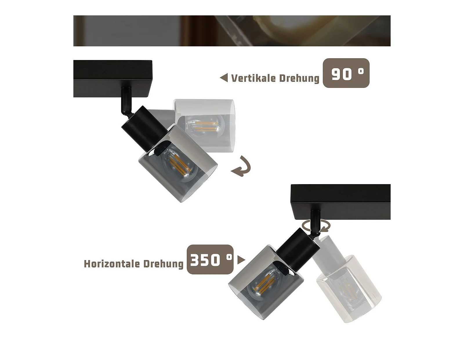 Lampa sufitowa NETTLIFE 2 żarówki E27 maks. 25W Vintage 2 żarówki - 330° obrotowy reflektor wewnętrzny w czarnym metalu do salonu bez żarówki