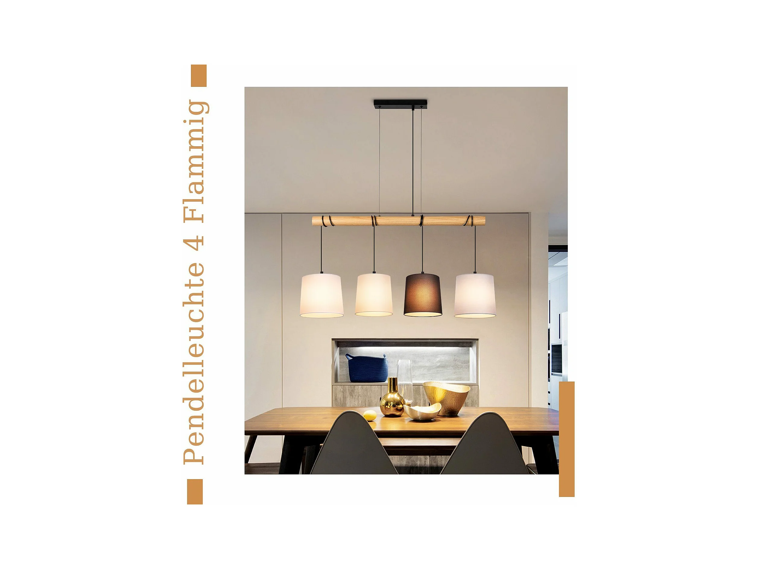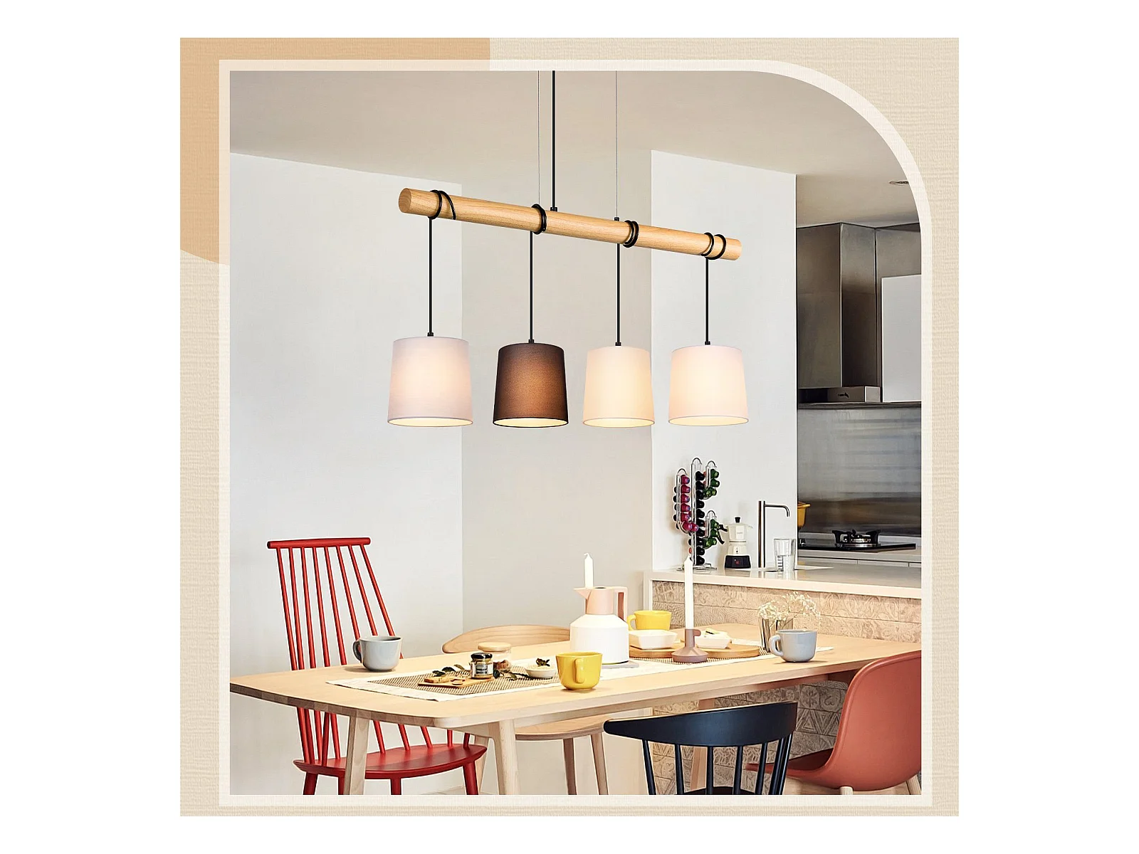 NETTLIFE Lampa wisząca 4 E27 Vintage żarówki średnica 80cm wielokolorowe drewno z abażurem z tkaniny do jadalni salon biuro