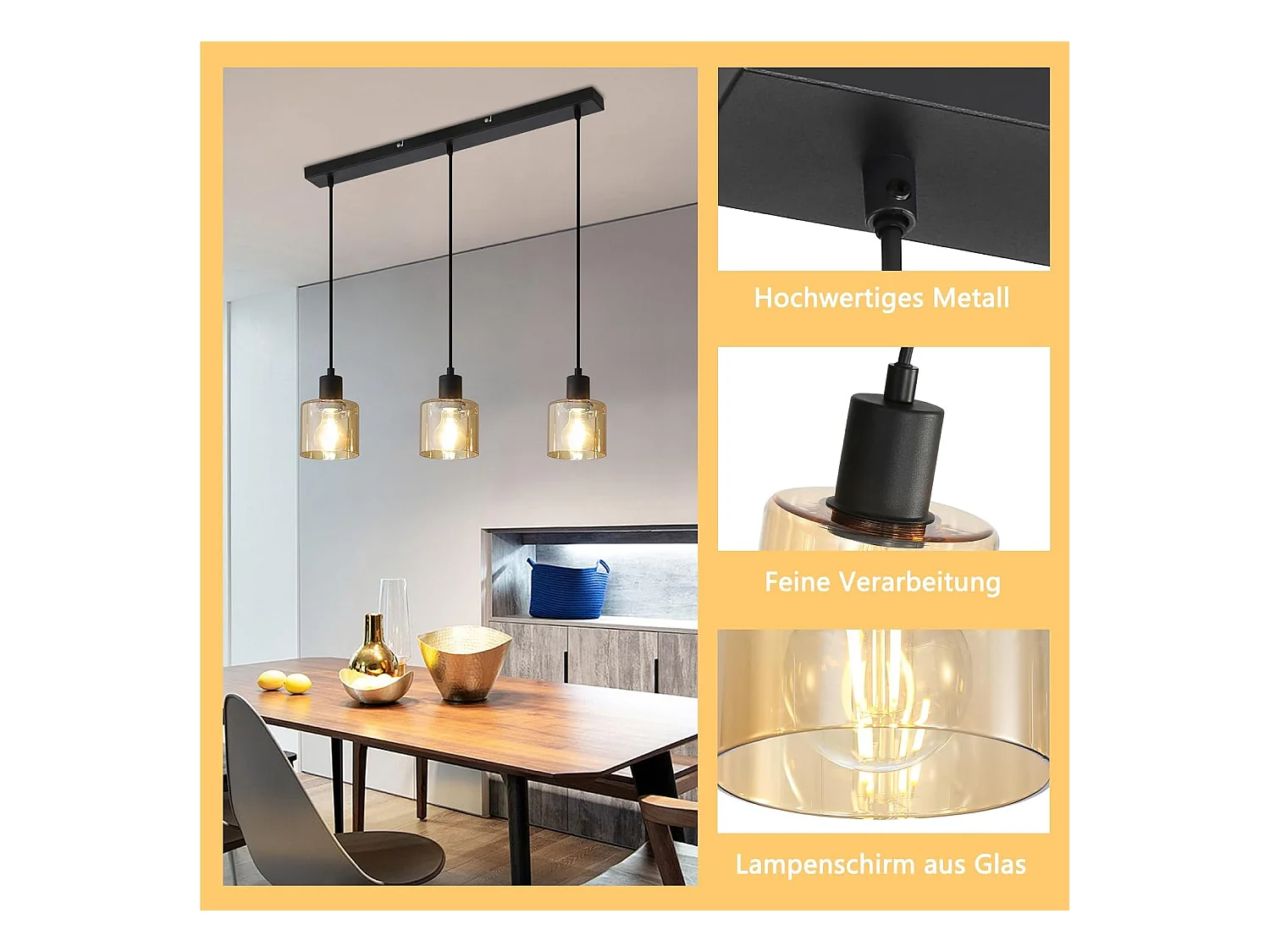 NETTLIFE Lampa wisząca do jadalni Vintage lampa wisząca 3 żarówki wisząca lampa stołowa E27 Black Metal Retro Industrial
