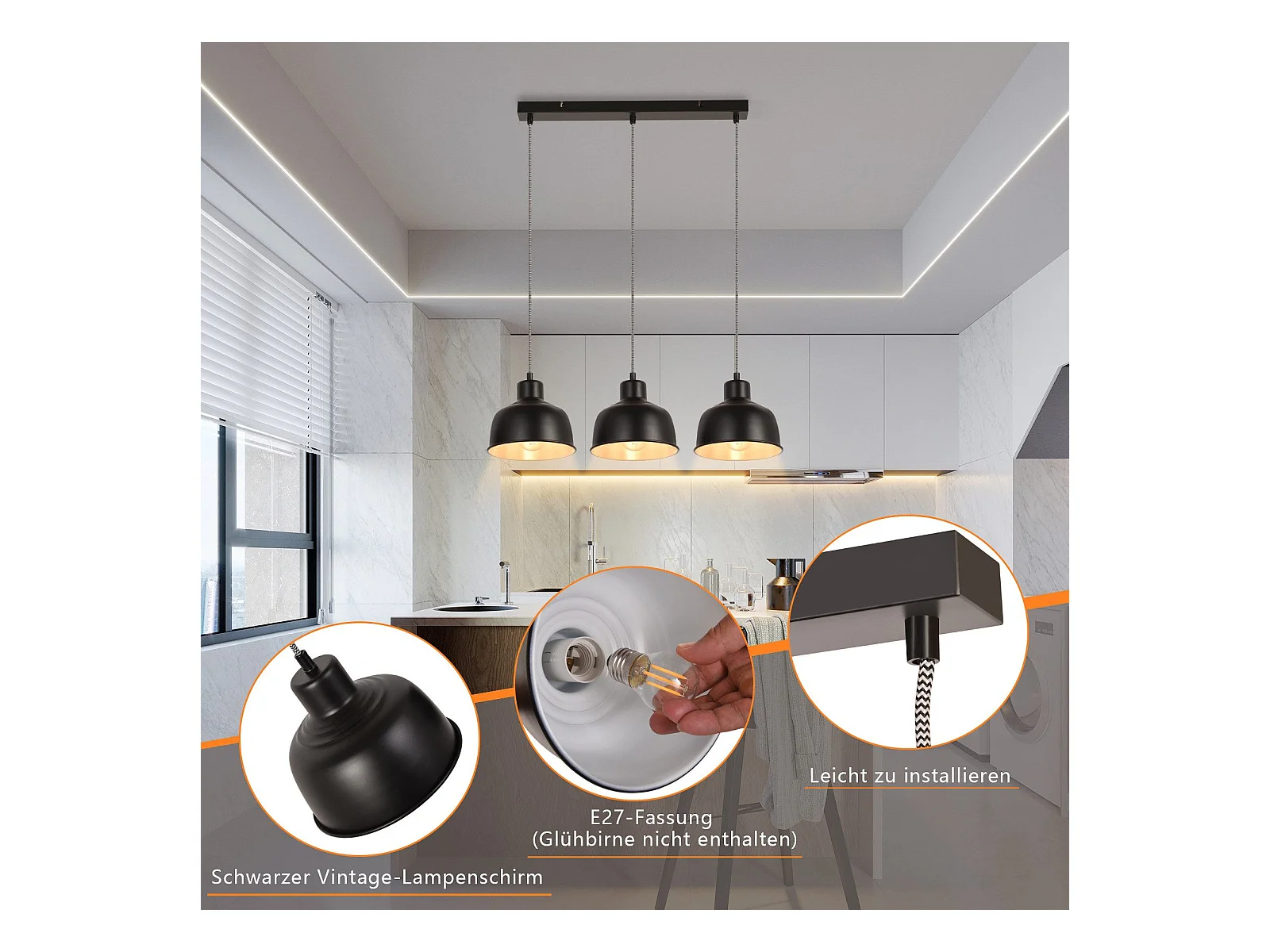 NETTLIFE Lampa wisząca w stylu vintage 3 płomienie Retro przemysłowa czarna lampa stołowa E27