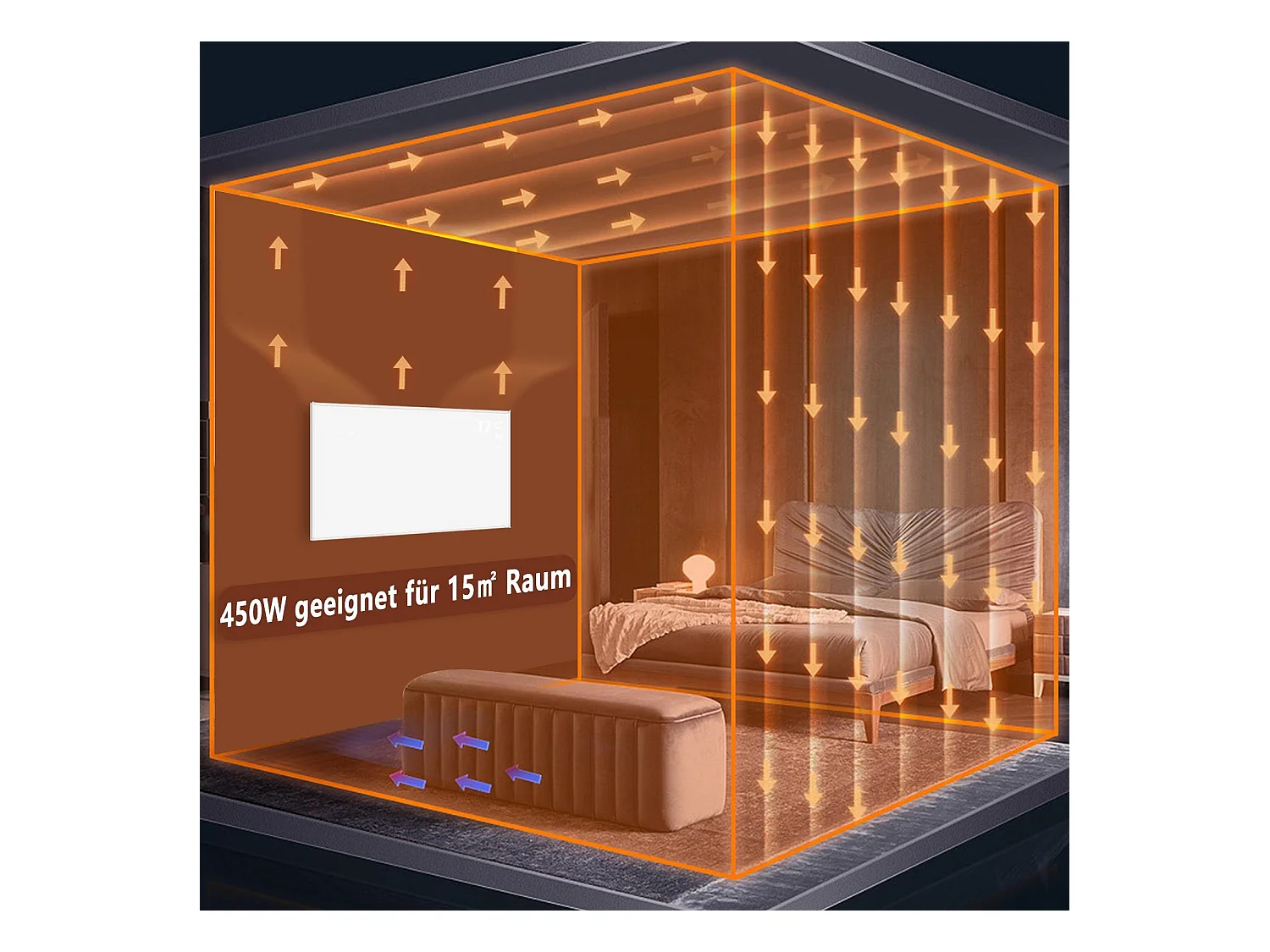 NETTLIFE Ścienny promiennik podczerwieni, Oszczędzanie ścian na podczerwień - Elektryczny grzejnik ścienny 290 W z zabezpieczeniem przed przegrzaniem