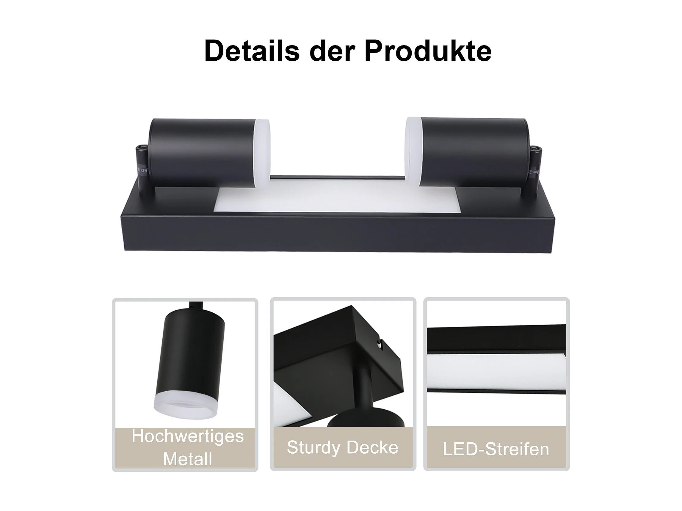 NETTLIFE Czarny reflektor sufitowy GU10-2 355° obrotowa lampa kuchenna z płomieniem nowoczesny industrialny