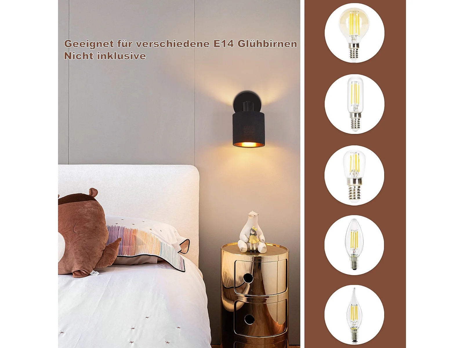 NETTLIFE zestaw 2 kinkietów LED do wnętrza sypialni kinkiet salon lampka nocna łóżko z tkaniny z elastycznym ramieniem do czytania E27