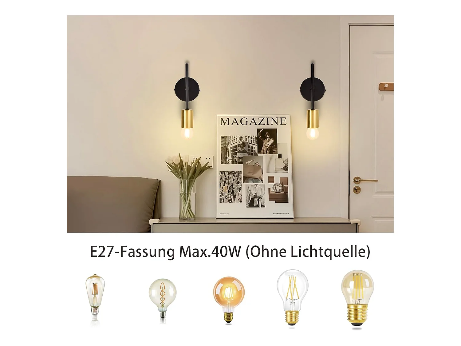NETTLIFE 2 x Czarna lampa ścienna do wnętrz - Reflektor ścienny w stylu vintage, sypialnia, lampa ścienna w stylu retro, GU10, bez żarówki