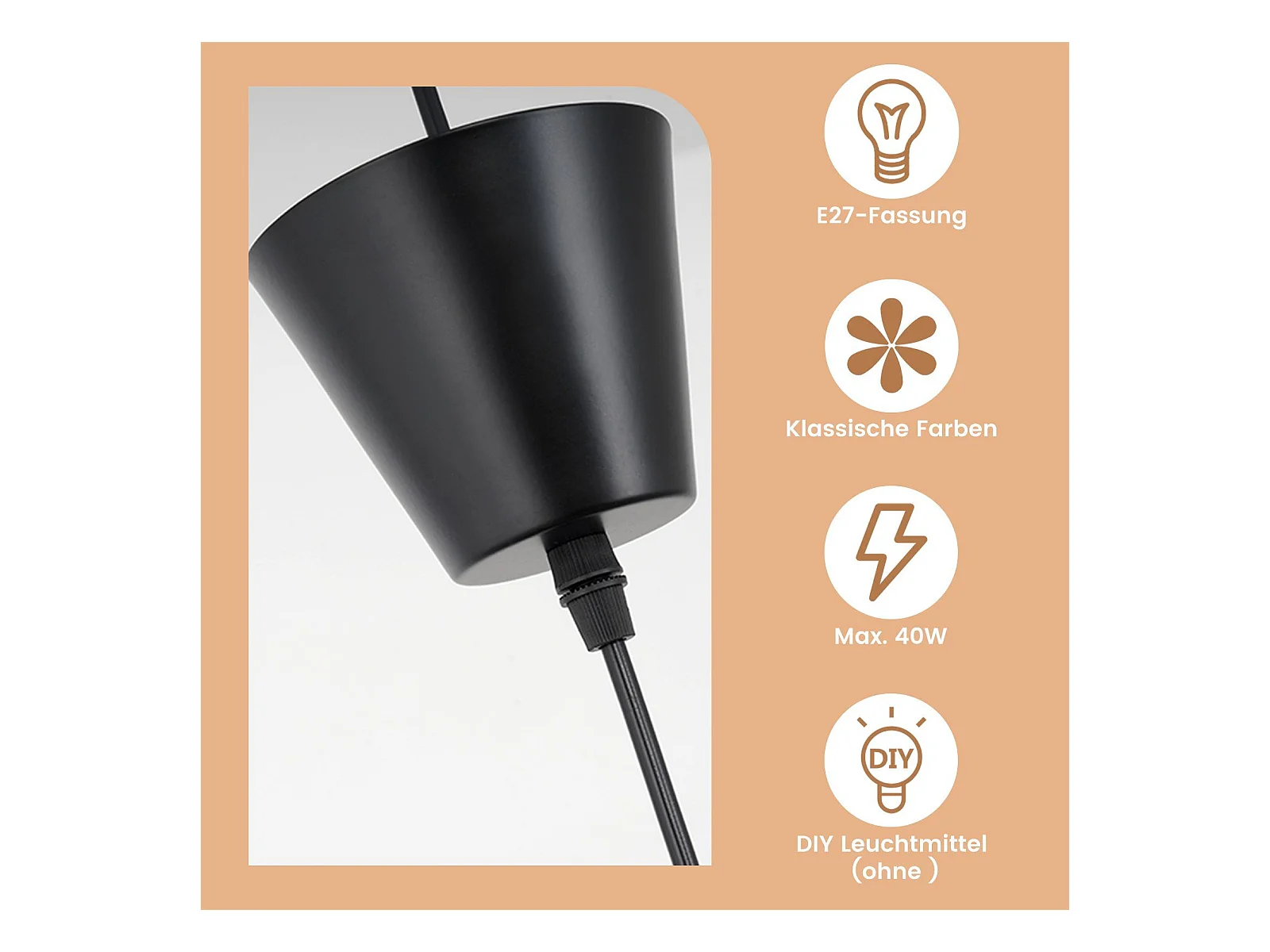 NETTLIFE Zawieszenie E27 Czarny nowoczesny wzór kapelusza Średnica 140 cm Poliwęglan Maks. 40 W do salonu, jadalni, kuchni, bez żarówki