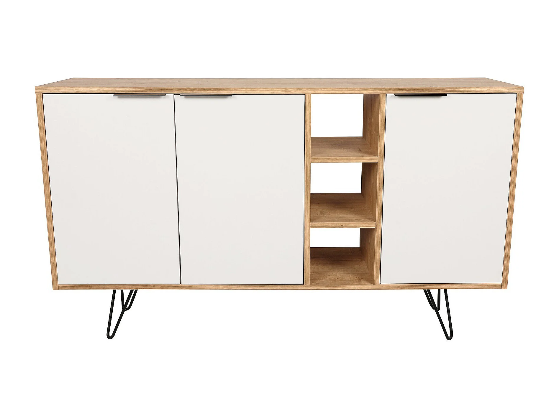 Nowoczesna komoda – 142 cm – Dąb i biel – Melamina