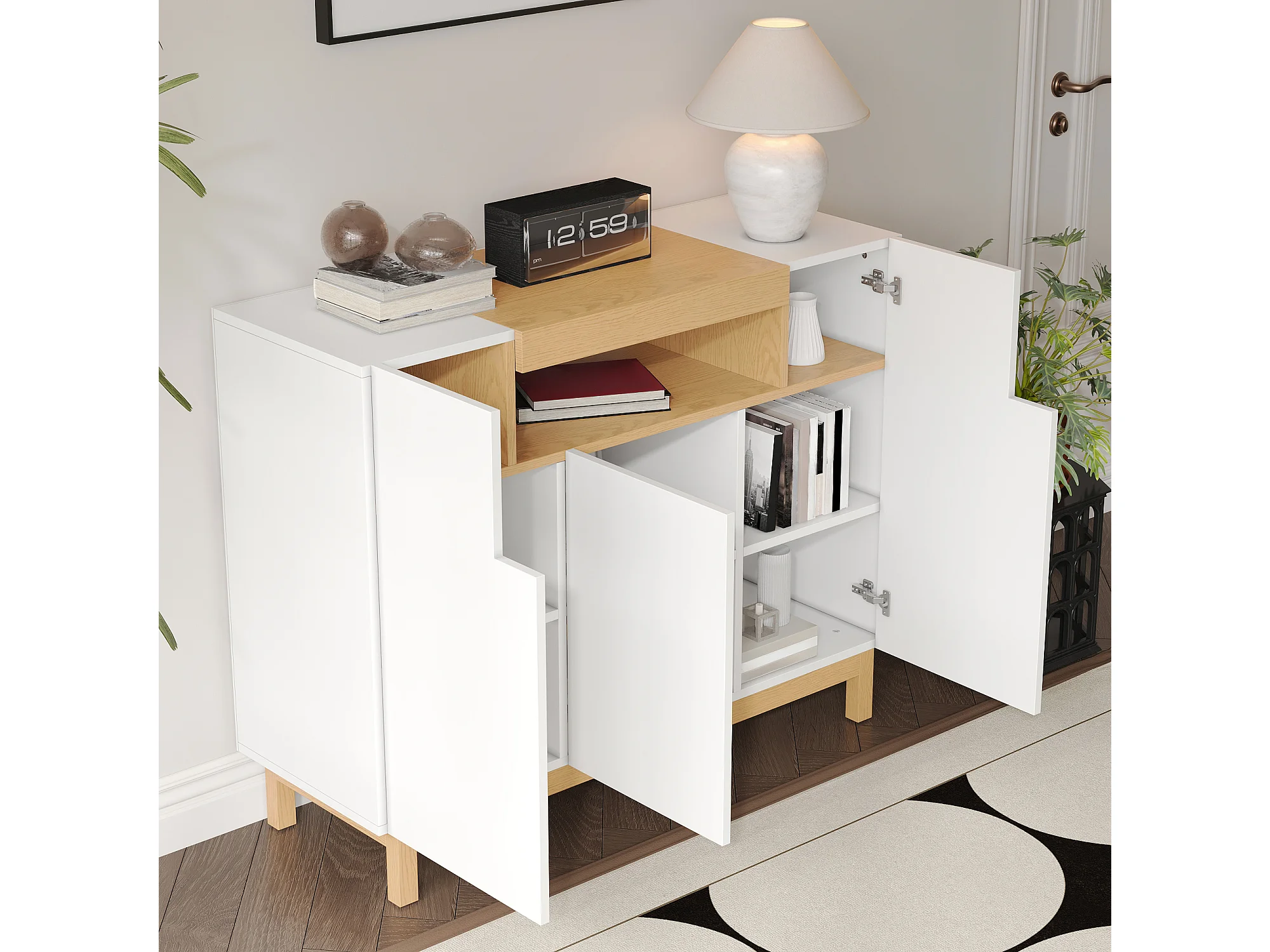 Nowoczesna komoda do salonu - 120,5 x 42 x 96 cm - z 3 drzwiami + półki - płyta wiórowa - biała