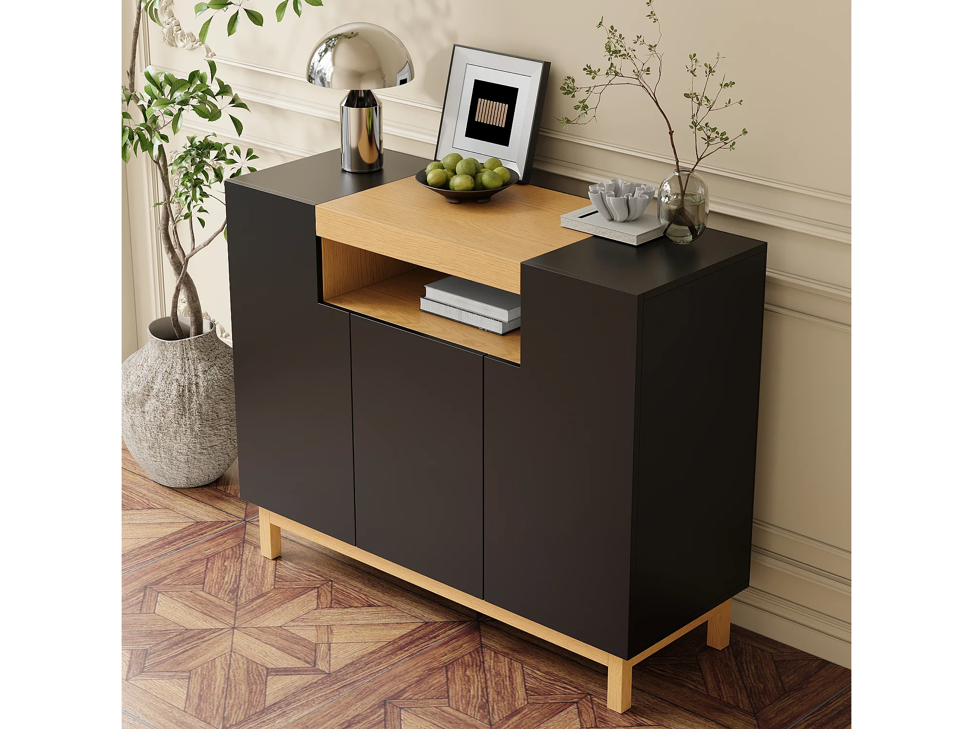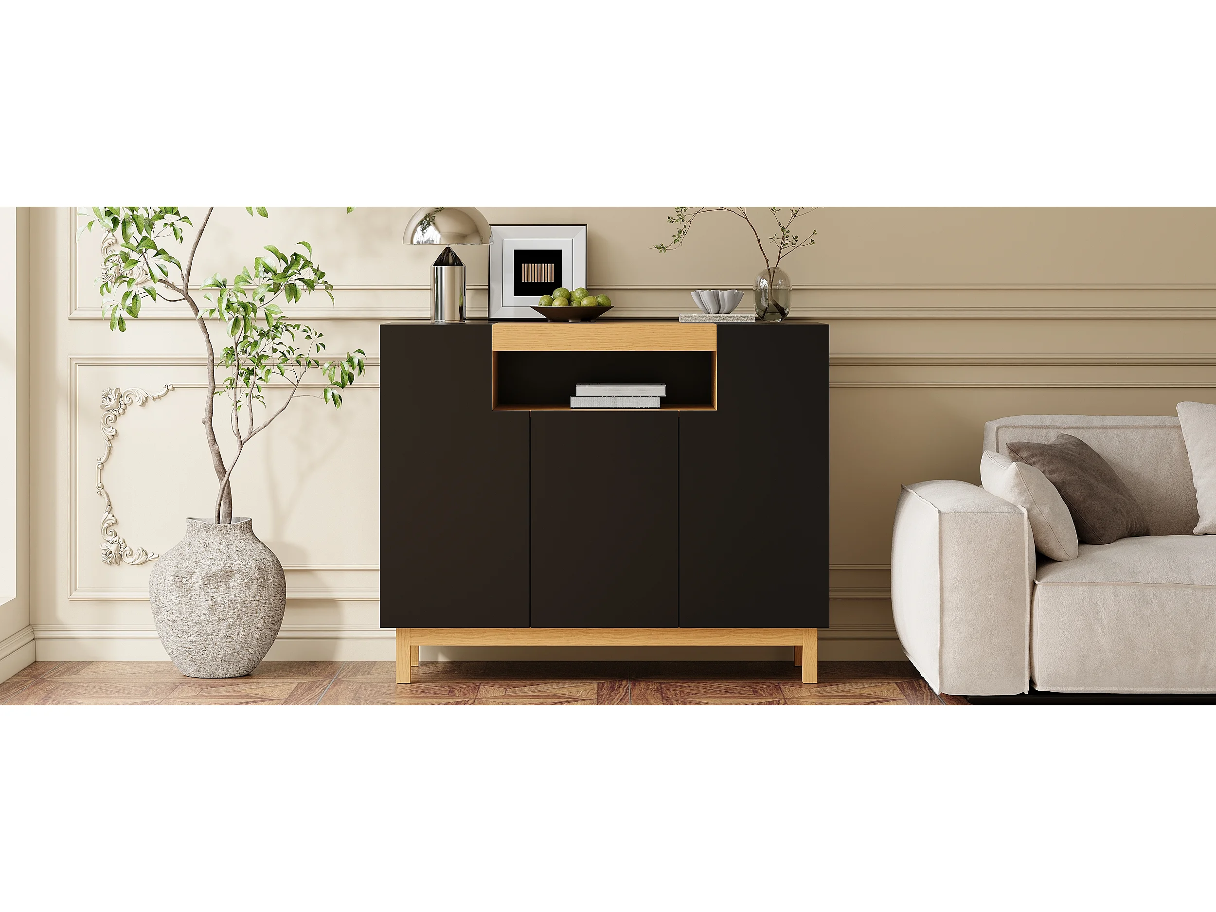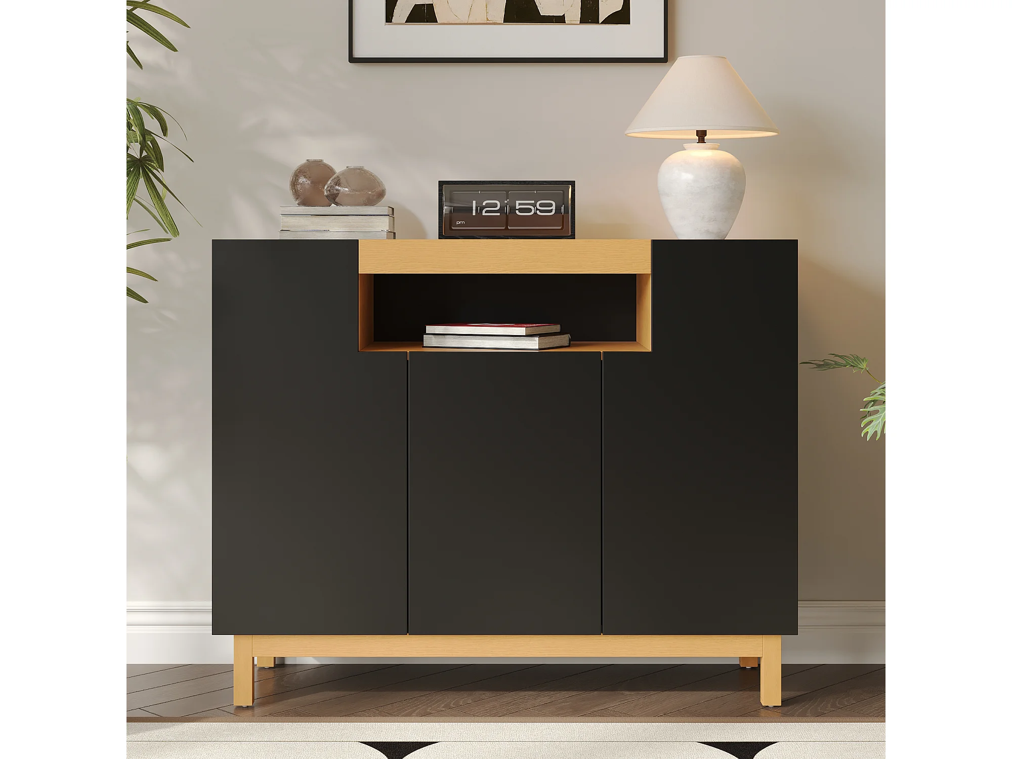 Kredens 120,5x42x96 cm - z 3 drzwiami - otwarte półki - płyta wiórowa - czarny