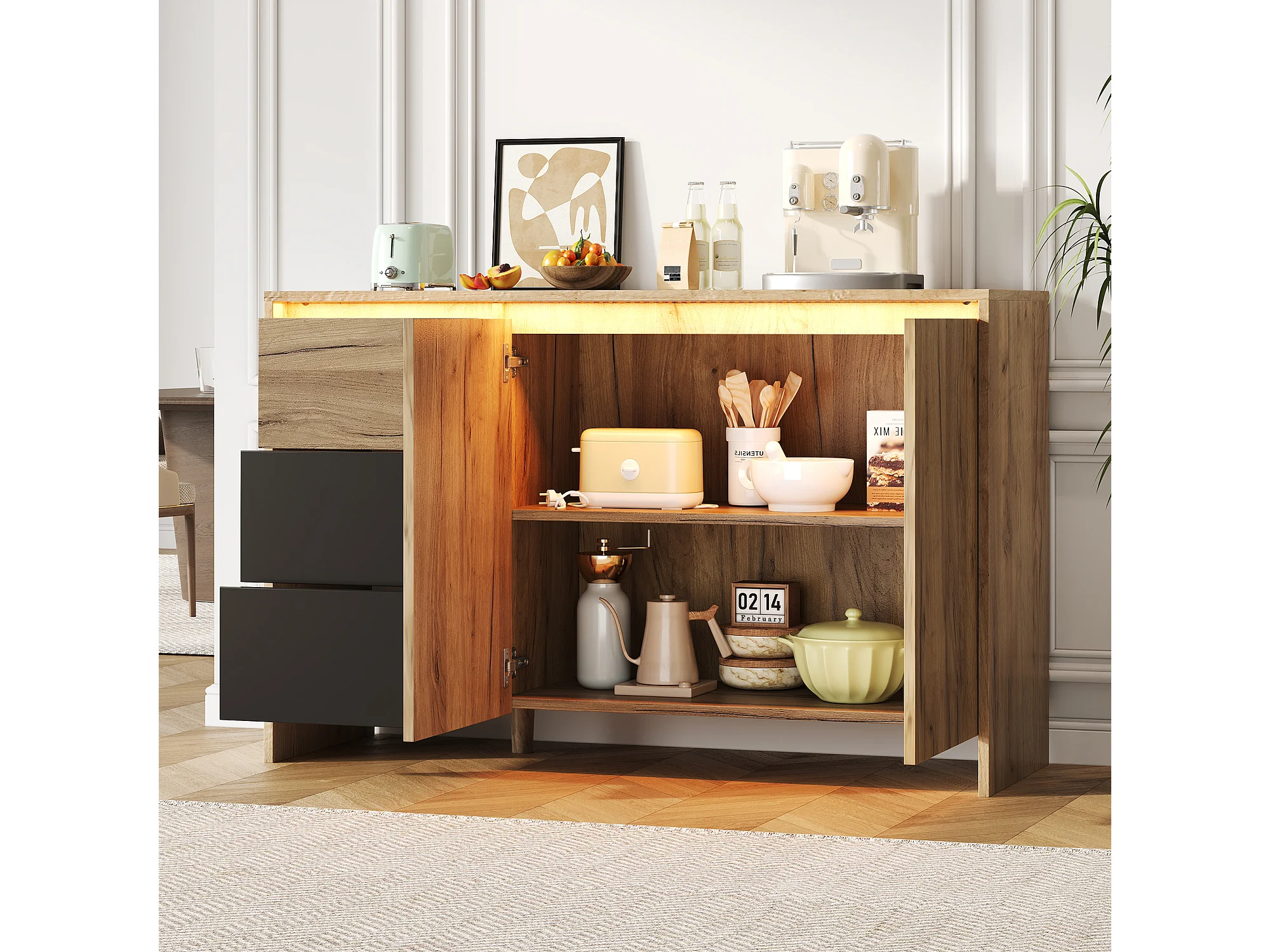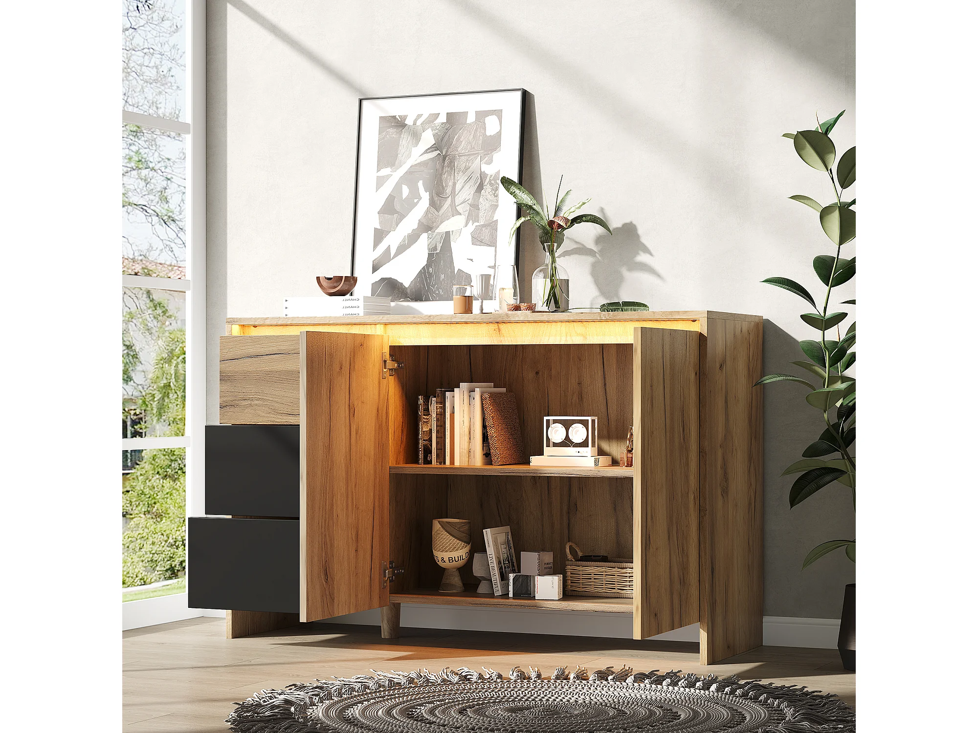 Nowoczesna komoda do salonu - 120 x 40 x 76 cm - 3 szuflady + 2 drzwi + diody LED - płyta wiórowa - kolor naturalny