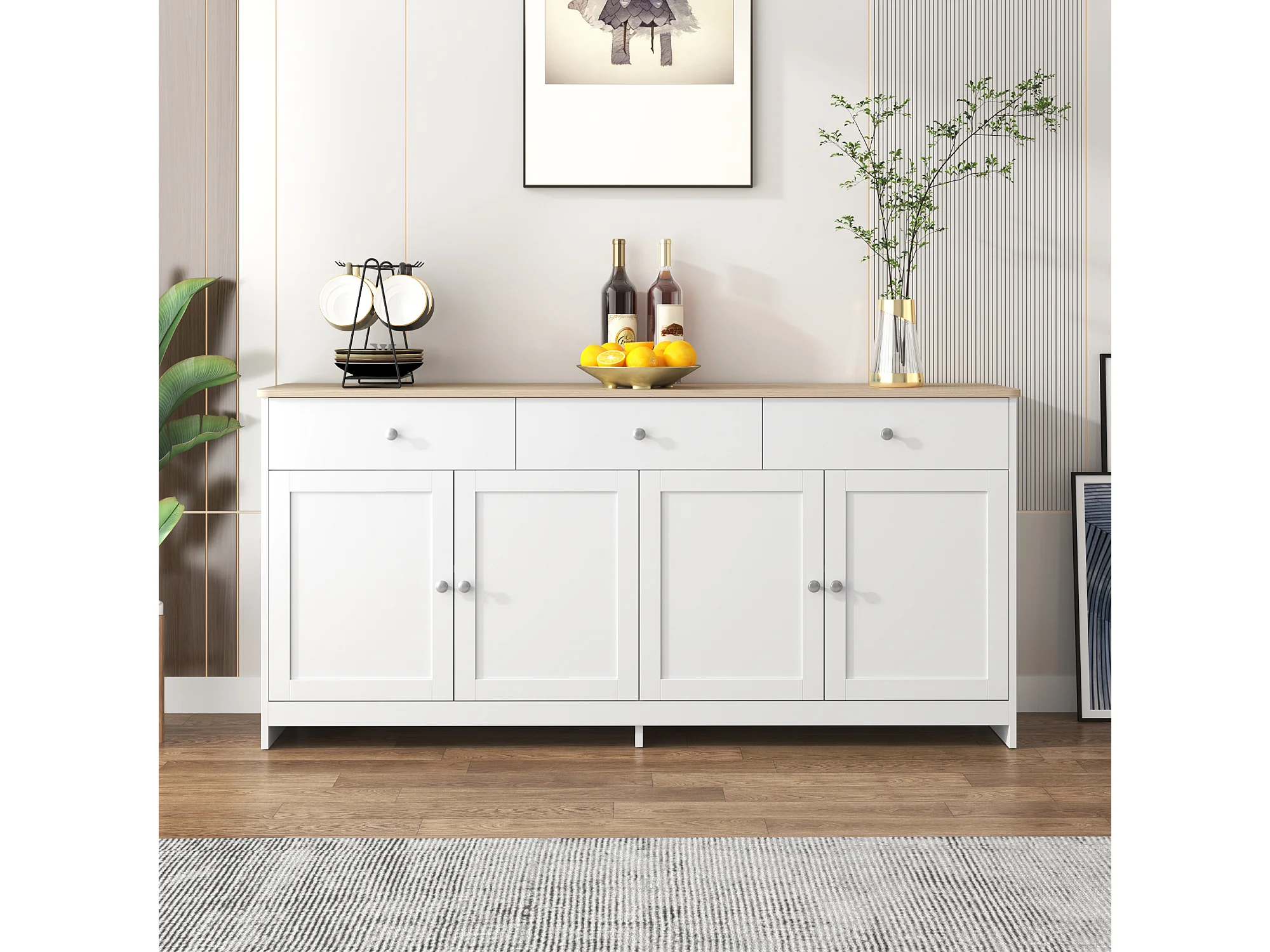 Nowoczesna komoda z drewna do salonu - 160 x 37 x 75 cm - z 4 drzwiami + 3 szufladami - MDF - biała