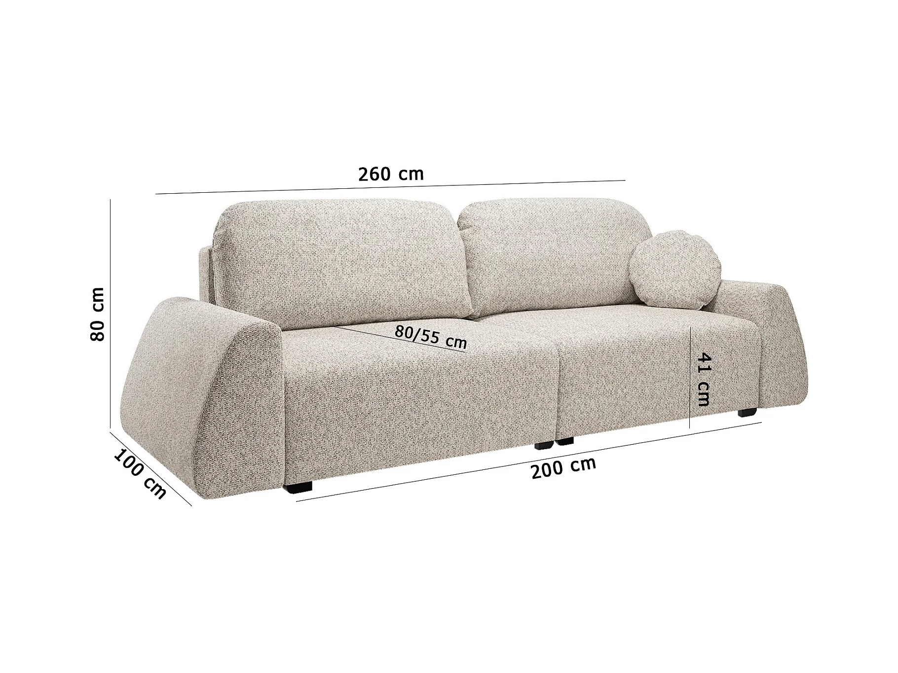 Nowoczesna rozkładana sofa ALMI z funkcją spania - 3-osobowa z funkcją spania, mechanizm DL, 2 poduszki oparciowe, 260x100x80 cm Szary