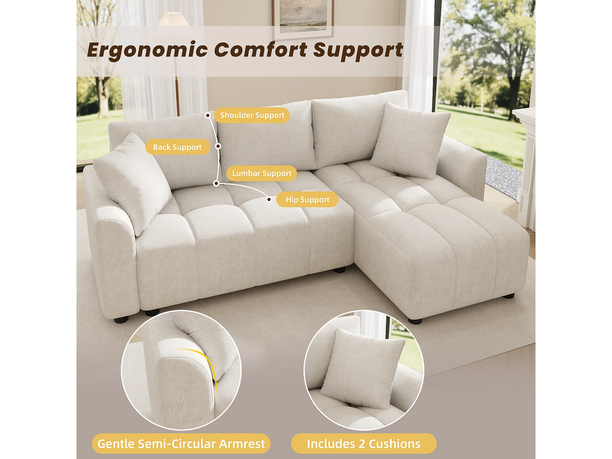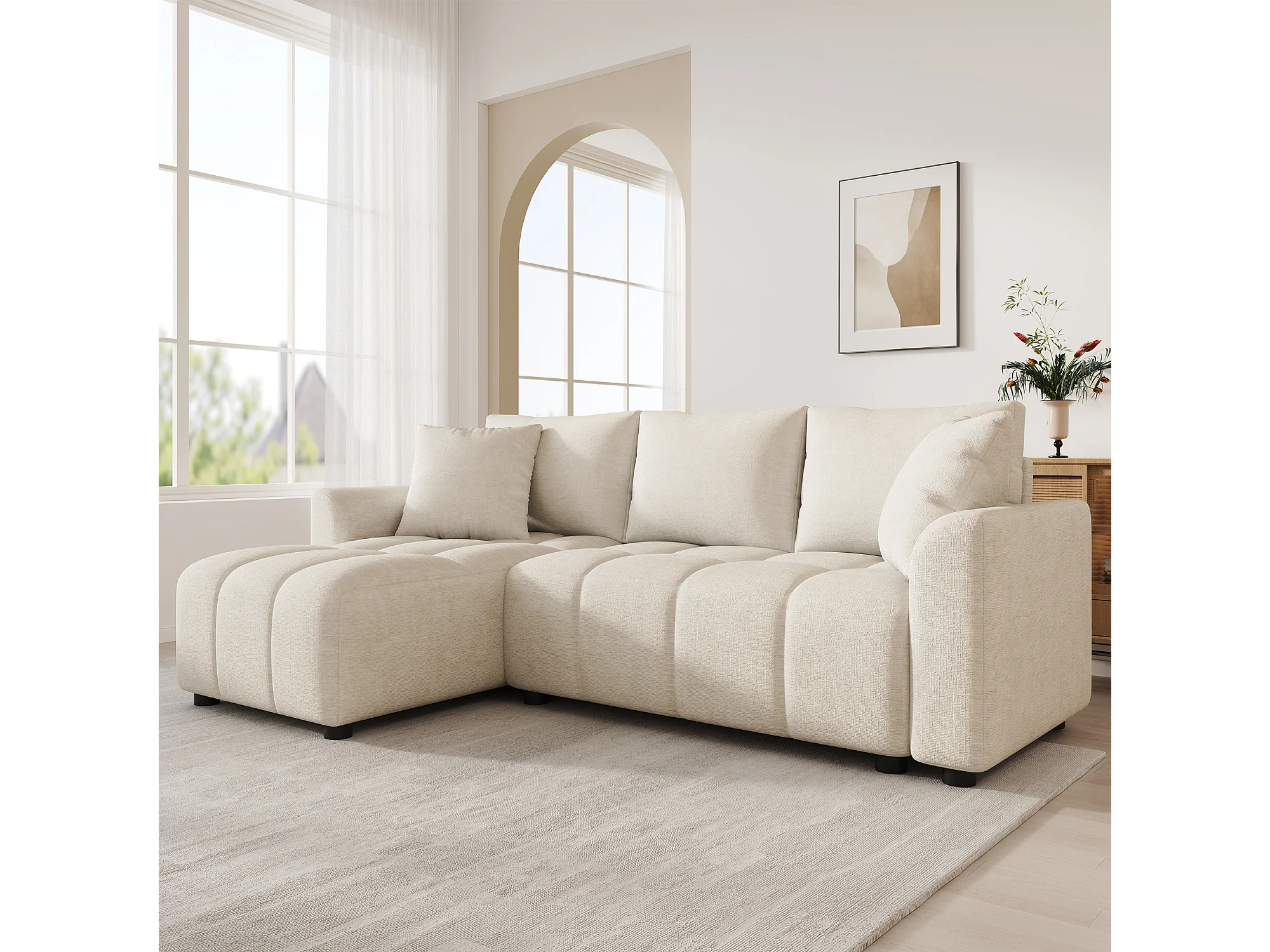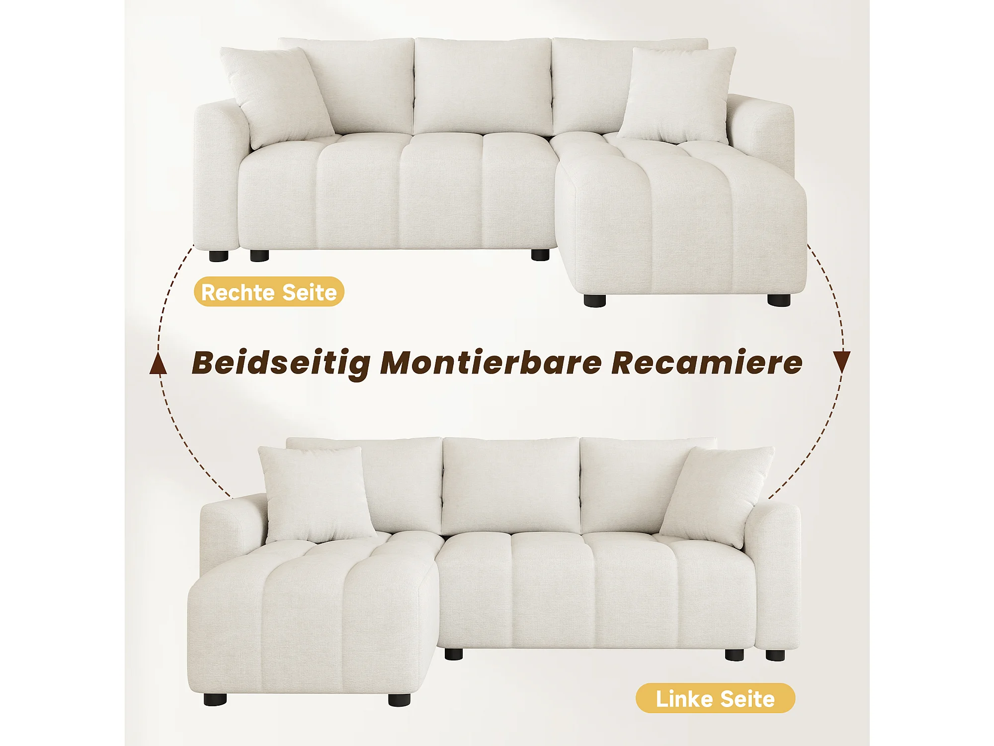Nowoczesna sofa narożna 3-osobowa - 204 x 127 x 82,5 cm - z 2 poduszkami dekoracyjnymi - do salonu i sypialni - tkanina szenilowa - beżowa