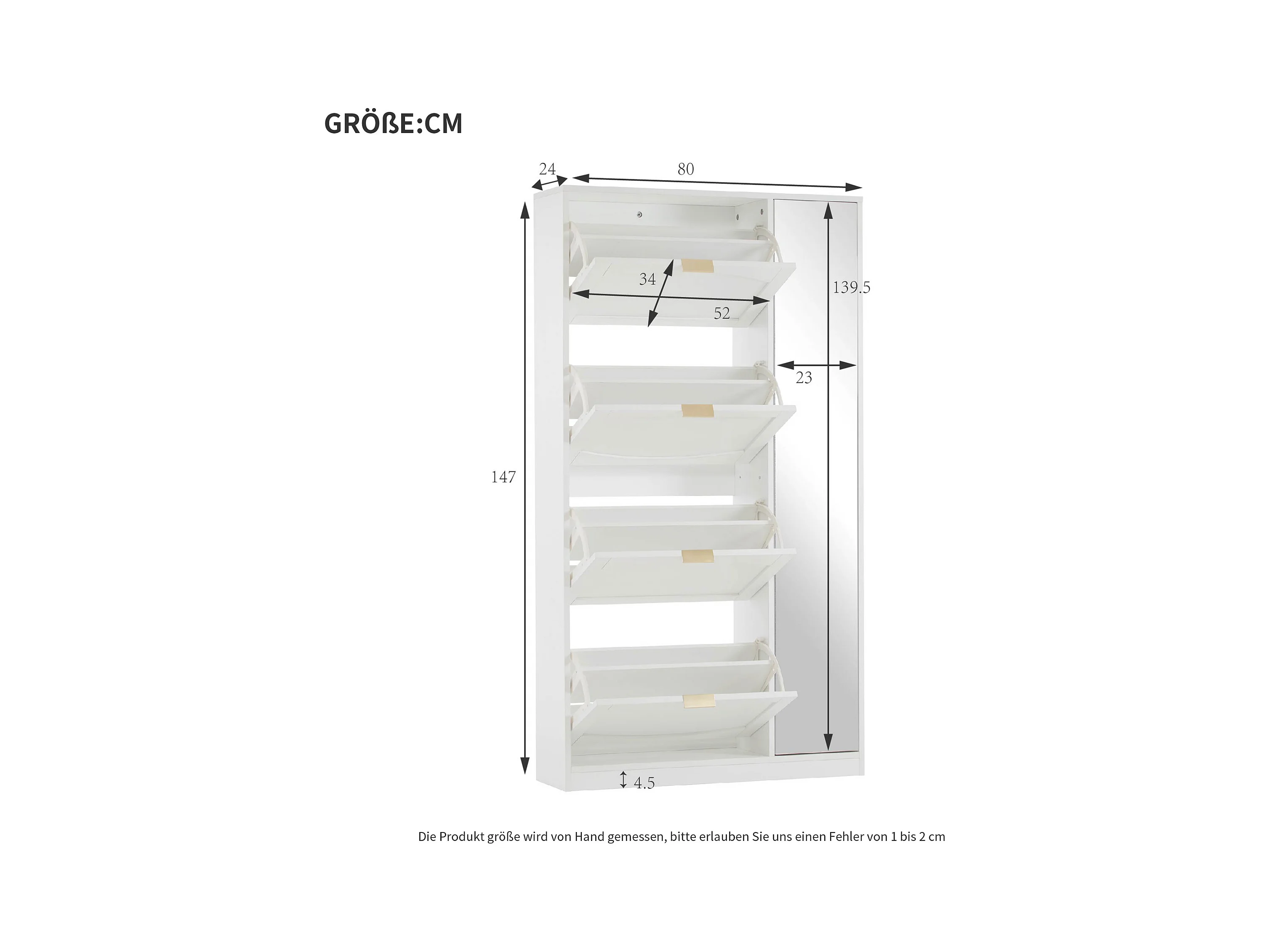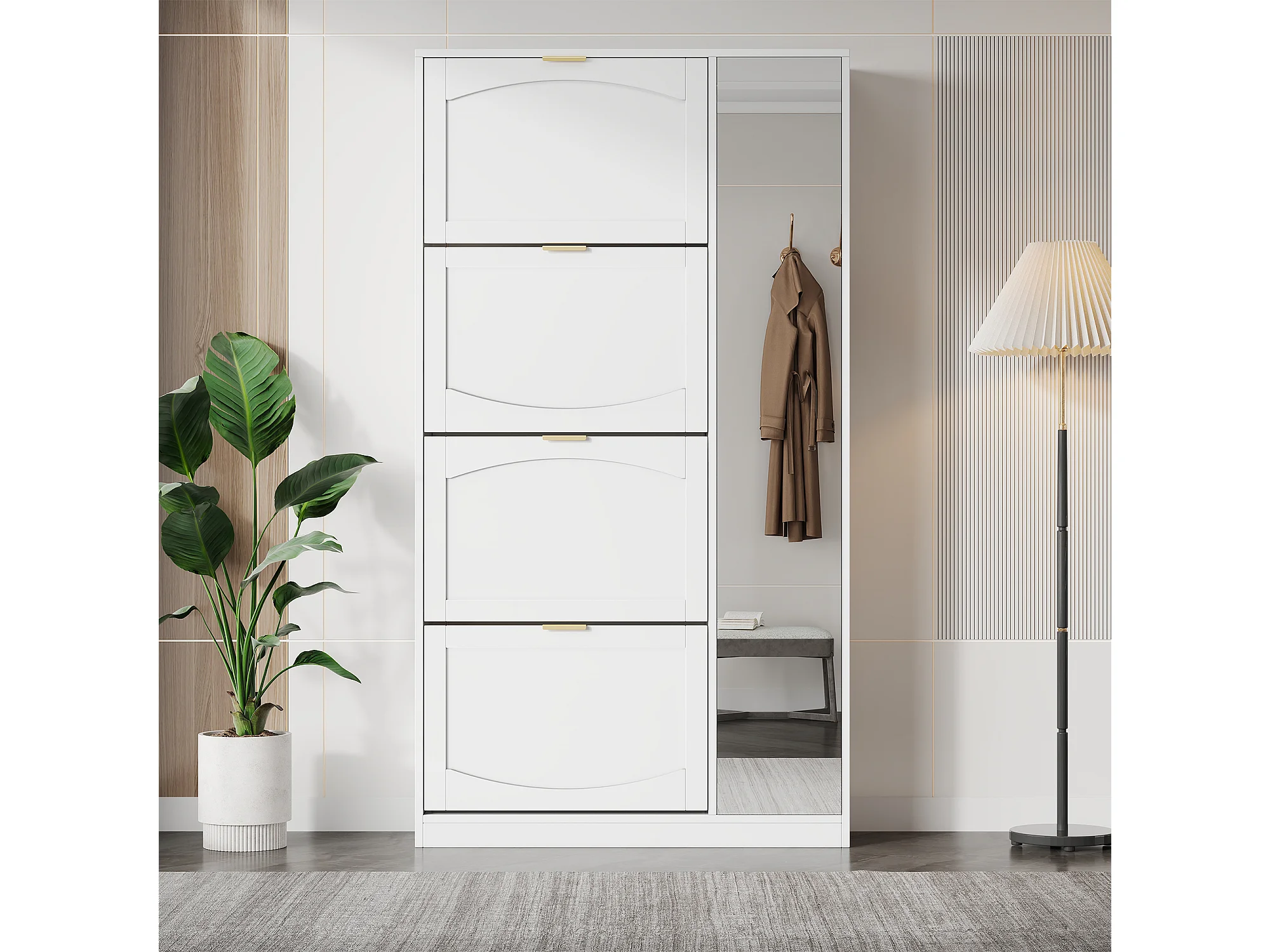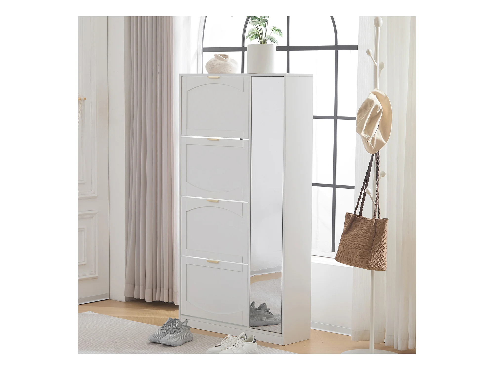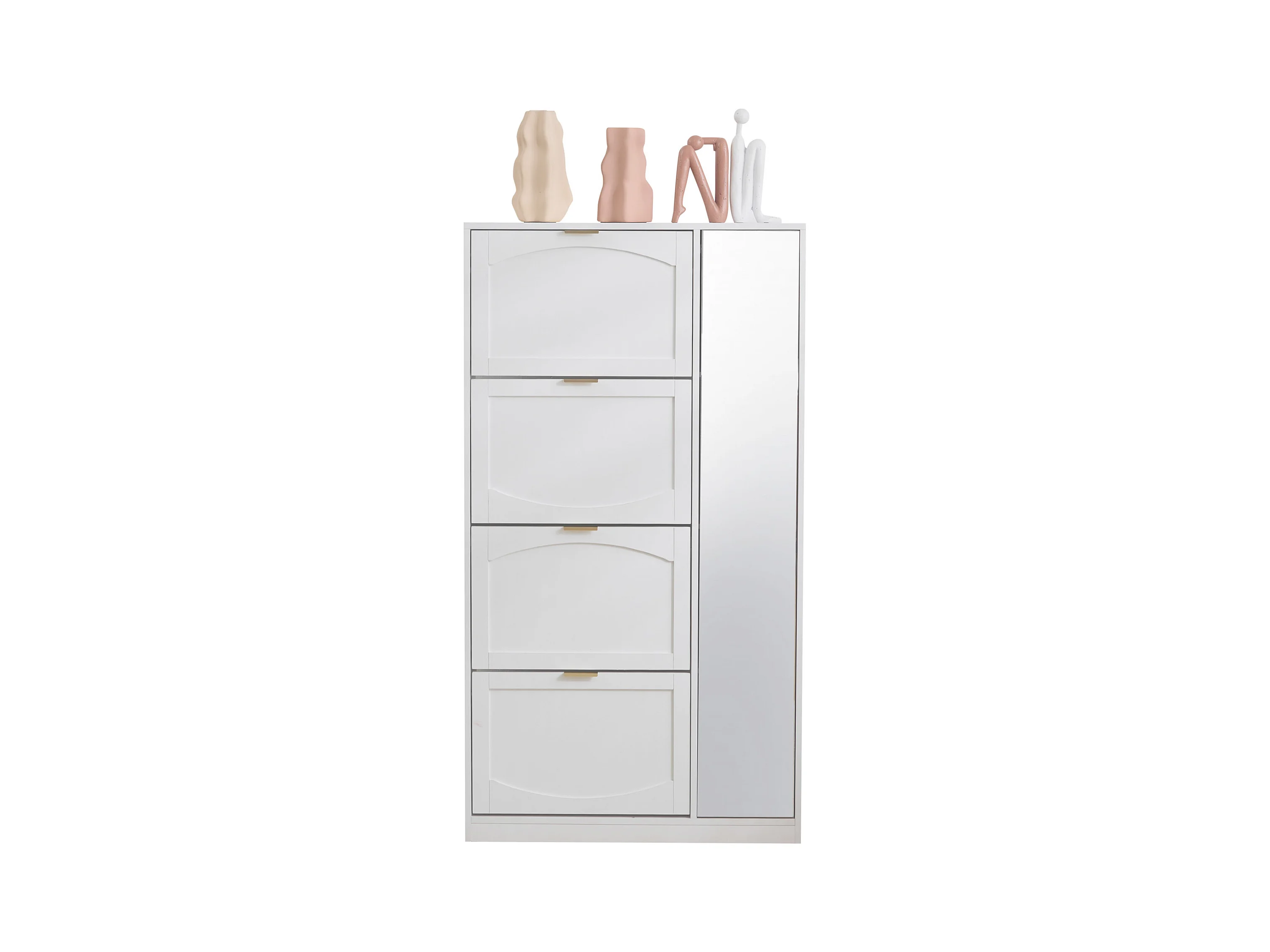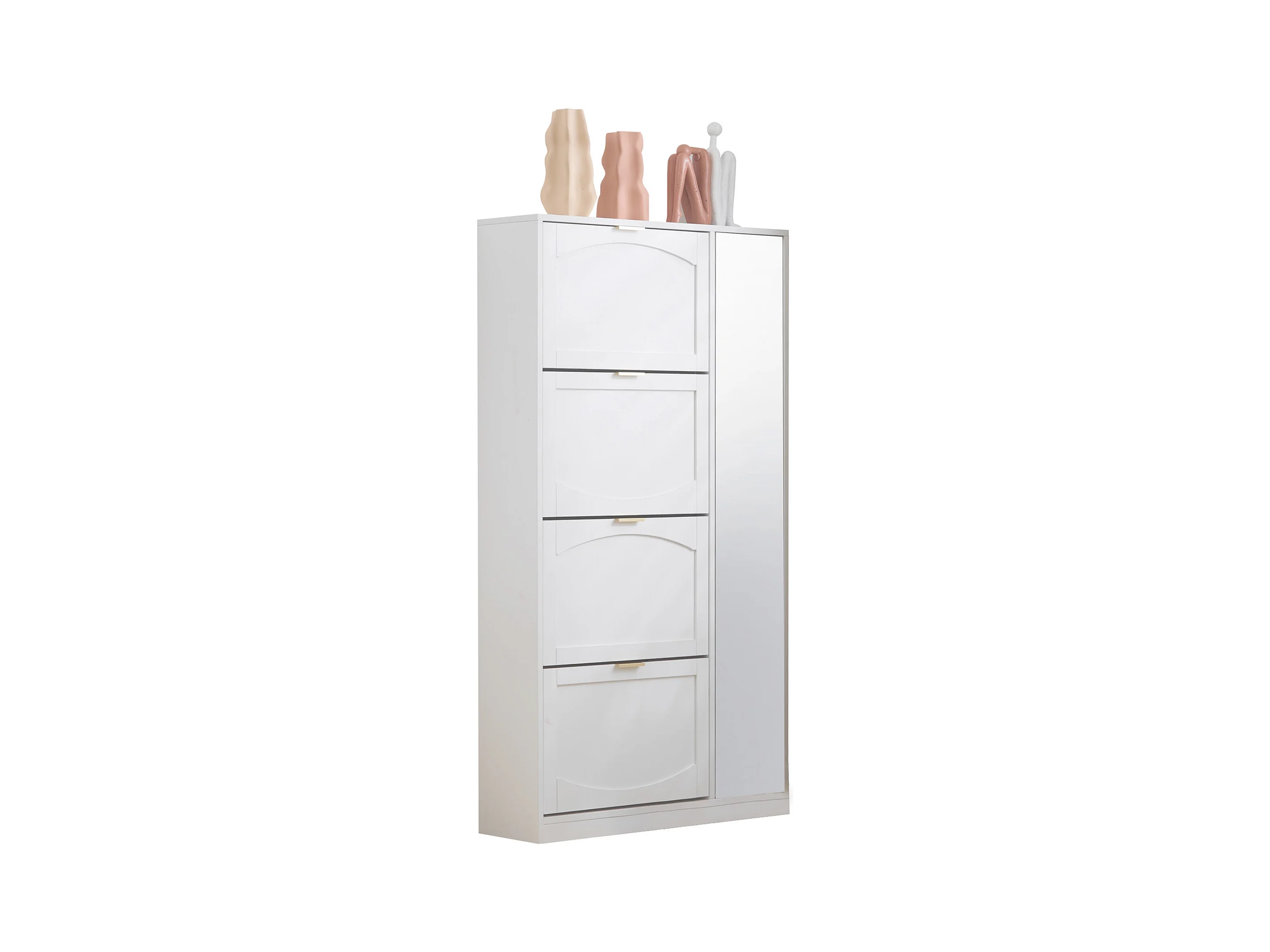Nowoczesna szafka na buty - z lustrem + 4 uchylne przegródki - Biała