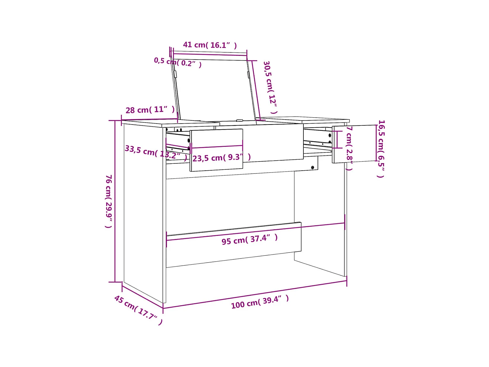 Nowoczesna Toaletka z Lustrem Dąb Sonoma 100x45x76 cm