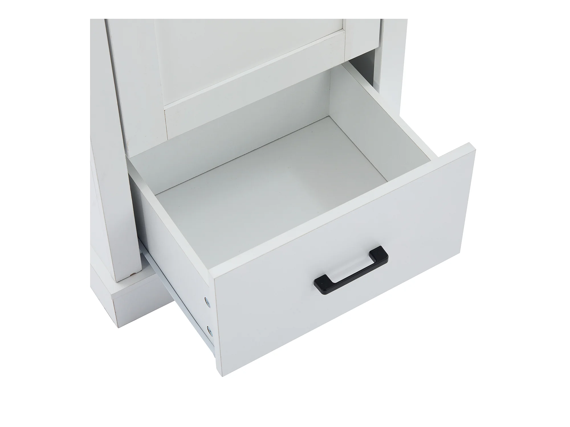 Biała witryna z oświetleniem LED - Witryna z 2 szklanymi drzwiami i 2 szufladami - 4 przegródki do przechowywania