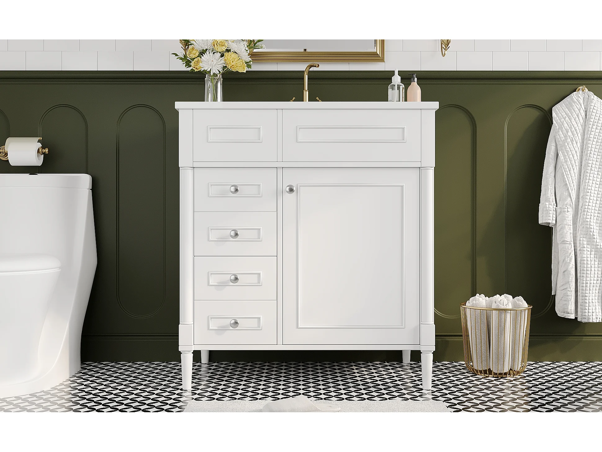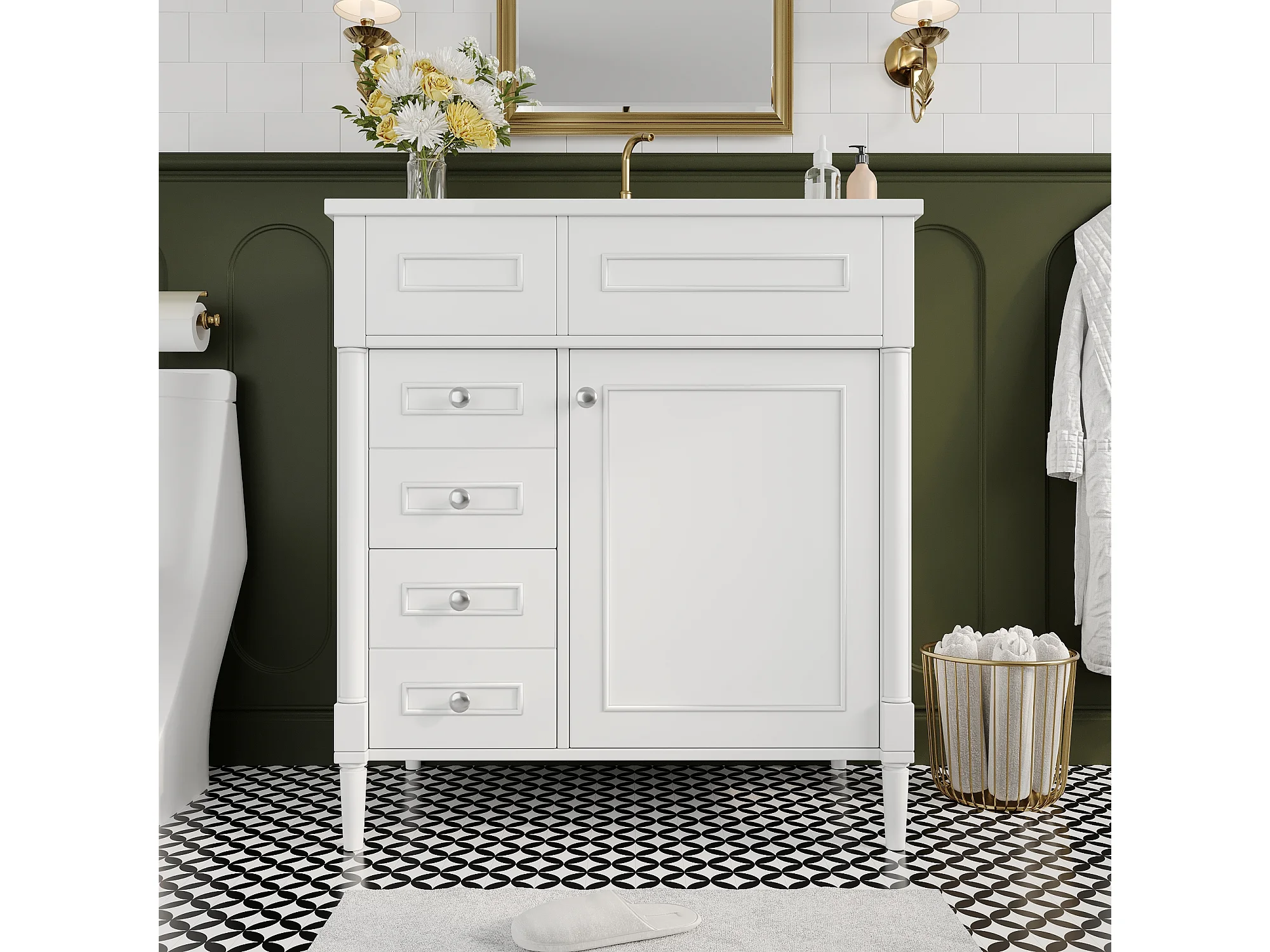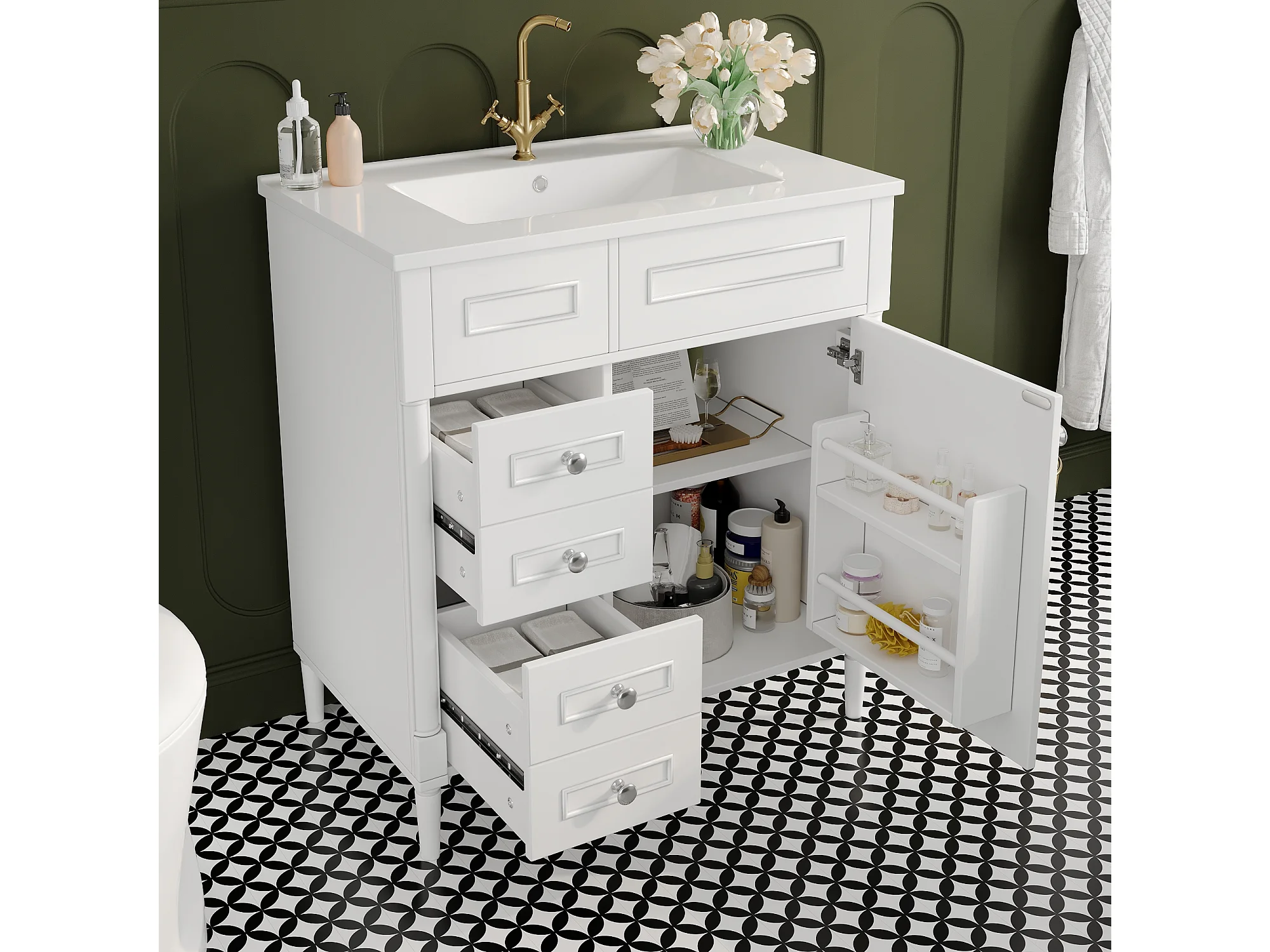 Nowoczesna wolnostojąca szafka pod umywalkę - 76,5 x 46,5 x 84 cm - z umywalką + 2 szufladami + drzwiami - Ceramika + MDF - biała