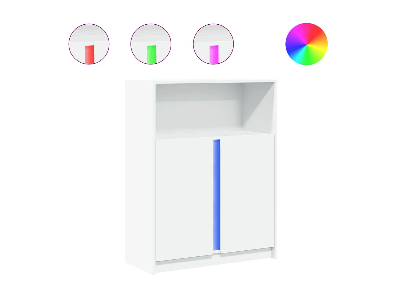 Nowoczesny biały bufet 77x34x100 cm z drewna inżynieryjnego z oświetleniem LED RGB i dużą przestrzenią do przechowywania