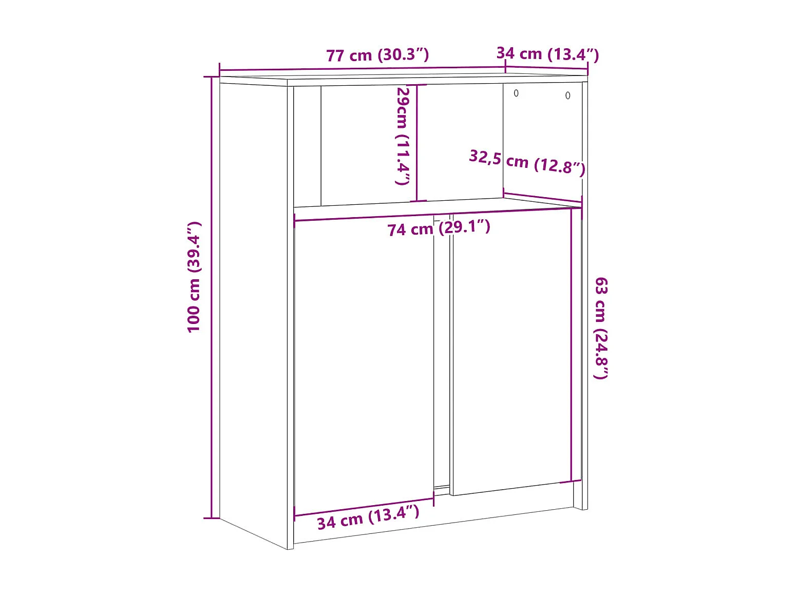 Komoda – 100 cm x 35 cm x 125 cm – Kolor trawertynu – Płyta wiórowa pokryta 100% melaminą