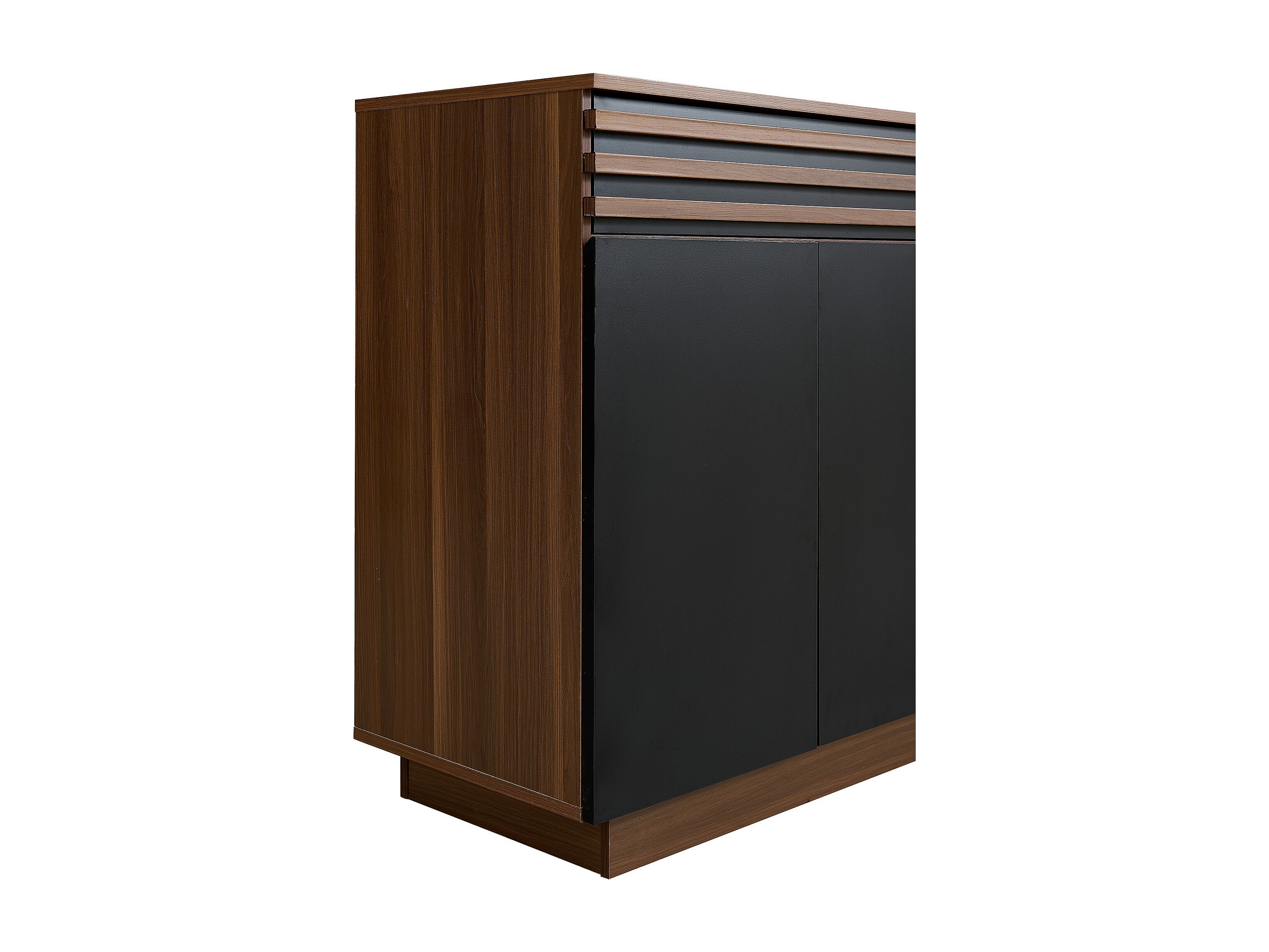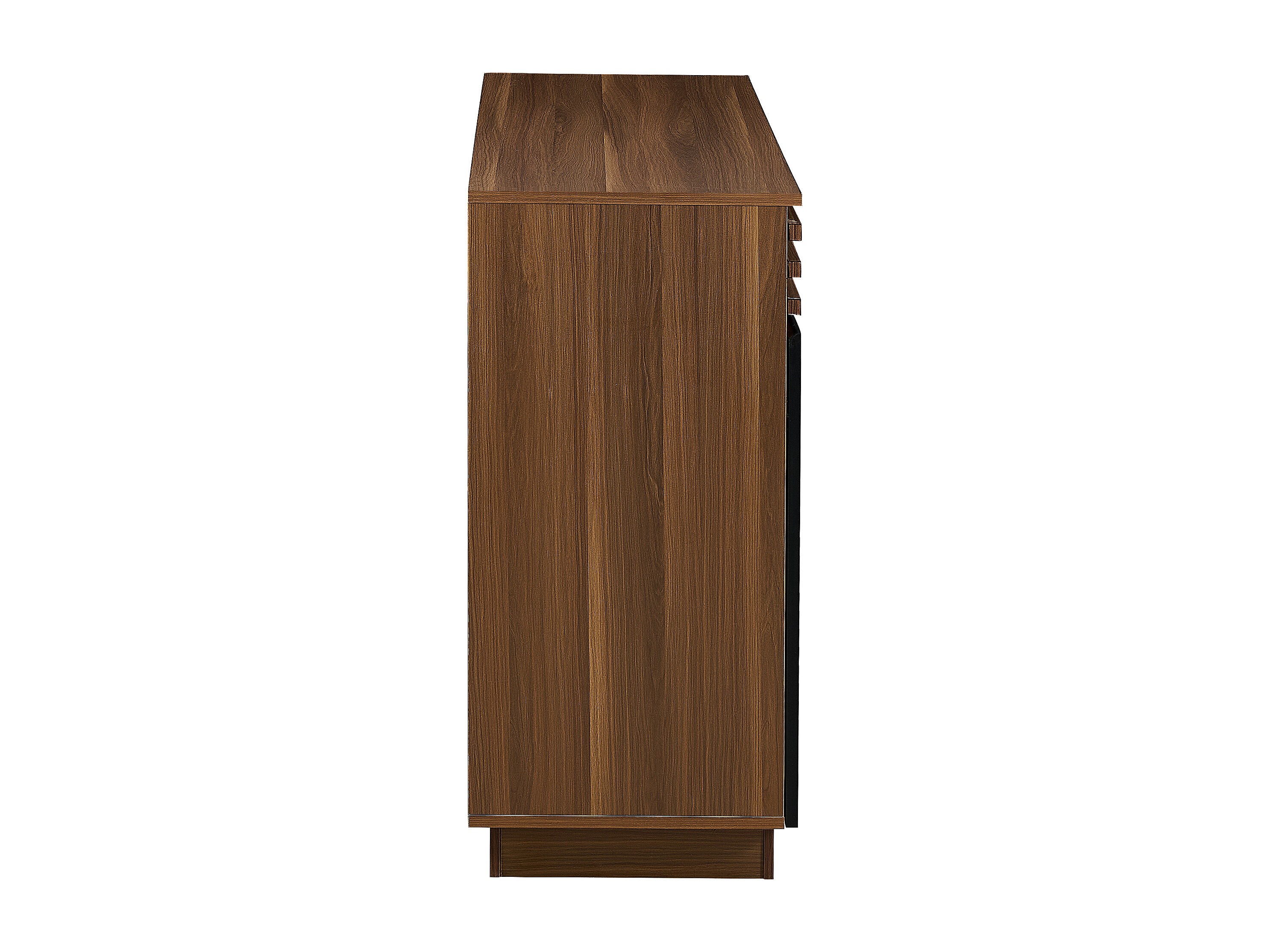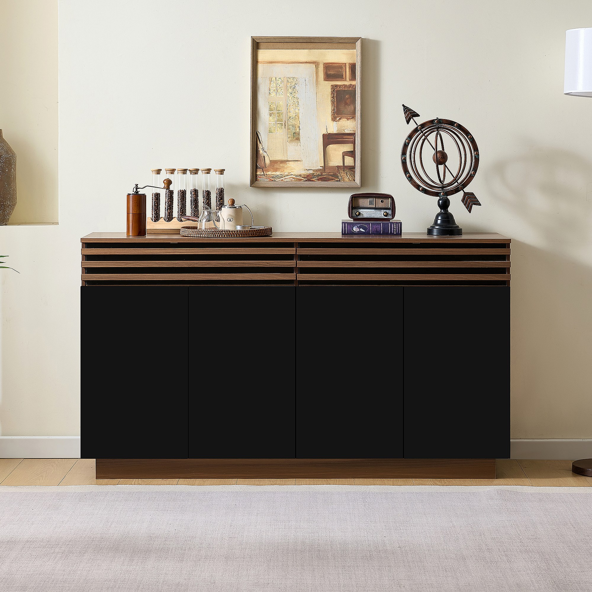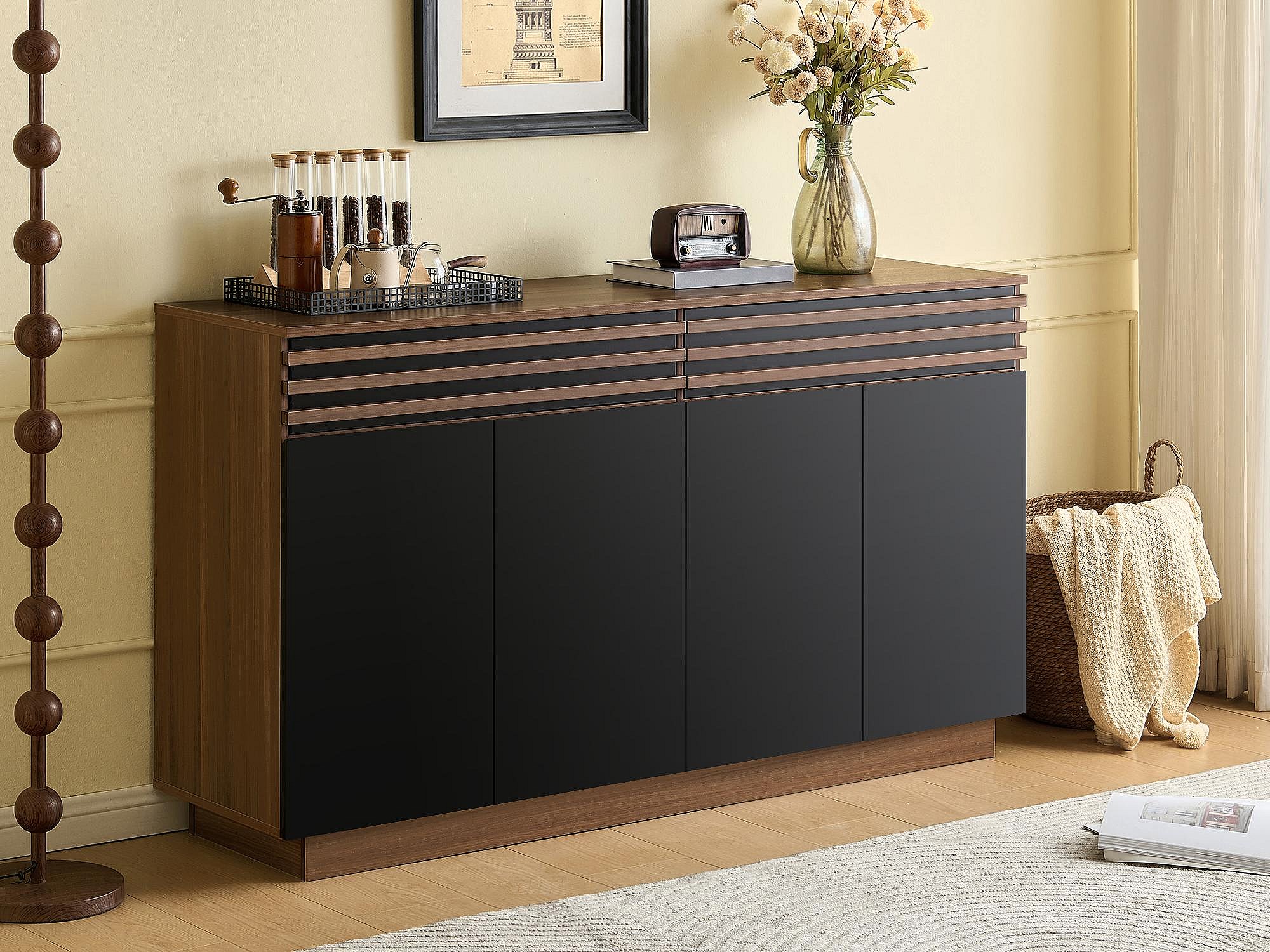 Nowoczesny bufet 150x40x85 cm - 2 szuflady i 4 drzwi - wygląd drewna - MDF - Czarny + Brązowy